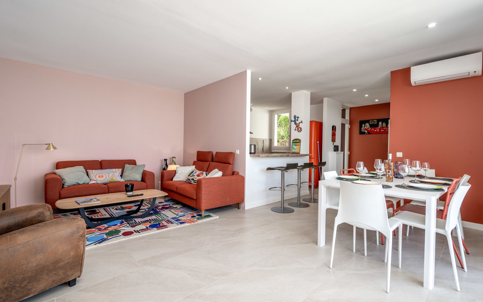 Rijtjeshuis "Domaine de Maure Vieil", van 2 verdiepingen. Buiten de plaats, 5 km van het centrum van Mandelieu, geïsoleerde, rustige ligging in een woonwijk, 7 km van zee, 7 km van het strand. Voor medegebruik: wild terrein 400 ha, openluchtzwembad omheind (10 x 4 m, 100 - 200 cm diepte, seizoensgebonden beschikbaarheid: 15.Mei. - 15.Sep.). Tennisbaan, jeu de boules. Trappenweg (25 treden) naar het huis. Parkeerplaats bij het huis. Winkel 6 km, levensmiddelenwinkel 6 km, supermarkt 6 km, restaurant 6 km, bakkerij 6 km, bushalte "Les Vignerons" 3 km, zandstrand "La Raguette" 7 km. Golfterrein (18 holes) 6.4 km. Attracties in de buurt: Cannes 17 km, Antibes 30 km, Nice 43 m, Marineland 30 km, Aqualand 38 km. Bekende meren kunnen gemakkelijk worden bereikt: Lac de Saint-Cassien 22 km. Wandelgebied Estérel 15 km. Auto noodzakelijk. De eigenaar accepteert geen jeugdgroepen. De sleuteloverdracht vindt plaats bij het agentschap INTERHOME in CANNES, 17 km.