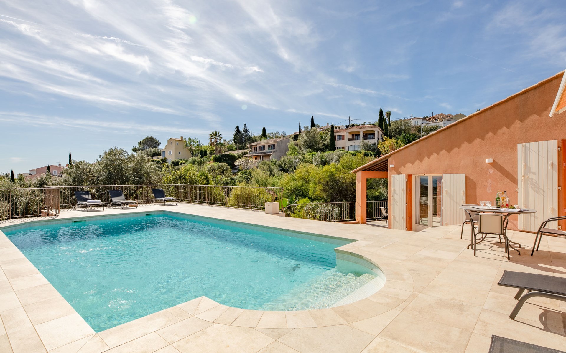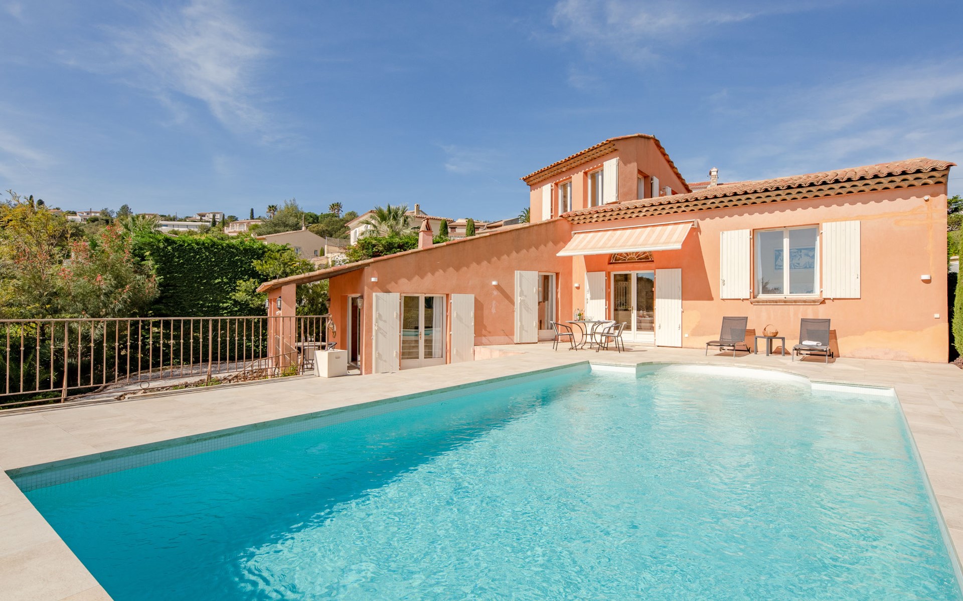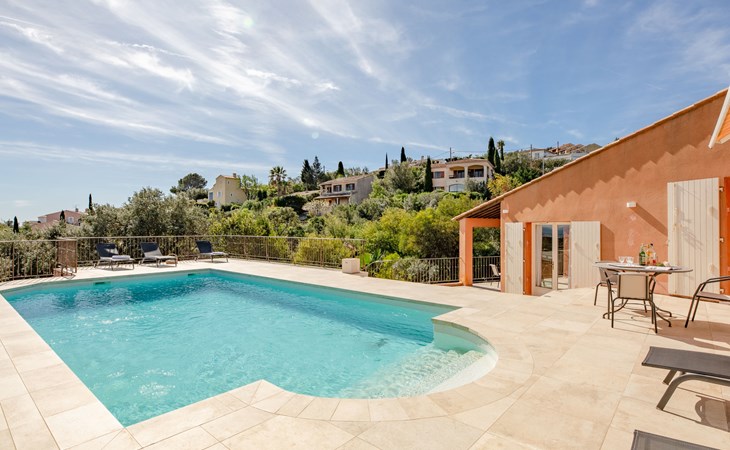Eengezinswoning "Le Chardin". In de plaats, 1.8 km van het centrum van Saint Aygulf, 1.8 km van zee, 2.5 km van het strand. Voor alleengebruik: wild terrein 800 m2 (omheind), openluchtzwembad (5 x 9 m, 150 - 200 cm diepte, seizoensgebonden beschikbaarheid: 01.Mei. - 30.Sep.) met alarminstallatie. Terras (50 m2), tuinmeubelen, parkeerplaats. Winkel 2 km, winkelcentrum 7 km, bakkerij 2 km, centrum te voet bereikbaar in 25 minuten, bushalte "Saint-Aygulf La Poste" 2 km, station "Fréjus" 7 km, zandstrand "Saint Aygulf" 2.5 km, park "Areca" 2 km, duikschool 7 km, thermaalbad "Thalasso de Port Fréjus" 7 km. Jachthaven 2.5 km, golfterrein (18 holes) 19 km, zeilschool 8 km, manege 3 km. Attracties in de buurt: Aqualand, Luna Park 7 km, Fréjus 8 km, Saint Rapahael 10 km, St Tropez 32 km, Cannes 47 km, Nice 73 km. Bekende skigebieden kunnen gemakkelijk worden bereikt: Auron, Isola 2000 150 km. Bekende meren kunnen gemakkelijk worden bereikt: Lac de St Cassien 45 km, Lac du Du Verdon 90 km. Wandelgebied Estérel 18 km, Sentier du Littoral 2 km. De sleuteloverdracht vindt plaats bij het agentschap Interhome in Saint Aygulf, 2 km.