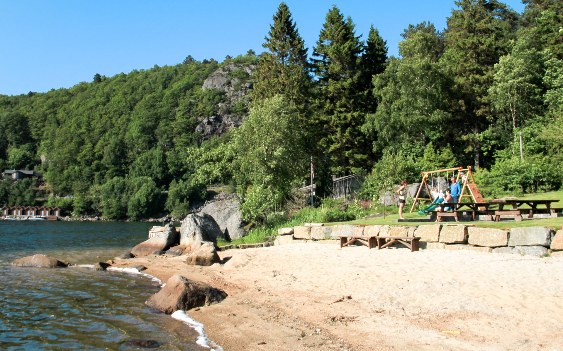 Gecertificeerde vissershuis (18kg visvangst toegestaan) "Neset / Haugen", omgeven door bomen en weiden. 4 huizen in de plaats. 6 km van het centrum van Spangereid, 33 km van het centrum van Mandal, 75 km van het centrum van Kristiansand, 40 m van zee, 40 m van de fjord. Voor medegebruik: wild terrein met weide. Kinderspeelplaats (glijbaan, schommel), badsteiger badplaats, visverwerkingsplaats. In het complex: wasmachine (voor medegebruik, extra). Motorboot (op bestelling). 50 m steil voetpad naar het huis. Parkeerplaats bij het huis op 50 m. Winkel 6 km, supermarkt 11 km, bushalte "Gitlevåg" 1.5 km, veerboot "Kristiansand" 75 km, zandstrand "Spangereid" 6 km. Vismogelijkheden 50 m. In dit complex zijn verder 3 huizen te huur.
