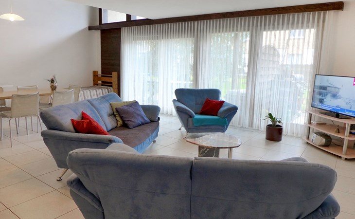 Kindvriendelijk Huis met 2 woningen "von Allmen", vrijstaand. In het centrum van Wilderswil, centrale, zonnige ligging in een woonwijk, 6.5 km van het meer, op het zuiden. Voor medegebruik: verzorgde tuin (omheind) met gazon en bomen. Voor alleengebruik: terras, tuinmeubelen, parkeerplaats (voor 2 auto's) bij het huis. Levensmiddelenwinkel, restaurant 50 m, bushalte "Wilderswil, Bahnhof" 100 m, station "Wilderswil" 100 m, openluchtzwembad 4.3 km, overdekt zwembad 1.8 km, meer (zwemmen) 6.5 km. Golfterrein (18 holes) 6.5 km, tennishal 1.2 km, bergtrein 17 km, kabelbaan op 17 km, ski faciliteiten 17 km, ijsbaan 2 km. Attracties in de buurt: Interlaken 4 km, Jungfraujoch, Schilthorn. Bekende skigebieden kunnen gemakkelijk worden bereikt: Grindelwald/Männlichen/Lauberhorn, Schilthorn. Bekende meren kunnen gemakkelijk worden bereikt: Thuner- und Brienzersee. De eigenaar woont in hetzelfde huis. De eigenaar heeft een hond.