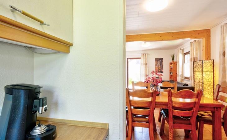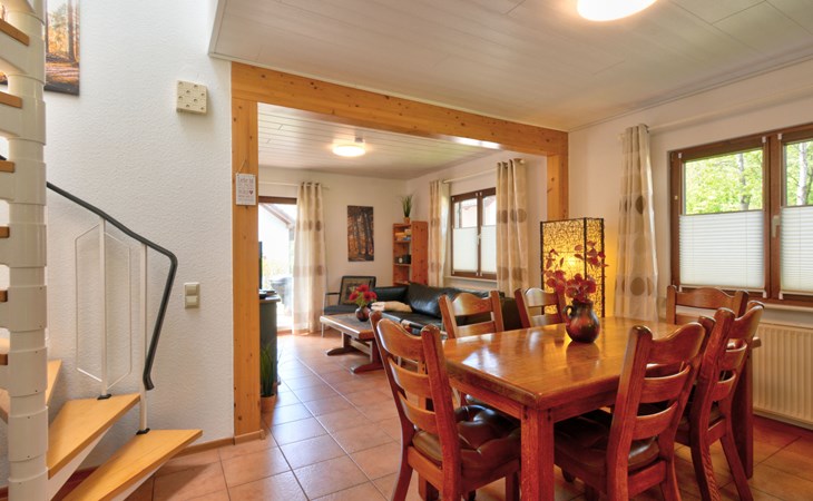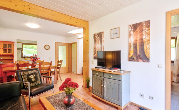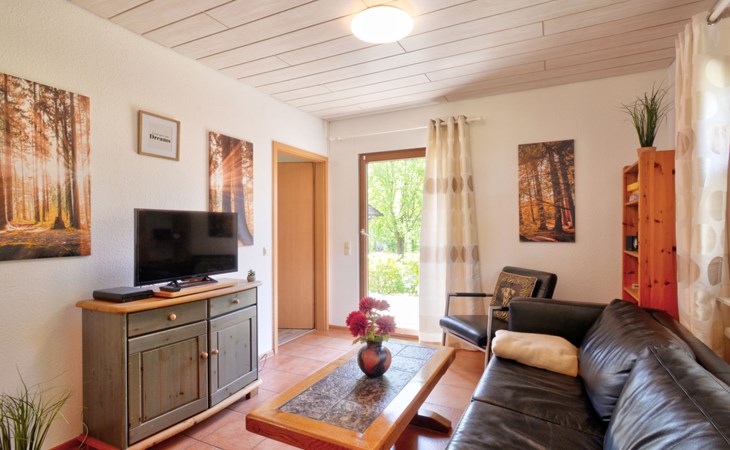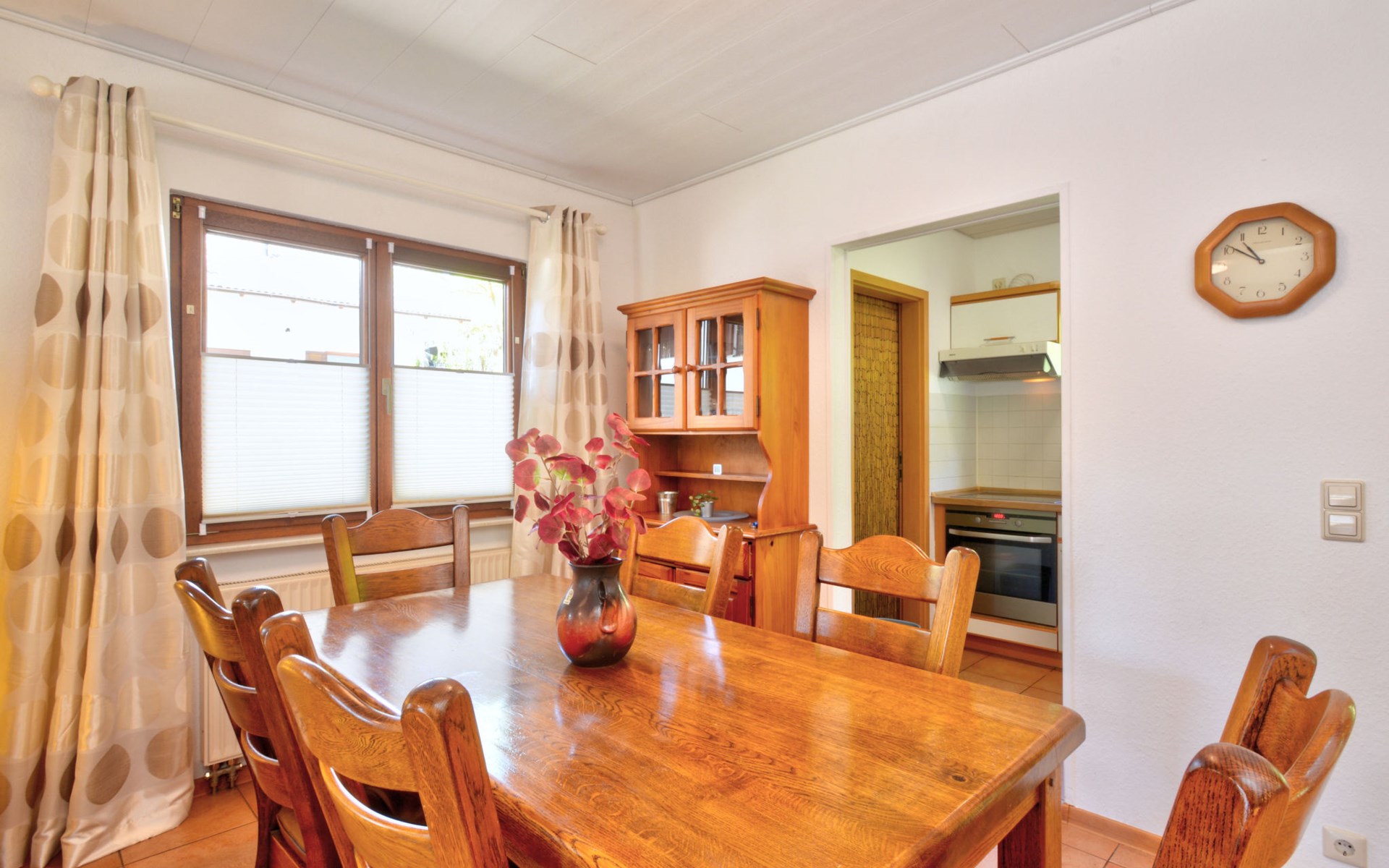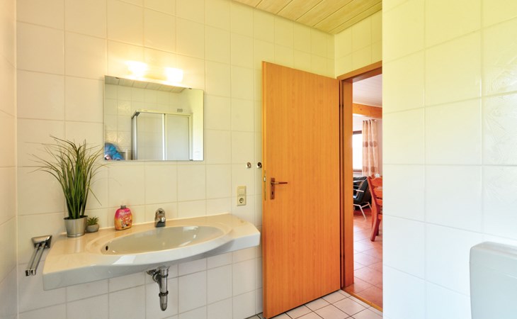 Vakantiedorp "Seepark Kirchheim". Buiten de plaats, 4 km van het centrum van Kirchheim, rustige, zonnige ligging tegen een helling, direct aan het meer, te midden van groen. Openbare parkeerplaatsen in de straat. Winkel 4 km, supermarkt 4 km, winkelcentrum 4 km, bakkerij 4 km, café 400 m, bushalte 400 m, treinstation "Bad Hersfeld" 15 km, openluchtzwembad 4 km, thermaalbad 15 km. Golfterrein (18 holes) 4 km, tennis 10 km, midgetgolf 15 km, wandelroutes 300 m vanaf het huis. Bekende meren kunnen gemakkelijk worden bereikt: Stausee 500 m. Auto noodzakelijk. De eigenaar accepteert geen jeugdgroepen. Het Seepark is opgedeeld in vier "dorpen" met in totaal 139 vakantiewoningen, die rond het meer zijn gegroepeerd (10 hectare water, zwemmen, waterskiën, zonneweide). De route rond het meer is ideaal om te wandelen en te joggen.