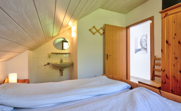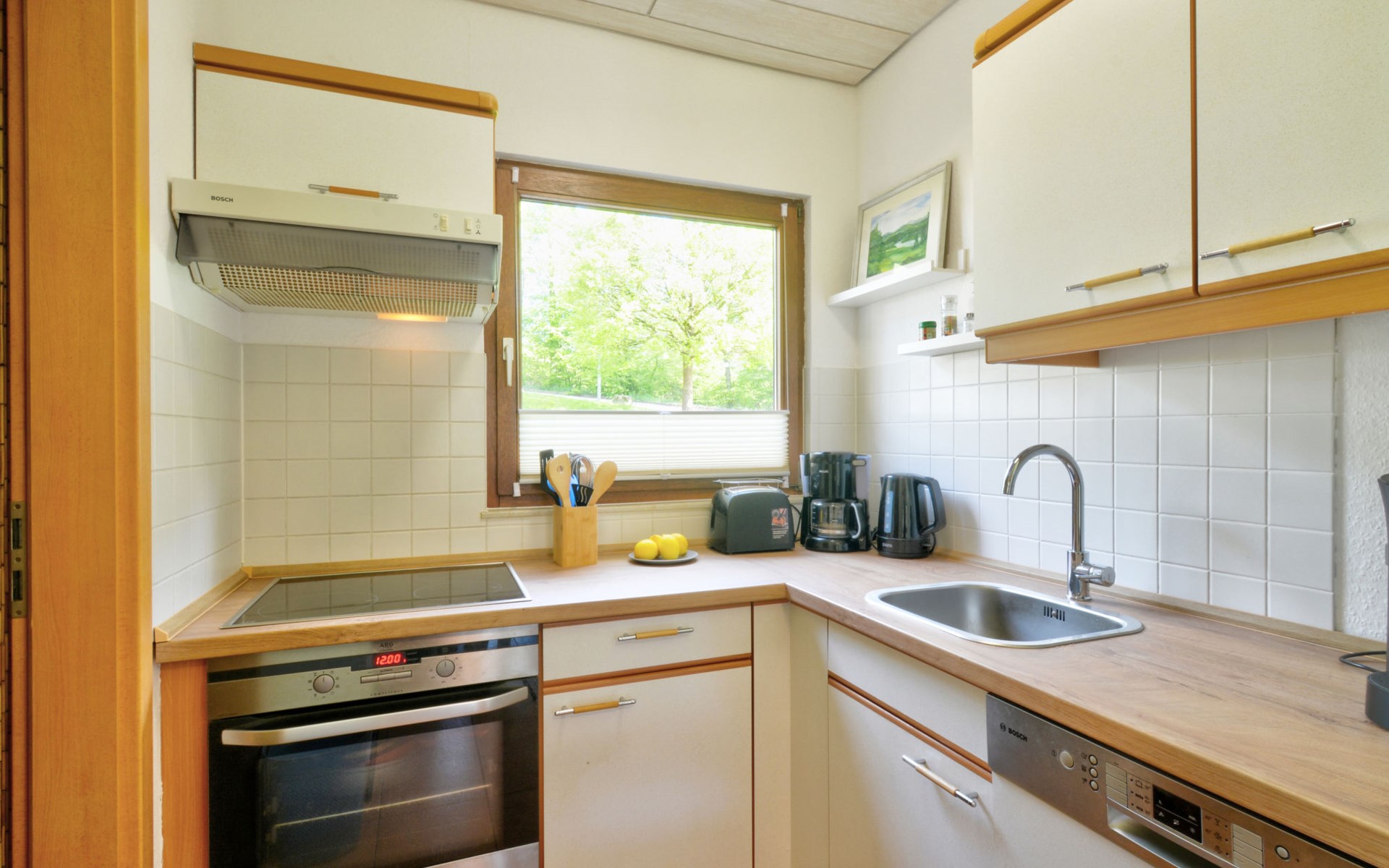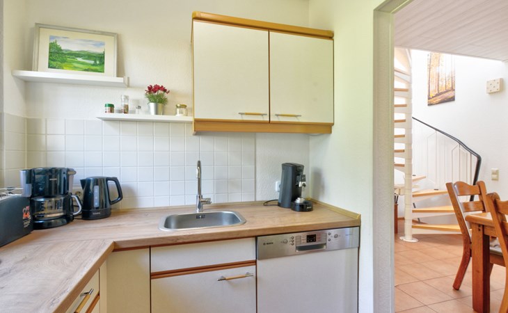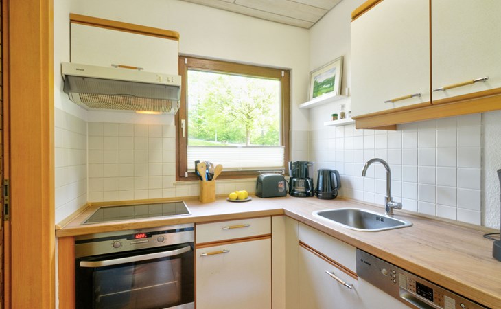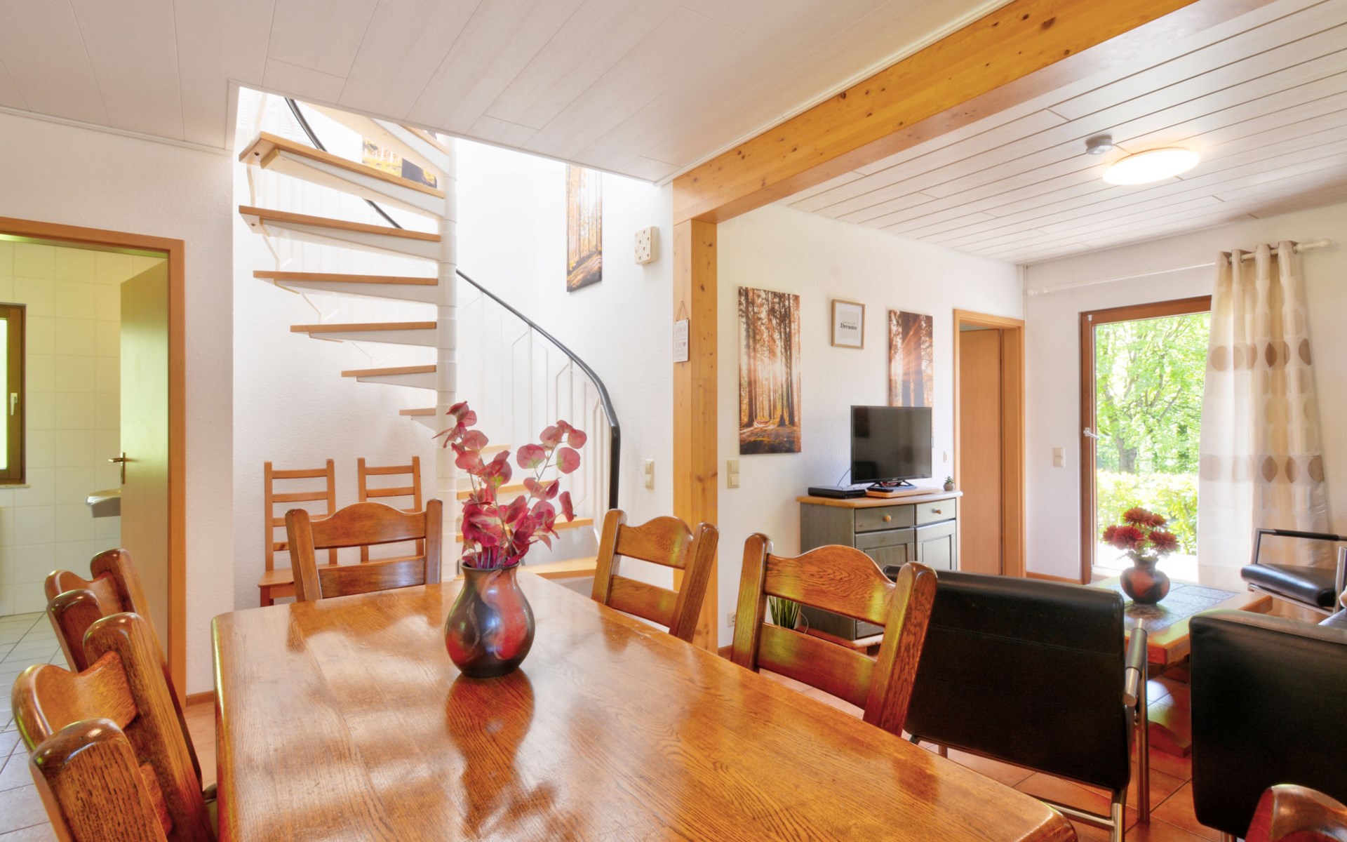 Vakantiedorp "Seepark Kirchheim". Buiten de plaats, 4 km van het centrum van Kirchheim, rustige, zonnige ligging tegen een helling, direct aan het meer, te midden van groen. Openbare parkeerplaatsen in de straat. Winkel 4 km, supermarkt 4 km, winkelcentrum 4 km, bakkerij 4 km, café 400 m, bushalte 400 m, treinstation "Bad Hersfeld" 15 km, openluchtzwembad 4 km, thermaalbad 15 km. Golfterrein (18 holes) 4 km, tennis 10 km, midgetgolf 15 km, wandelroutes 300 m vanaf het huis. Bekende meren kunnen gemakkelijk worden bereikt: Stausee 500 m. Auto noodzakelijk. De eigenaar accepteert geen jeugdgroepen. Het Seepark is opgedeeld in vier "dorpen" met in totaal 139 vakantiewoningen, die rond het meer zijn gegroepeerd (10 hectare water, zwemmen, waterskiën, zonneweide). De route rond het meer is ideaal om te wandelen en te joggen.