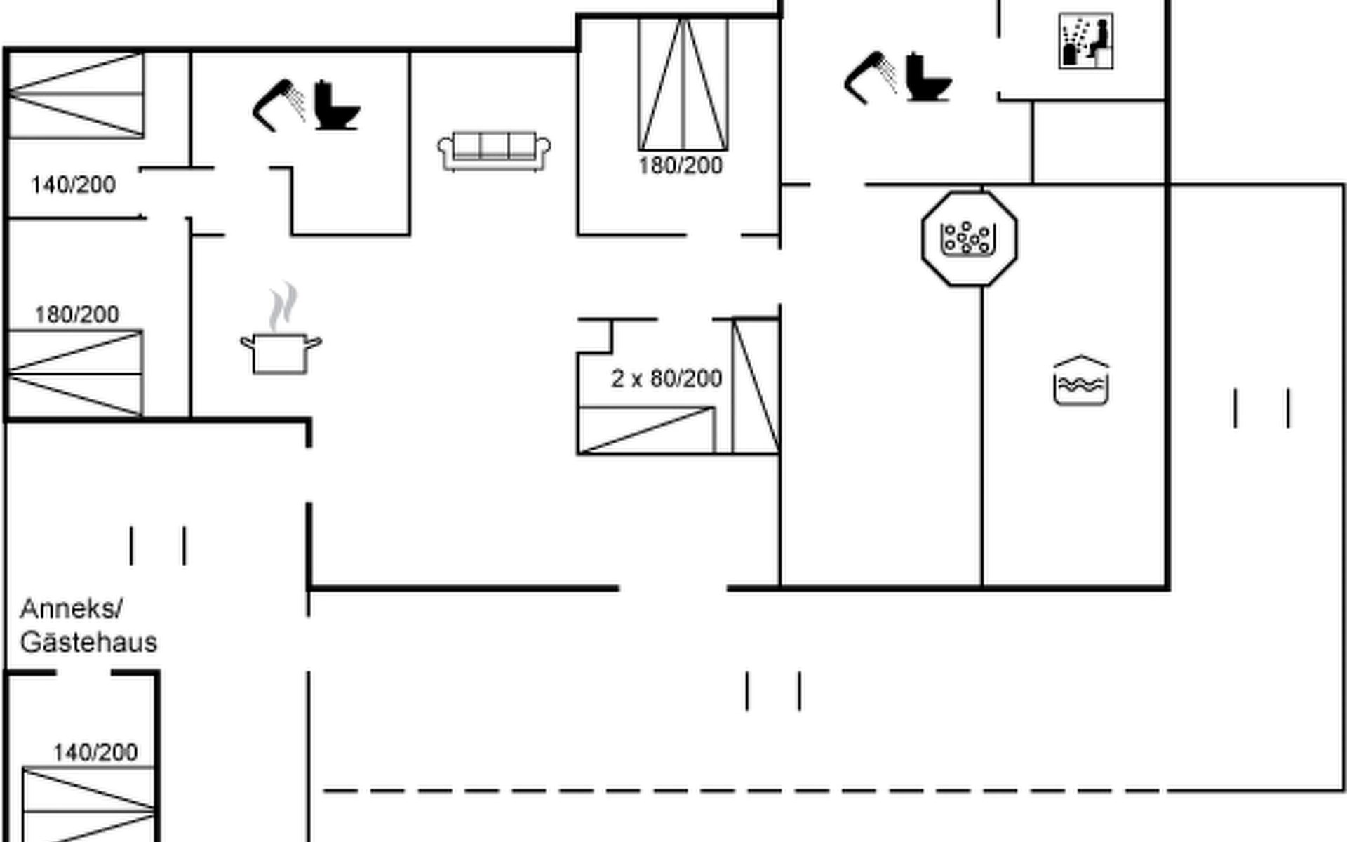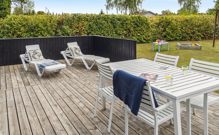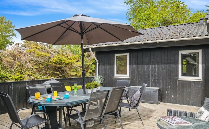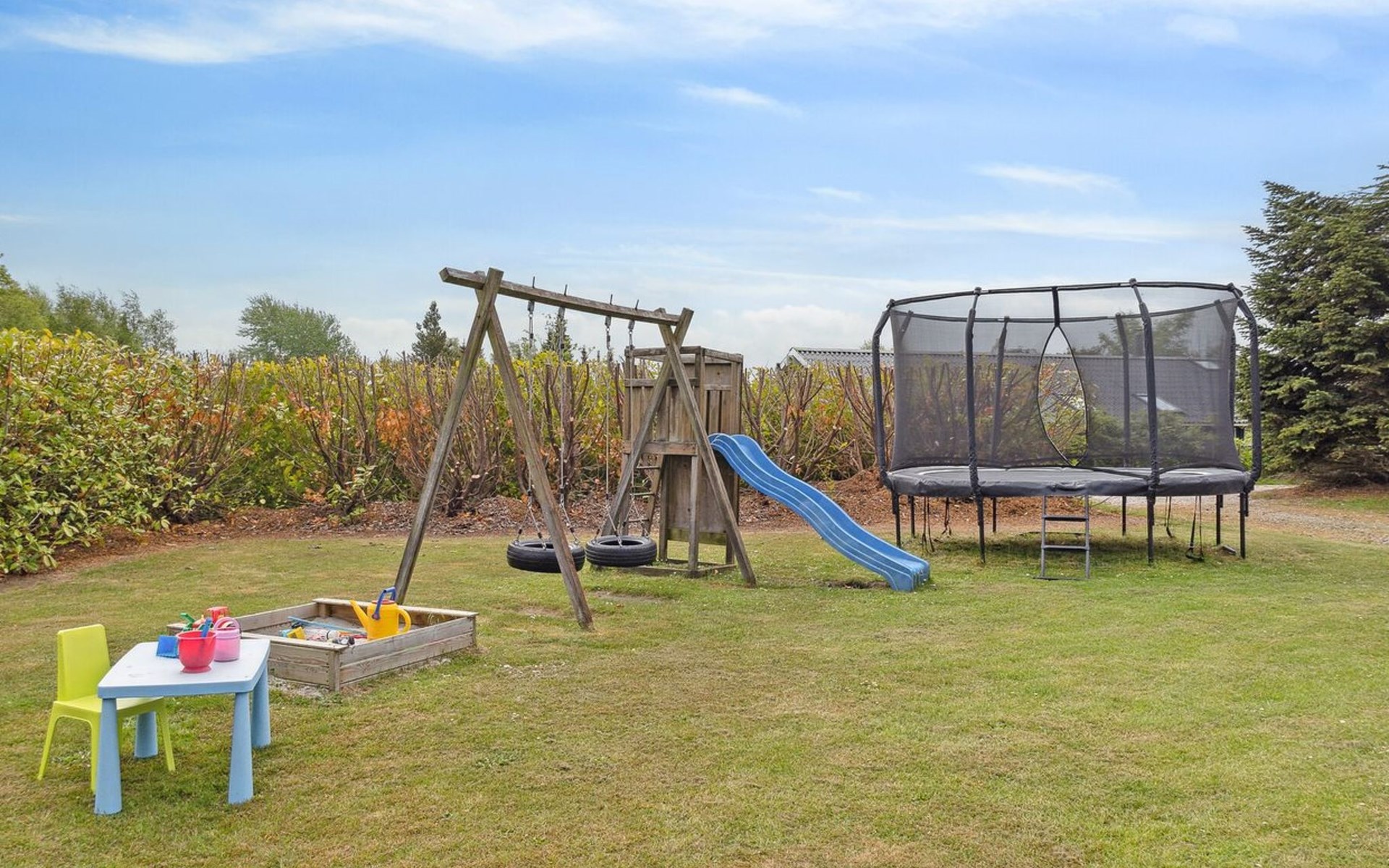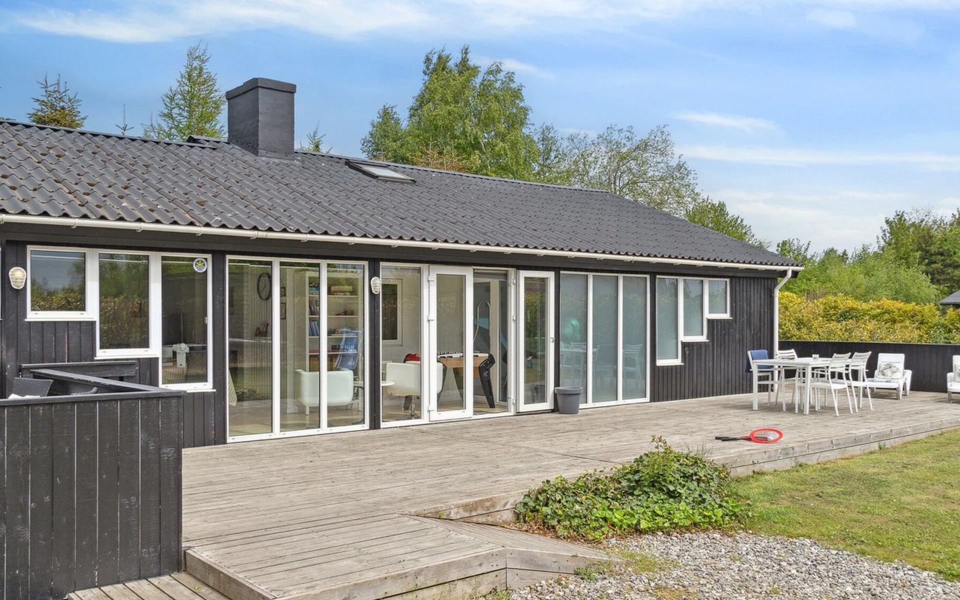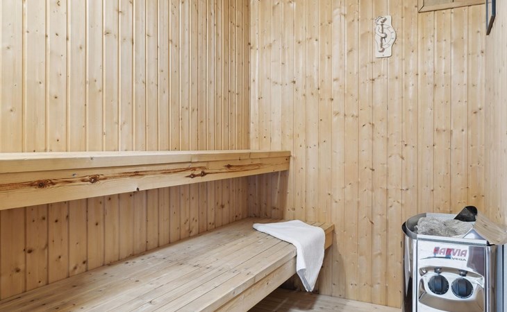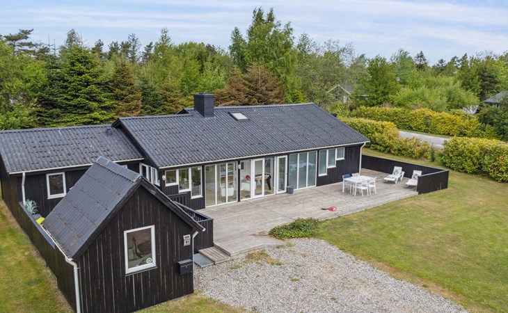 Eengezinswoning, bouwjaar 1996. 1.1 km van zee. Voor alleengebruik: wild terrein 1.316 m2, overdekt zwembad (3 x 6 m, 18 m2, 150 - 150 cm diepte). Barbecue, kinderspeelplaats (glijbaan, schommel). In het huis: sauna, trampoline, wasmachine, droger. Parkeerplaats bij het huis. Oplaadstation. Levensmiddelenwinkel 1.5 km. Golfterrein 2.7 km. De eigenaar accepteert geen jeugdgroepen.