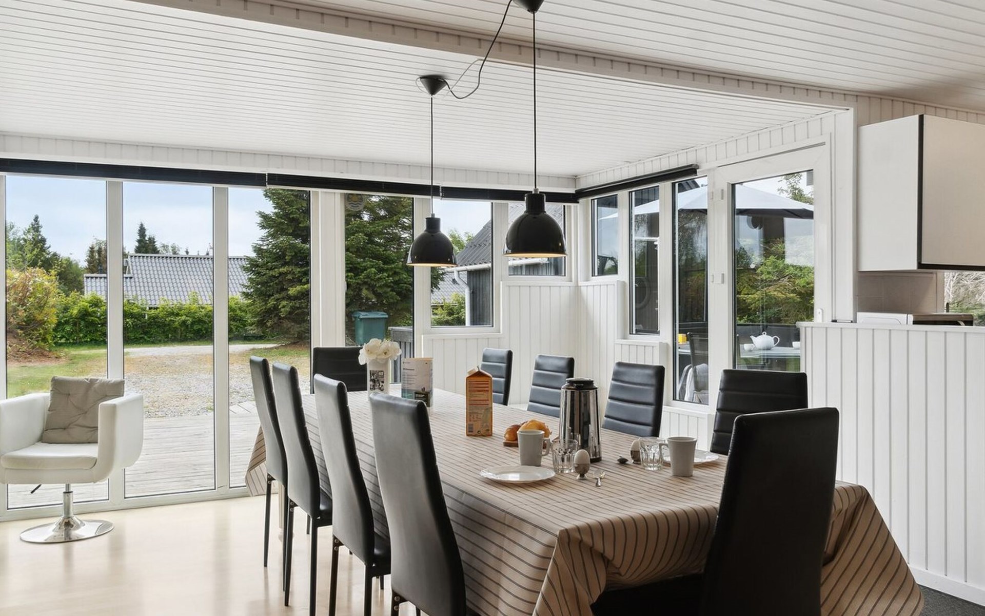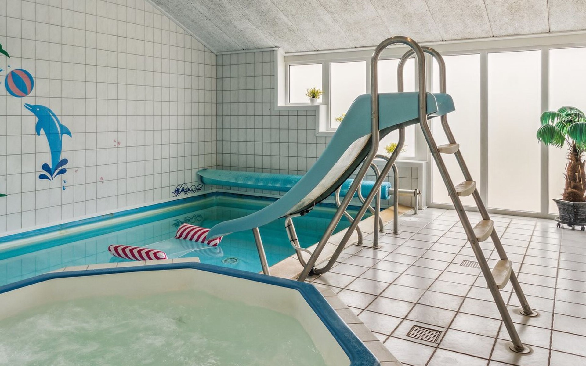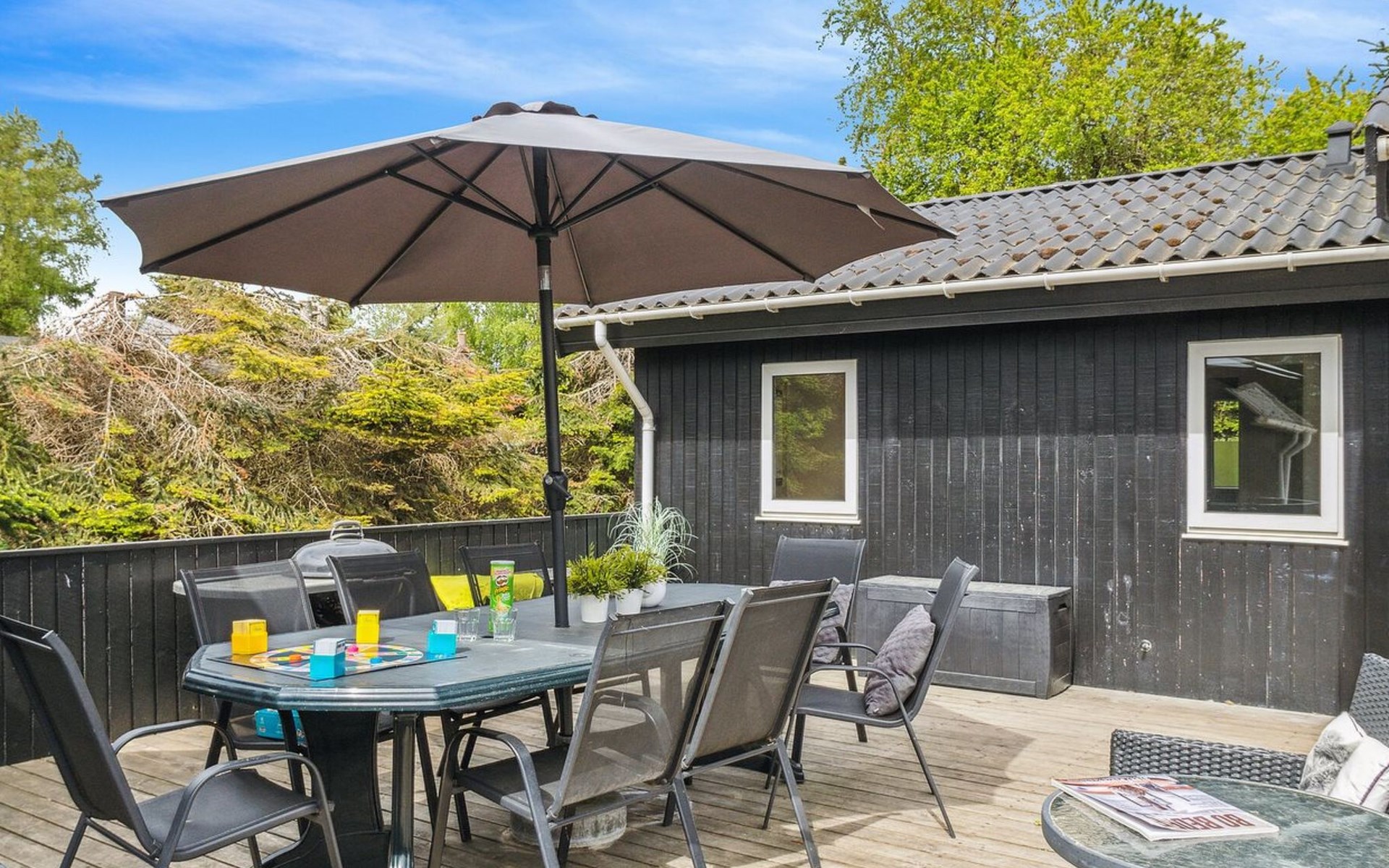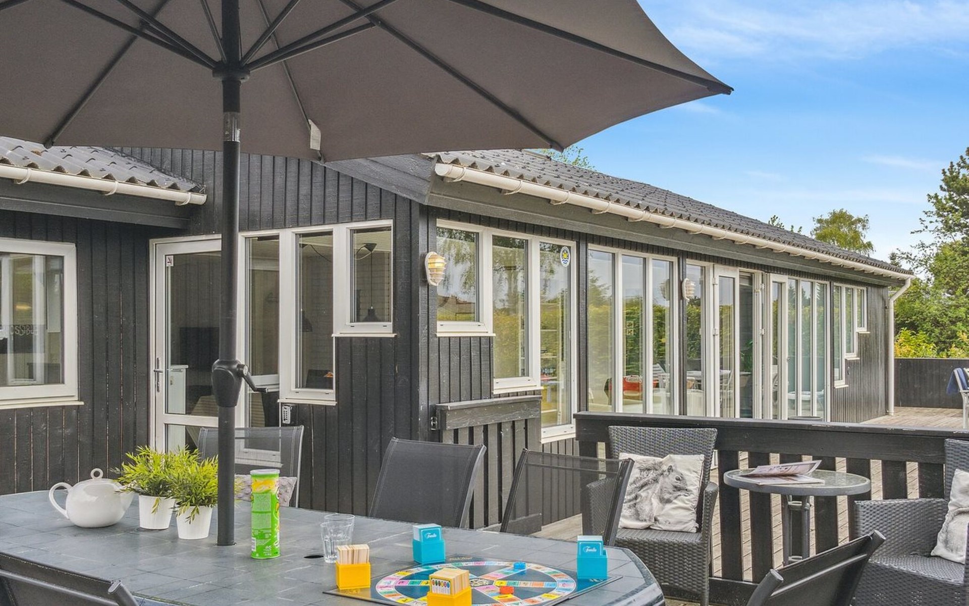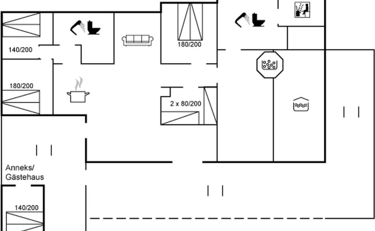 Eengezinswoning, bouwjaar 1996. 1.1 km van zee. Voor alleengebruik: wild terrein 1.316 m2, overdekt zwembad (3 x 6 m, 18 m2, 150 - 150 cm diepte). Barbecue, kinderspeelplaats (glijbaan, schommel). In het huis: sauna, trampoline, wasmachine, droger. Parkeerplaats bij het huis. Oplaadstation. Levensmiddelenwinkel 1.5 km. Golfterrein 2.7 km. De eigenaar accepteert geen jeugdgroepen.