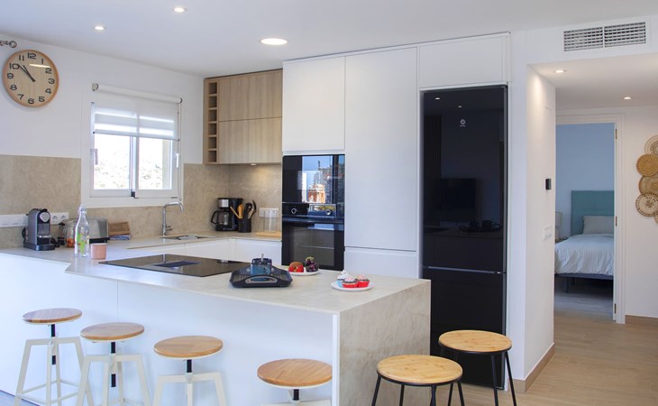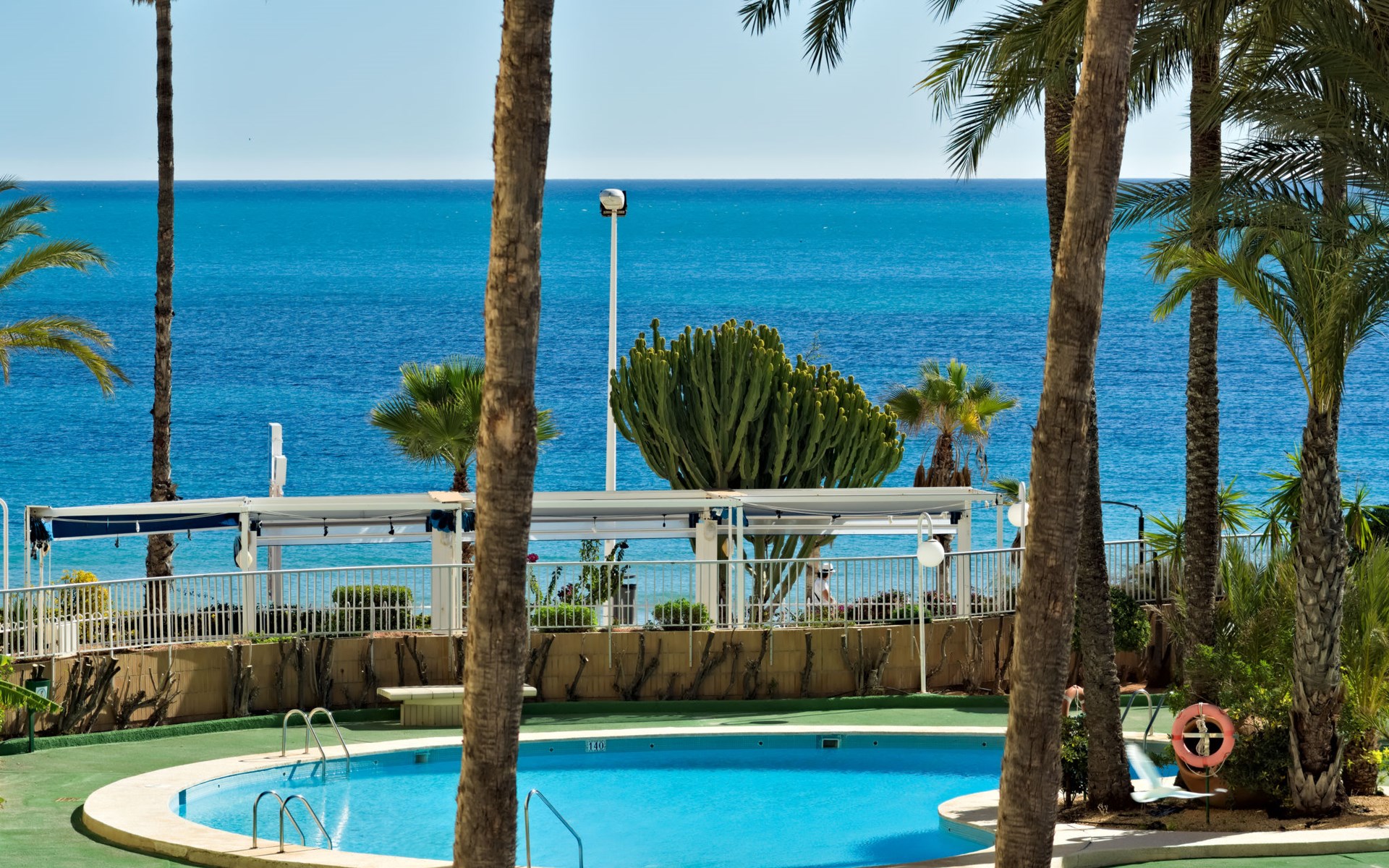 Kindvriendelijk, mooi flatgebouw "Turmalina". 2 km van het centrum van Calpe, zonnige ligging, direct aan zee, direct aan het strand, directe toegang tot het strand, aan een doodlopende weg, op het zuidoosten. Voor medegebruik: terrein (omheind), 3 zwembaden (seizoensgebonden beschikbaarheid: 01.Jan. - 31.Dec.). Onregelmatig zwembad. Kinderzwembad, buitendouche, tennisbaan (extra). In het huis: receptie, Internet (WiFi), lift, wasmachine. Openbare parkeergarage op 20 m. Winkel 50 m, supermarkt 250 m, restaurant 20 m, bar, internet cafe 50 m, voetgangersgebied 50 m, bushalte "Autobus Local" 20 m, station 5.1 km, zandstrand "Playa de la Fosssa". Jachthaven 500 m, jachthaven 500 m, golfterrein (9 holes) 10 km, surfschool 600 m, zeilschool 500 m, tennis 20 m, manege 3.7 km, sportcentrum 2.8 km, wandelroutes 600 m vanaf het huis. Attracties in de buurt: Aqualandia, Mundomar, Terra Mítica, Terra Natura, Benidorm Palace (Benidorm), Guadalest 33.8 km, Fuentes del Algar 24.6 km. Wandelgebied Parque Natural Peñón de Ifach. 2.5 km, Paseo ecológico Calpe - Benissa 2.5 km, Sierra de Olta 7.6 km. Openingstijden van de receptie 08:00-24:00 uur. Het complex wordt s´nachts bewaakt.