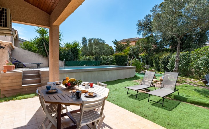 Eengezinswoning "Villa Vaccaja". In de plaats Porto-Vecchio, perfecte locatie: in het centrum en toch rustig gelegen, gebied met weinig verkeer, 1 km van zee, 2 km van het strand, aan een doodlopende weg. Voor alleengebruik: kleine, verzorgde tuin 150 m2 (omheind), openluchtzwembad (verhoogd) hoekig (6 x 3 m, 140 cm diepte, seizoensgebonden beschikbaarheid: 01.Mei. - 30.Sep.). Onderhoud zwembad door de eigenaar/tuinman. Parkeerplaats (voor 2 auto's) op het terrein. Winkel, winkelcentrum, restaurant, bakkerij 500 m, centrum te voet bereikbaar in 20 minuten, bushalte 300 m, zandstrand "Plage de Palombaggia" 12 km. Jachthaven 2 km. Attracties in de buurt: centre ville Porto-Vecchio 2 km, Plage de Santa Giulia 10 km, Bonifacio 30 km. Bekende meren kunnen gemakkelijk worden bereikt: Lac de l'Ospédale 20 km. Wandelgebied Aiguilles de Bavella 45 km. Auto noodzakelijk.