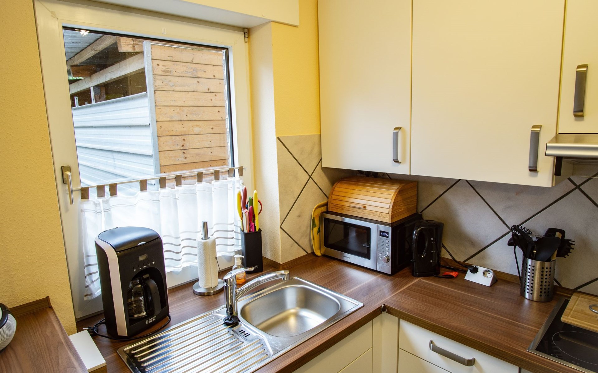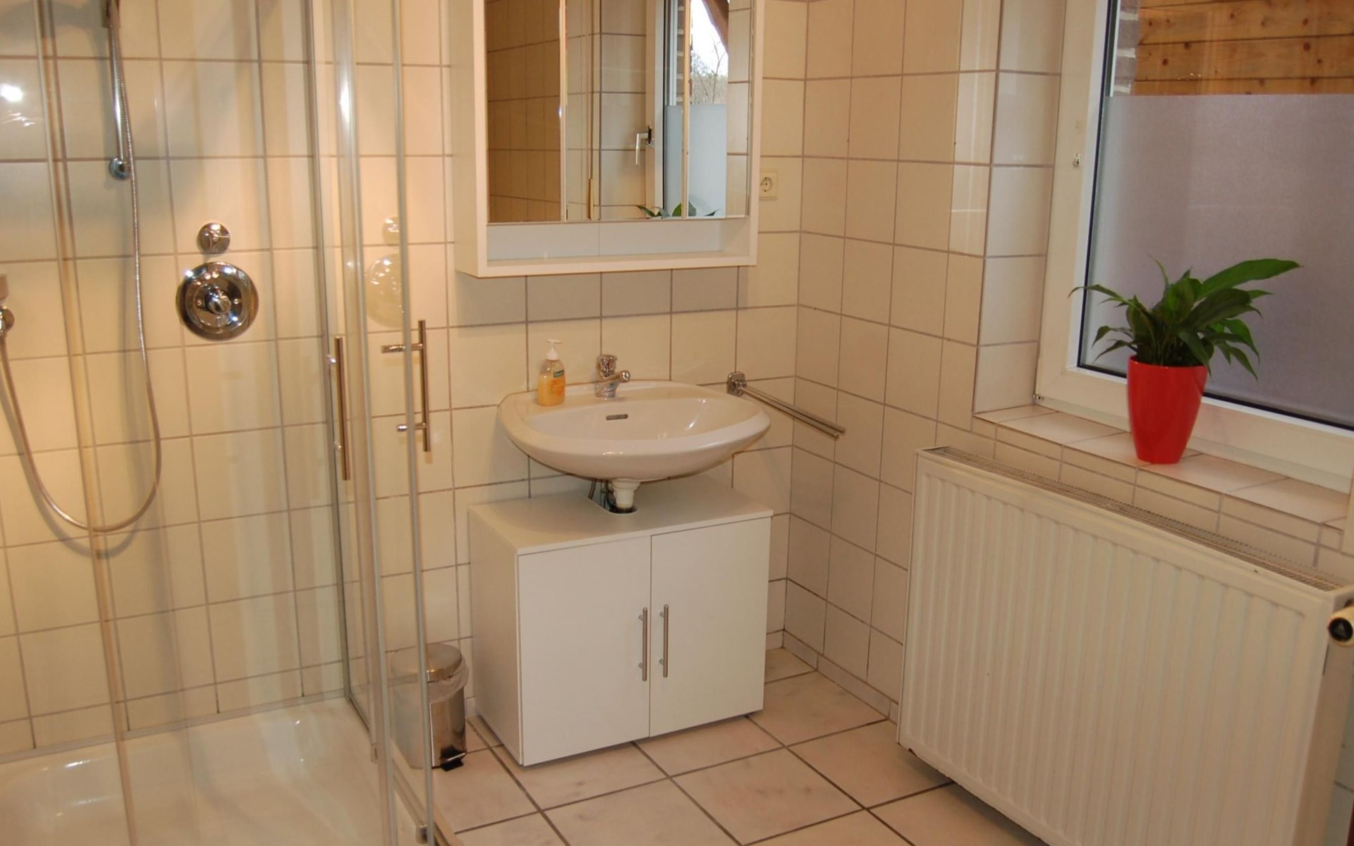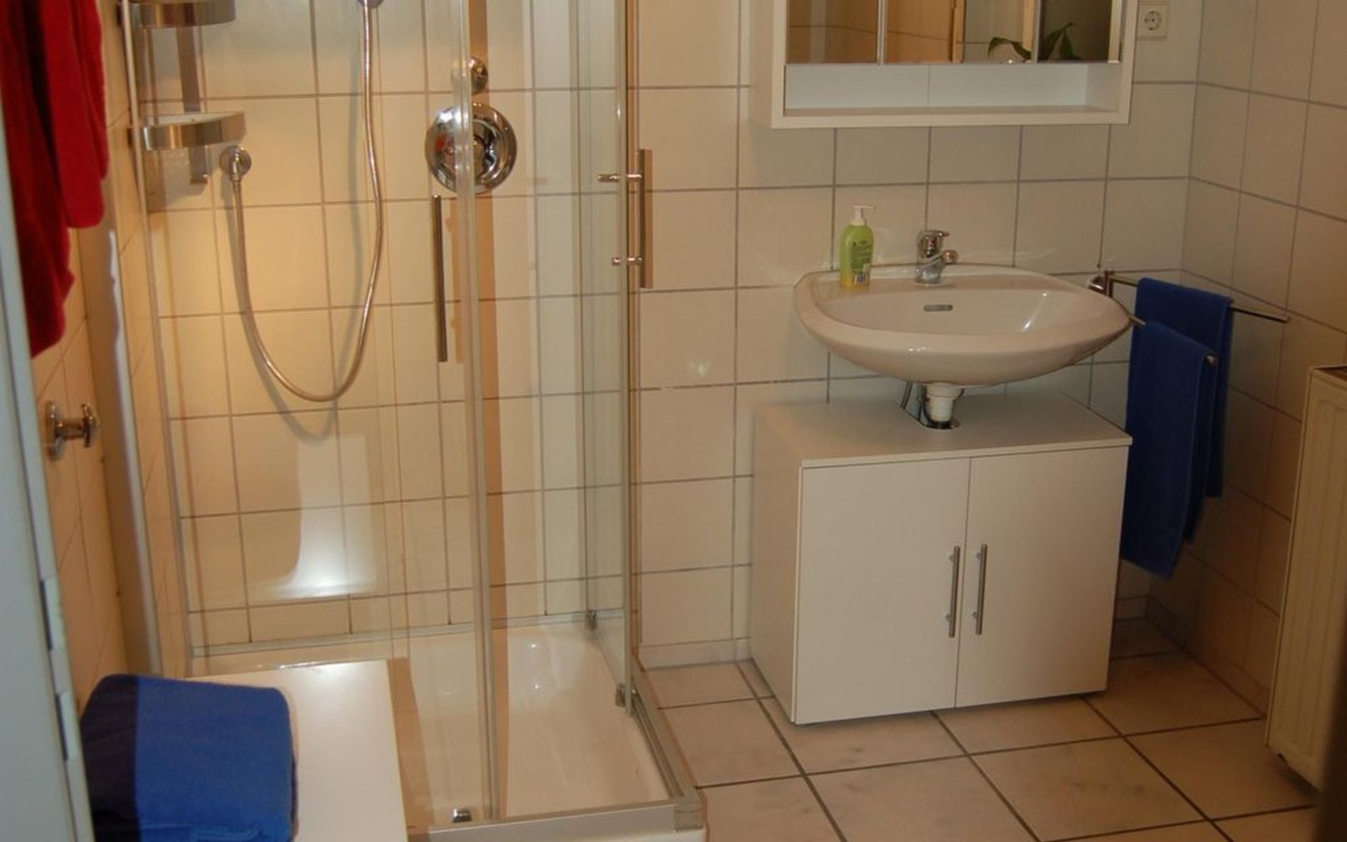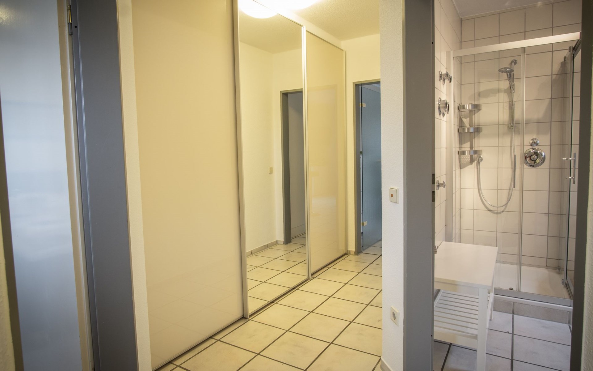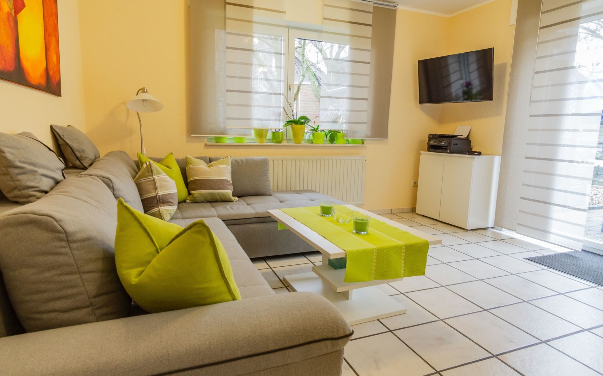 The bedroom is furnished with a high-quality box spring bed (180 x 200cm) and a spacious wardrobe. The beds are freshly made on arrival. There is also a sprung sofa in the living room that can be used as a bed measuring 140 x 230 cm, along with a smart TV including Prime Video, Maxdome and Netflix app. A Blu-ray player and wireless printer are available, as well as Wi-Fi free of charge. The kitchen is fully-equipped, including a ceramic hob, oven, dishwasher, microwave and coffee machine. The bathroom has a shower and WC. A hairdryer and fresh towels are provided.The centre with restaurants, supermarkets, pharmacies etc. is about 1200 metres away.The apartment can accommodate three adults or two adults and two children comfortably. The owners can provide a travel cot and highchair on request.