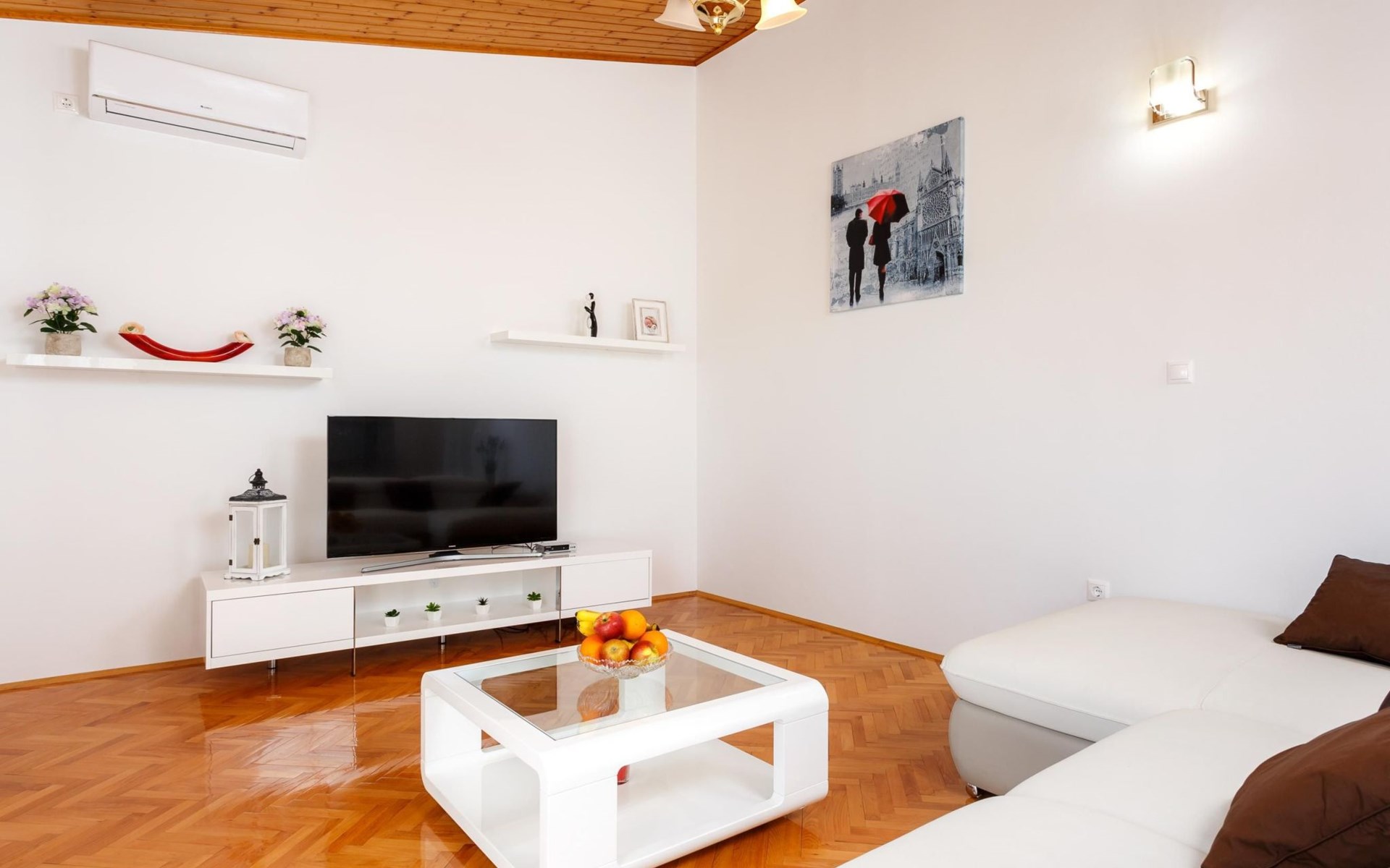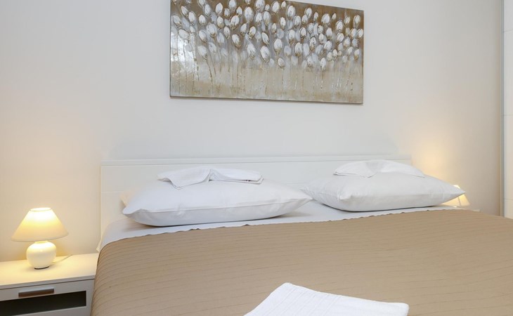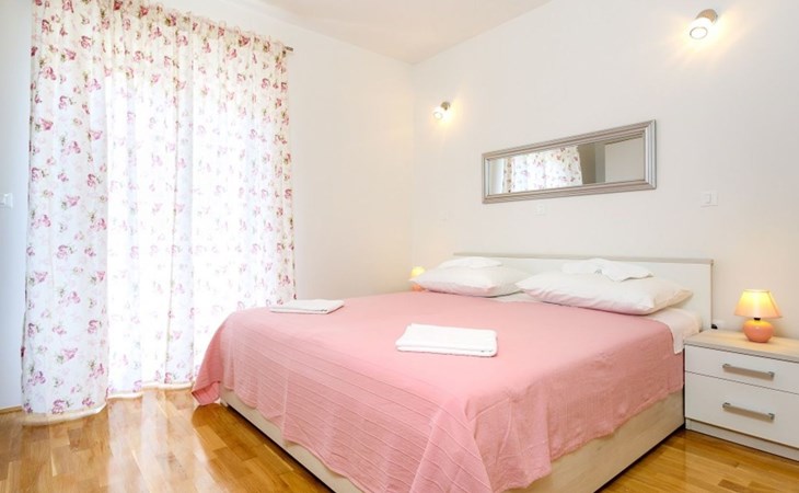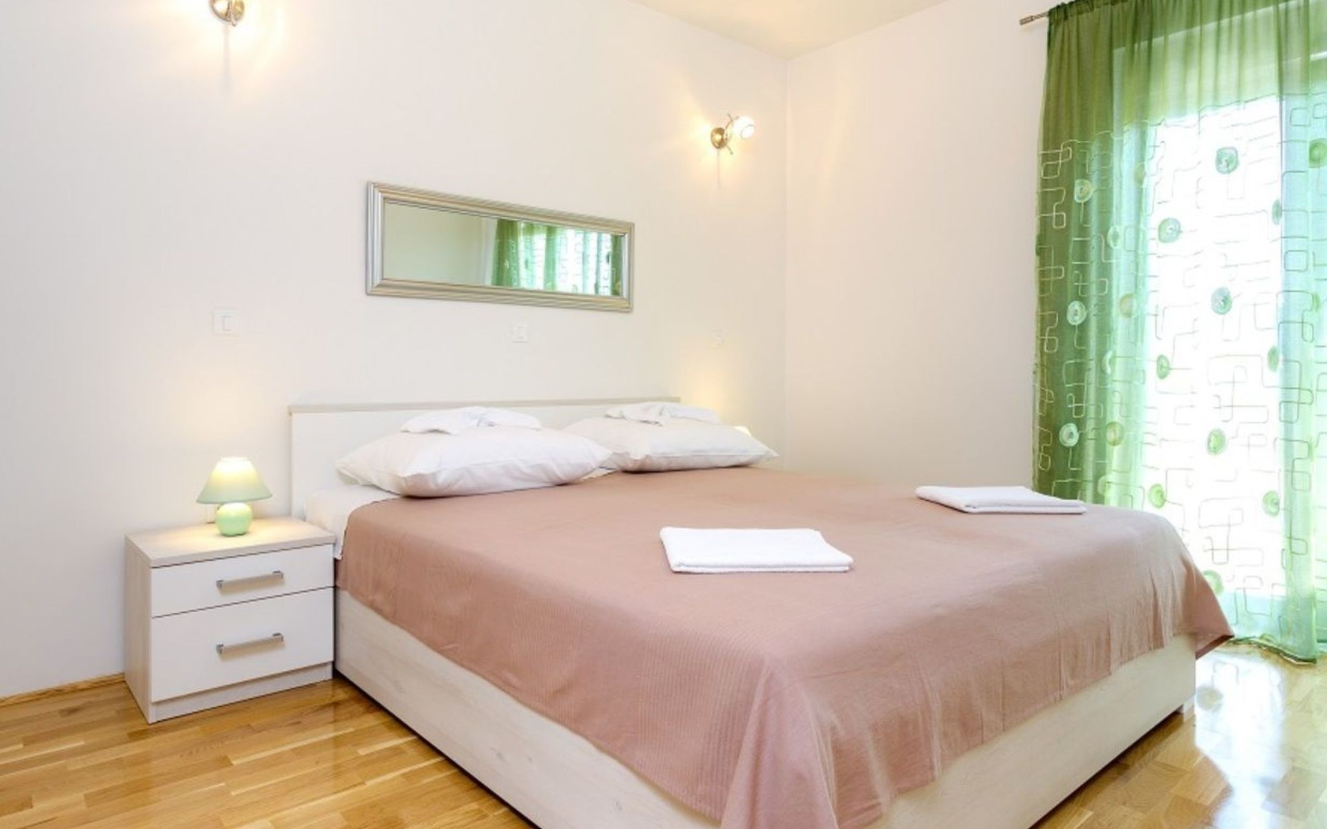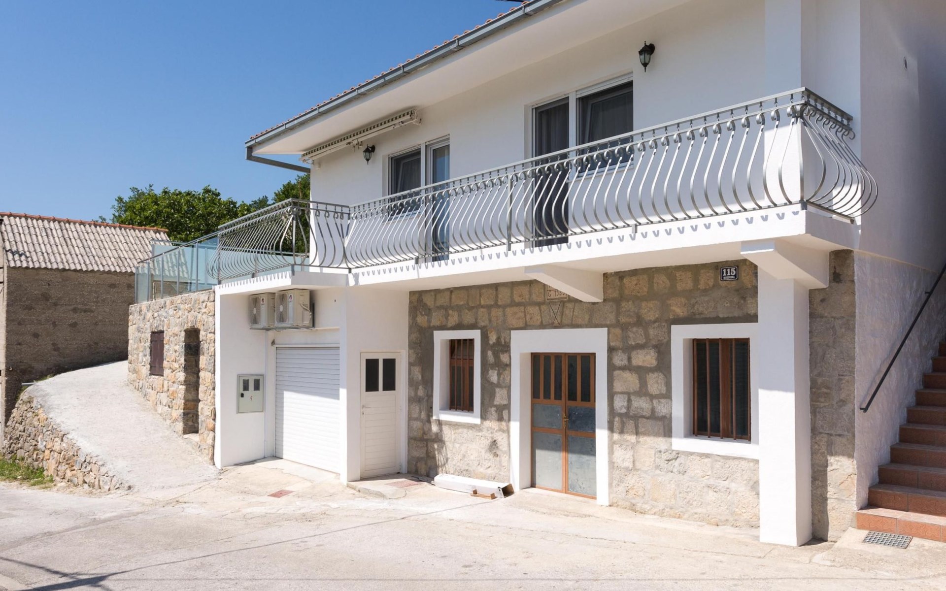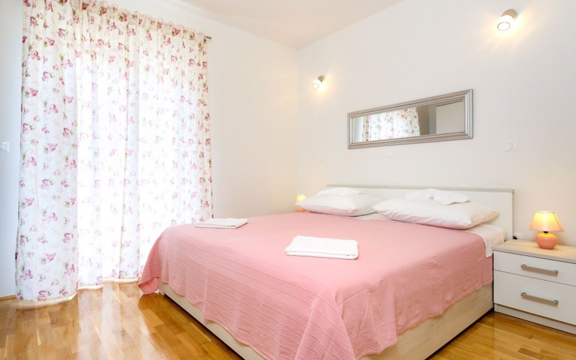 This modern and luxuriously furnished holiday villa is nestled into a green natural landscape at the foot of the mountain Mosor, just outside Srinjine along the sunny south coast of Croatia. It is an ideal place to leave hectic hustle and bustle far behind and to relax without a care in the world.Holiday home consisting of two separate residential units with panoramic views over the green hills from the private pool with outdoor shower and traditional BBQ grillIn the enclosed outdoor area a private pool awaits you with a metal ladder to facilitate entry and an outdoor shower. There is a sun deck next to it with sun loungers for relaxing, affording a view over the sun-blessed valley, the meadows and fields of the village Srinjine. A large parasol provides pleasant shade during the midday hours. You can spend your holiday evenings around the traditional stone grill. If you arrive by car, you can use the parking space in the private garage and there are three further parking spaces right in front of the villa.The spacious 180m² holiday villa consisting of two separate buildings was newly built in 2016 and is generously equipped for a comfortable stay, including air conditioning and wireless Internet access in all rooms. It is spread over two floors and comprises two open living and dining rooms each with a very modern kitchen, four bedrooms and three daylight bathrooms. The living rooms, one on the lower floor and one on the upper floor, each provides comfortable sofas, a wide flatscreen TV with satellite channels and a USB port, and a dining table with chairs. The white and glossy built-in kitchens are equipped with the latest appliances: dishwasher, ceramic hob with a stainless steel cooker hood, oven, microwave, fridge with freezer compartment, kettle, toaster and coffee machine. The four bedrooms are each furnished with a double bed (180 x 200cm), bedside tables with reading lamps and cupboards with ample storage space. The sofas in the living rooms can be pulled out as beds for two further people. All three bathrooms are fitted with a large shower cubicle with a rain showerhead, a washbasin with a cupboard underneath and a wall mirror, a hairdryer and a toilet. Two bathrooms also provide washing machines for your convenience. The lower living room has a safe for storing your valuables securely. All the windows and balcony doors are fitted with fly screens and blinds. A child’s bed and a highchair can be provided on request and plenty of bed linen and towels are included in the rental price.The village centre is about 2km away, just five minutes by car. Here you can find shops, three supermarkets, a bakery, colourful street markets, a post office and a good range of cafés and restaurants. It is about 14km to Omiš and about 16km to Split with its famous Diocletian Palace. In Omiš there is a very well-maintained and clean sandy beach with two little cafés, a jet-ski rental and also rafting, canyoning, kayaking, diving, zipline, banana boat ride, parasailing, boat trips to the islands etc. The nearest bus stop is about 2km away by the main road, with regular connections to Omiš and Split.