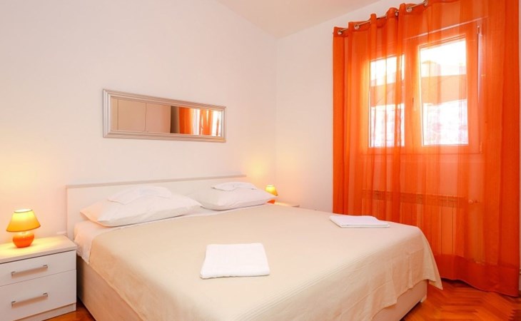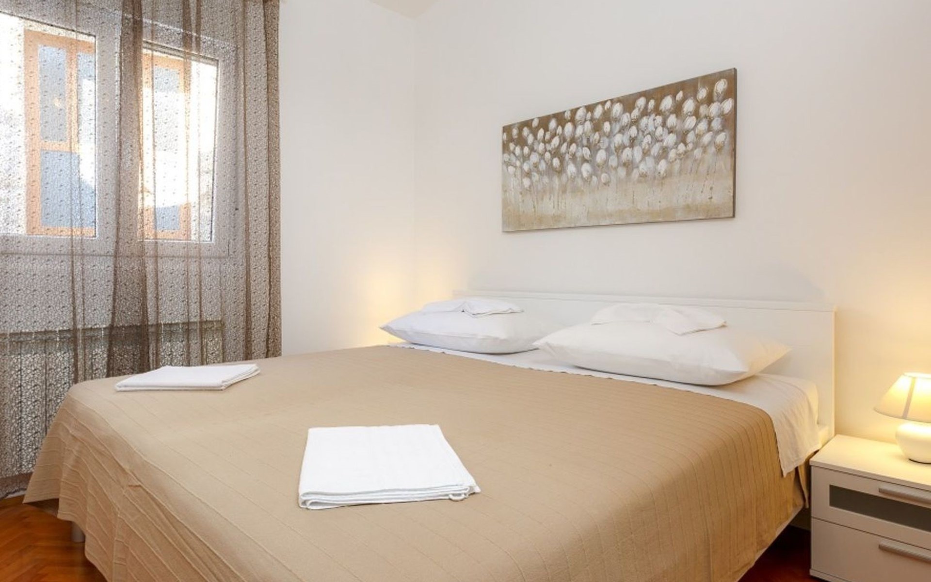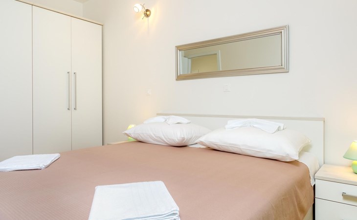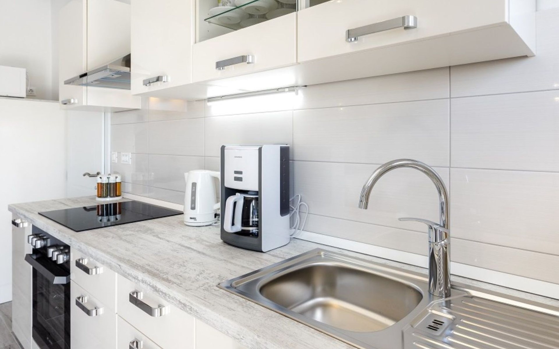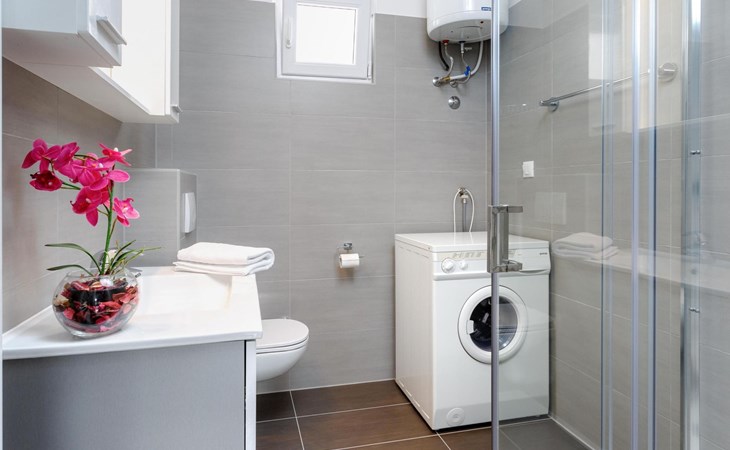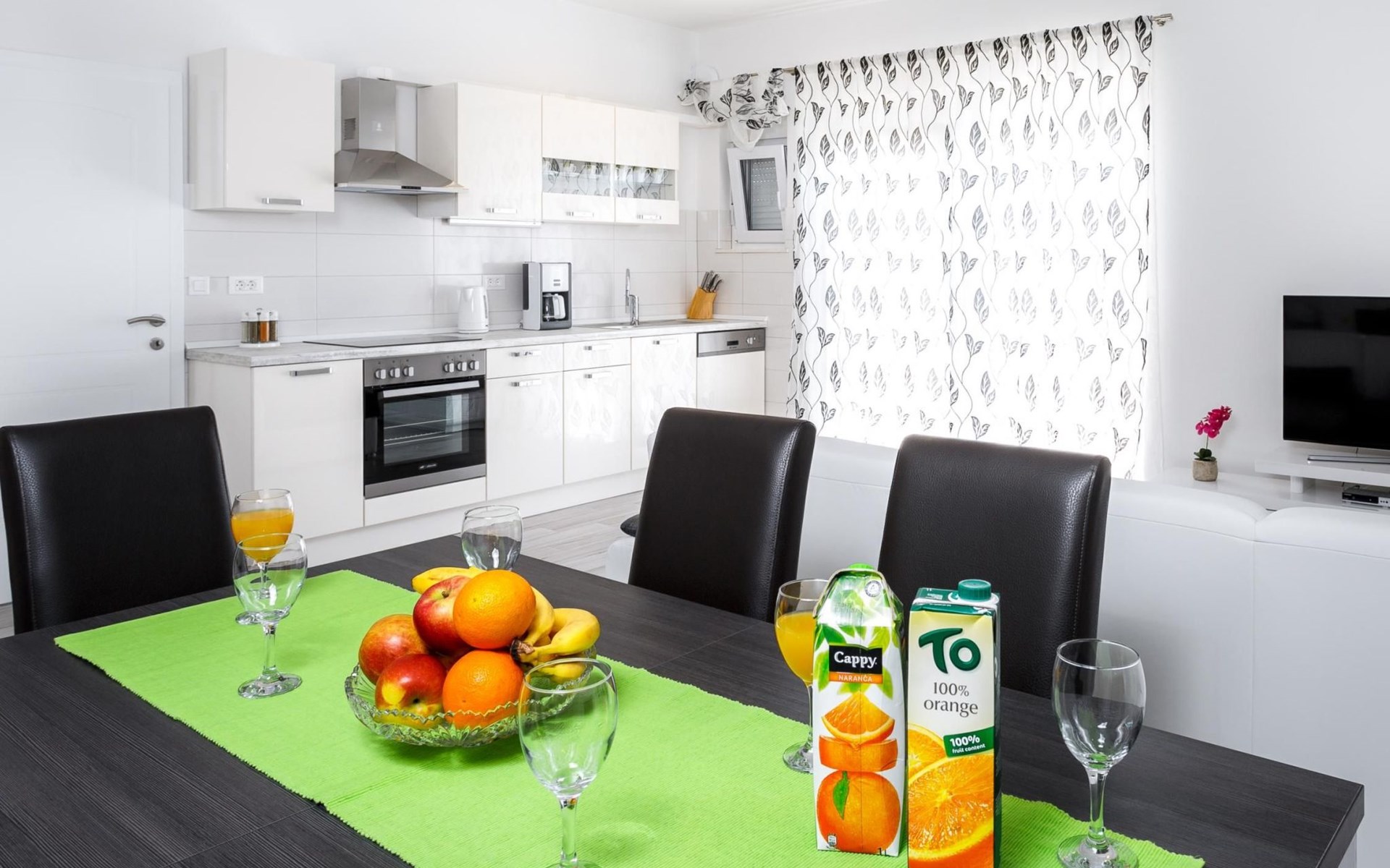 This modern and luxuriously furnished holiday villa is nestled into a green natural landscape at the foot of the mountain Mosor, just outside Srinjine along the sunny south coast of Croatia. It is an ideal place to leave hectic hustle and bustle far behind and to relax without a care in the world.Holiday home consisting of two separate residential units with panoramic views over the green hills from the private pool with outdoor shower and traditional BBQ grillIn the enclosed outdoor area a private pool awaits you with a metal ladder to facilitate entry and an outdoor shower. There is a sun deck next to it with sun loungers for relaxing, affording a view over the sun-blessed valley, the meadows and fields of the village Srinjine. A large parasol provides pleasant shade during the midday hours. You can spend your holiday evenings around the traditional stone grill. If you arrive by car, you can use the parking space in the private garage and there are three further parking spaces right in front of the villa.The spacious 180m² holiday villa consisting of two separate buildings was newly built in 2016 and is generously equipped for a comfortable stay, including air conditioning and wireless Internet access in all rooms. It is spread over two floors and comprises two open living and dining rooms each with a very modern kitchen, four bedrooms and three daylight bathrooms. The living rooms, one on the lower floor and one on the upper floor, each provides comfortable sofas, a wide flatscreen TV with satellite channels and a USB port, and a dining table with chairs. The white and glossy built-in kitchens are equipped with the latest appliances: dishwasher, ceramic hob with a stainless steel cooker hood, oven, microwave, fridge with freezer compartment, kettle, toaster and coffee machine. The four bedrooms are each furnished with a double bed (180 x 200cm), bedside tables with reading lamps and cupboards with ample storage space. The sofas in the living rooms can be pulled out as beds for two further people. All three bathrooms are fitted with a large shower cubicle with a rain showerhead, a washbasin with a cupboard underneath and a wall mirror, a hairdryer and a toilet. Two bathrooms also provide washing machines for your convenience. The lower living room has a safe for storing your valuables securely. All the windows and balcony doors are fitted with fly screens and blinds. A child’s bed and a highchair can be provided on request and plenty of bed linen and towels are included in the rental price.The village centre is about 2km away, just five minutes by car. Here you can find shops, three supermarkets, a bakery, colourful street markets, a post office and a good range of cafés and restaurants. It is about 14km to Omiš and about 16km to Split with its famous Diocletian Palace. In Omiš there is a very well-maintained and clean sandy beach with two little cafés, a jet-ski rental and also rafting, canyoning, kayaking, diving, zipline, banana boat ride, parasailing, boat trips to the islands etc. The nearest bus stop is about 2km away by the main road, with regular connections to Omiš and Split.