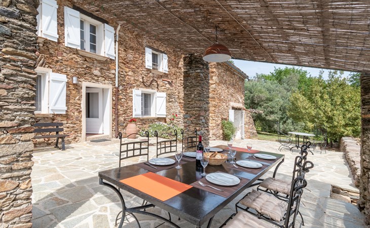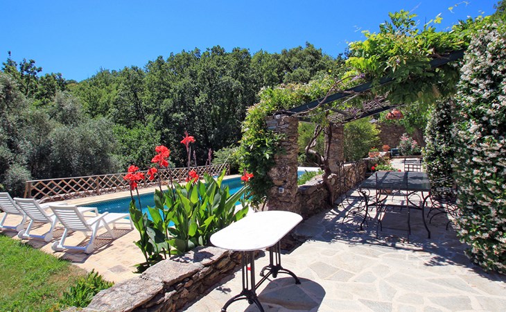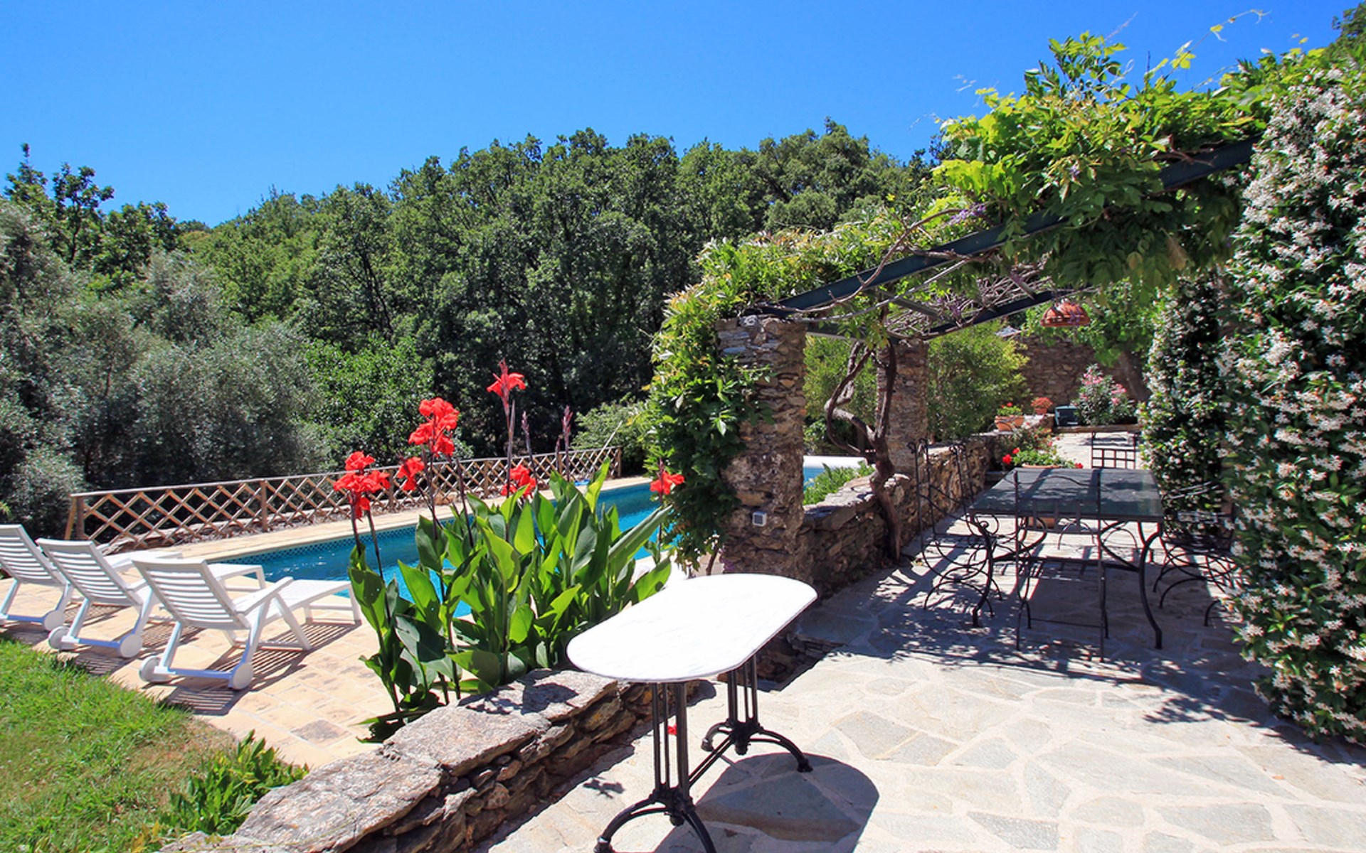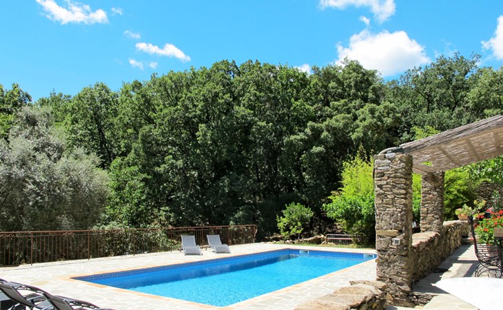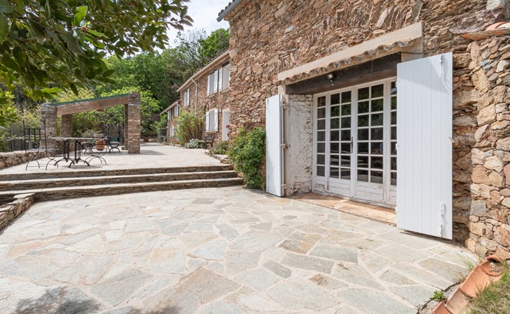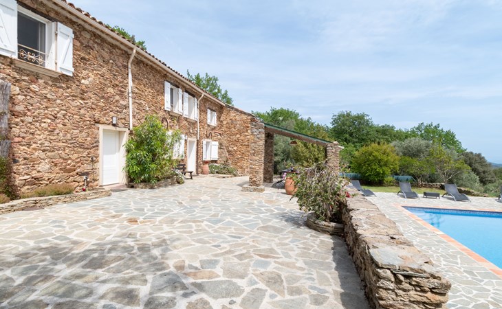 Mas "La Bastide Haute", 300 m boven zeeniveau, eenzijdig aangebouwd. 8.5 km van het centrum van La Garde-Freinet, 15 km van het centrum van Grimaud, 21 km van het centrum van Cogolin, geïsoleerde ligging, 20 km van zee. Voor alleengebruik: terrein 4 ha met planten, weide, openluchtzwembad (12 x 5 m, seizoensgebonden beschikbaarheid: 01.Mei. - 31.Okt.). Prieel. Zeer rommelige, smalle toegangsweg (1.7 km onverharde weg). Parkeerplaats op het terrein. Winkel 8.5 km, supermarkt 21.5 km, bushalte 8 km, zandstrand 20 km. Eigenaar woont in apart huisgedeelte.