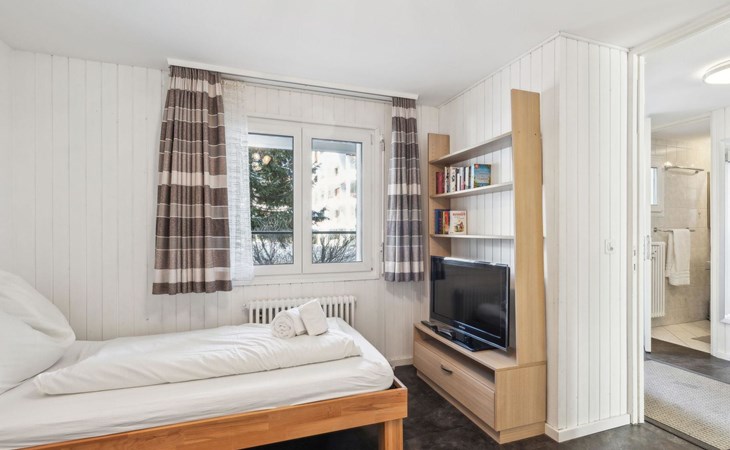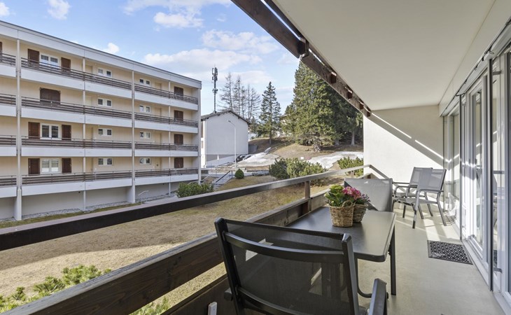 House Sursilvana / 2nd floor - left / Lift / Wlan yes / 1 room with double bed / 1 room with bunk bed / 1 bathroom with WC and bathtub / 1 separate WC All Seestrassen flats, numbers 4-6, are located in the centre of Lenzerheide and have a south-facing balcony. They are also directly on the ski slope/cross-country ski run and in the immediate vicinity of the free sports bus and various shopping facilities. A good starting point for all winter/summer activities for the whole family. (In the same house Sursilvana are the following flats Nr.05, Nr.06 and Nr.27)