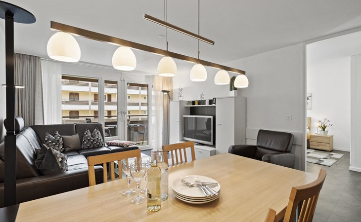 - the visitor's tax is charged separately and is paid directly to the landlord on site (Persons from 16 years CHF 4.50 per night / < 16 years tax exempt) - Bed linen charge includes towels & kitchen linen. - Cot and high chair can be obtained from our office for a deposit. Bookings up to 60 days before arrival can be cancelled free of charge. For any cancellations, a handling fee of CHF 100.00 will be retained. If a cancellation is made less than 60 days before arrival, the tenant has the right to propose a replacement tenant. The substitute tenant must be reasonable and solvent for the landlord. The substitute tenant shall enter into the contract under the existing conditions. The tenant and the substitute tenant are jointly and severally liable for the rent. The date of receipt of the notification by the landlord or the booking office is decisive for the entitlement to the cancellation fee (for Saturdays, Sundays and public holidays, the next working day applies). In the event of premature termination of the rental, the entire rental fee shall remain owed.