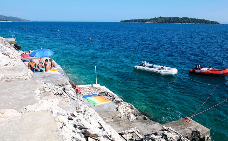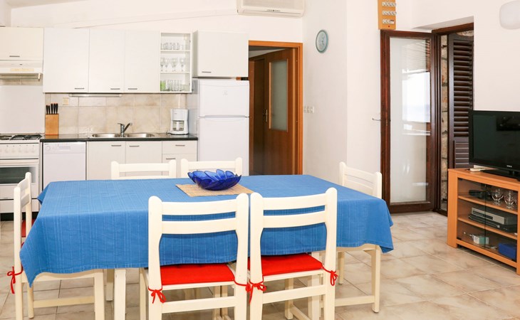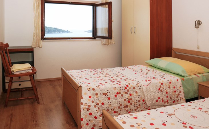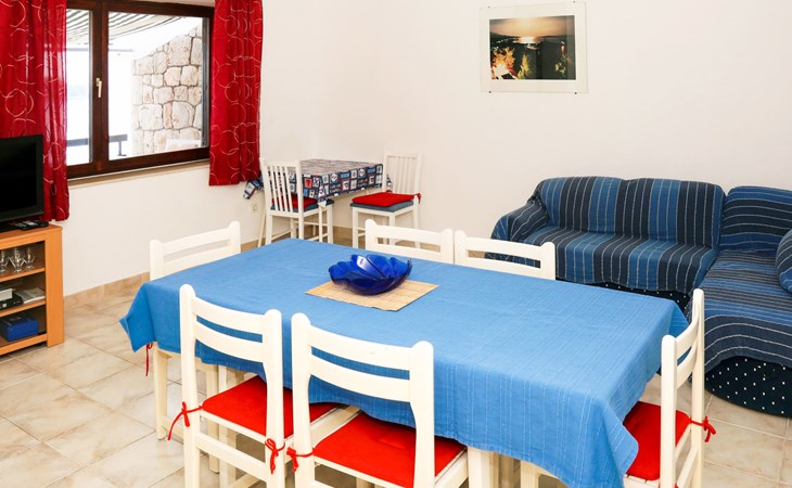 Appartementencomplex "Martina". 42 km van het centrum van Korčula, 1 km van het centrum van Prizba, 8 km van het centrum van Blato, 20 m van zee, 20 m van het strand. Voor medegebruik: terrein 500 m2 met bomen. Buitendouche, barbecue. In het huis: internetaansluiting. Parkeerplaats op het terrein. Supermarkt 8 km, bushalte 9.7 km, veerboot 20 km, rotsstrand 20 m. Privé aanlegsteiger voor een boot, op aanvraag. De eigenaar woont in hetzelfde huis.