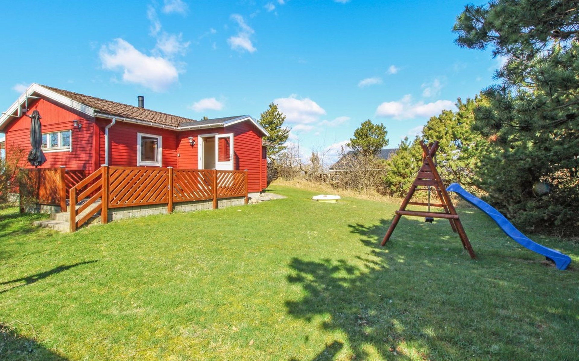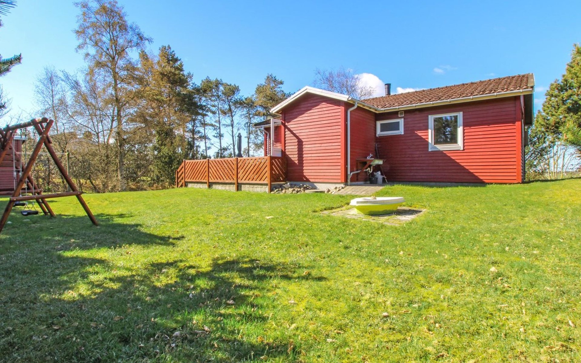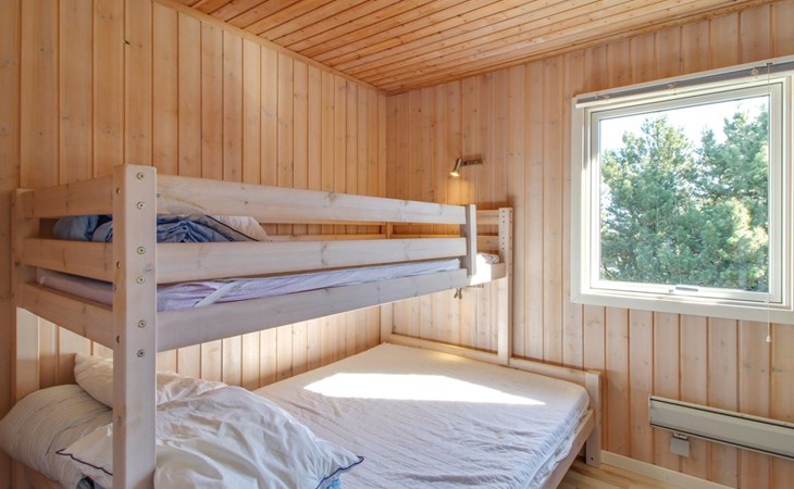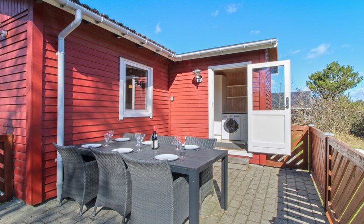Eengezinswoning, bouwjaar 1973. 400 m van zee. Voor alleengebruik: wild terrein 1.114 m2. Terras (14 m2), kinderspeelplaats (schommel). In het huis: wasmachine, droger. Parkeerplaats bij het huis. Levensmiddelenwinkel 2 km. Golfterrein 20 km. De eigenaar accepteert geen jeugdgroepen.