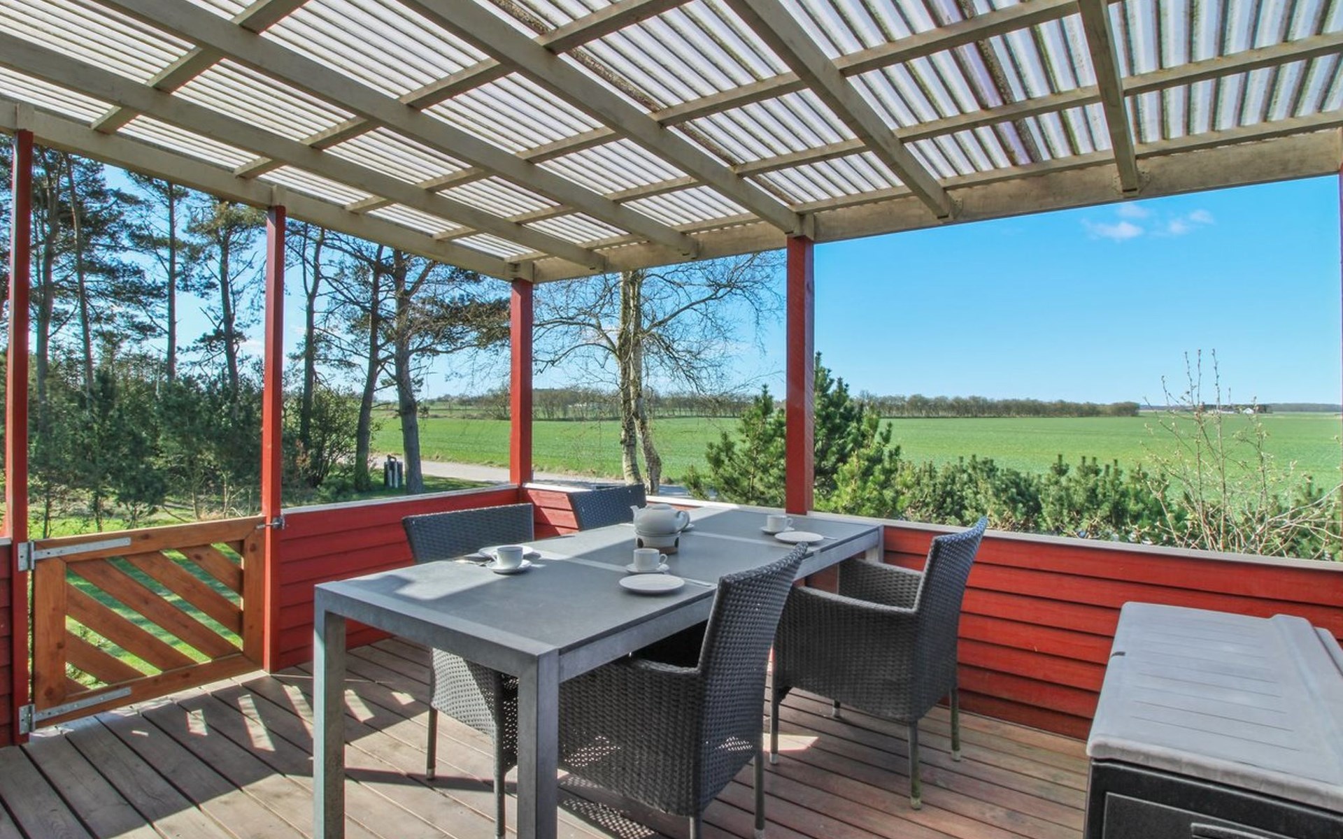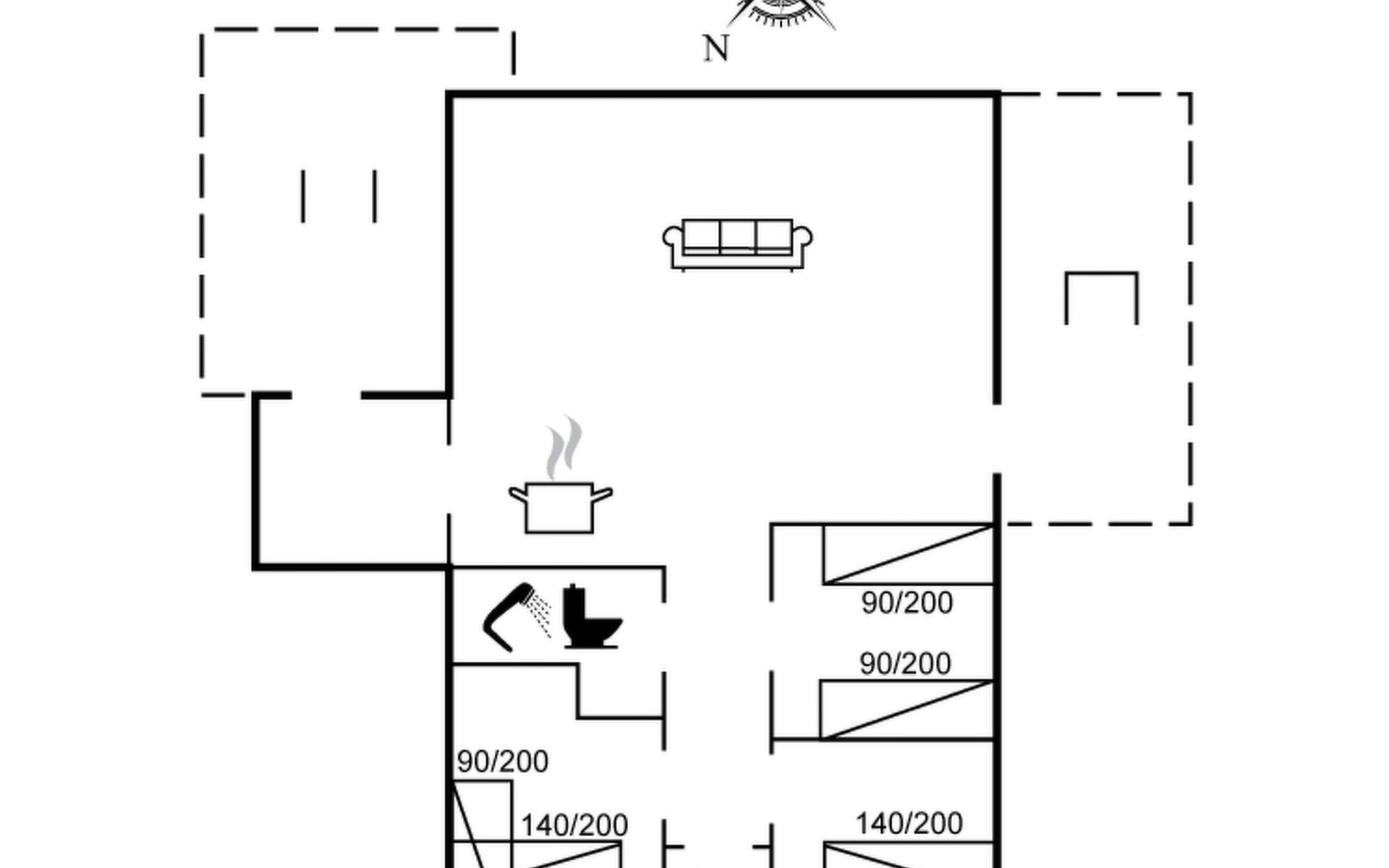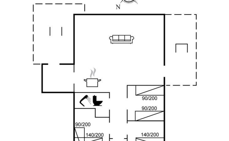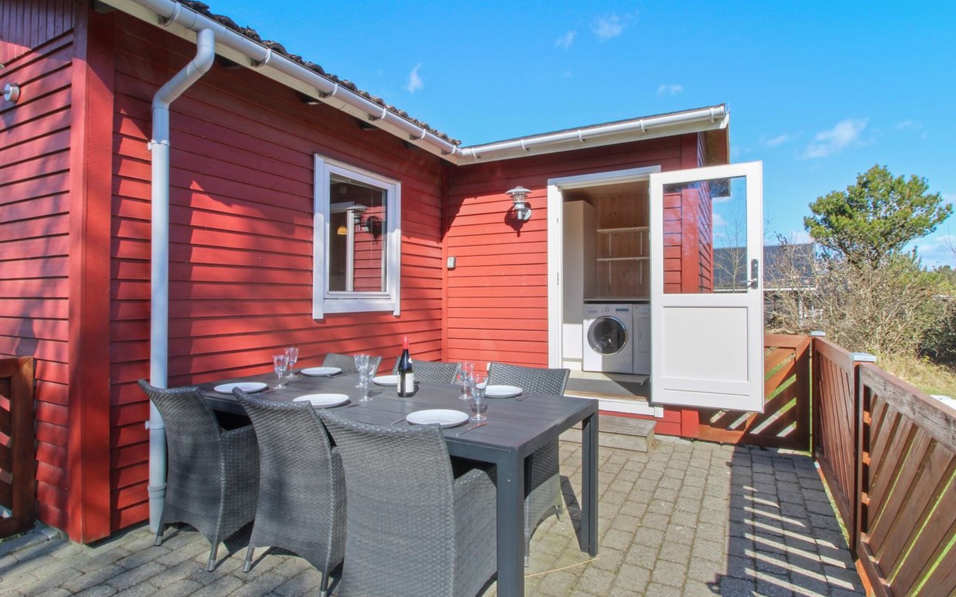 Eengezinswoning, bouwjaar 1973. 400 m van zee. Voor alleengebruik: wild terrein 1.114 m2. Terras (14 m2), kinderspeelplaats (schommel). In het huis: wasmachine, droger. Parkeerplaats bij het huis. Levensmiddelenwinkel 2 km. Golfterrein 20 km. De eigenaar accepteert geen jeugdgroepen.