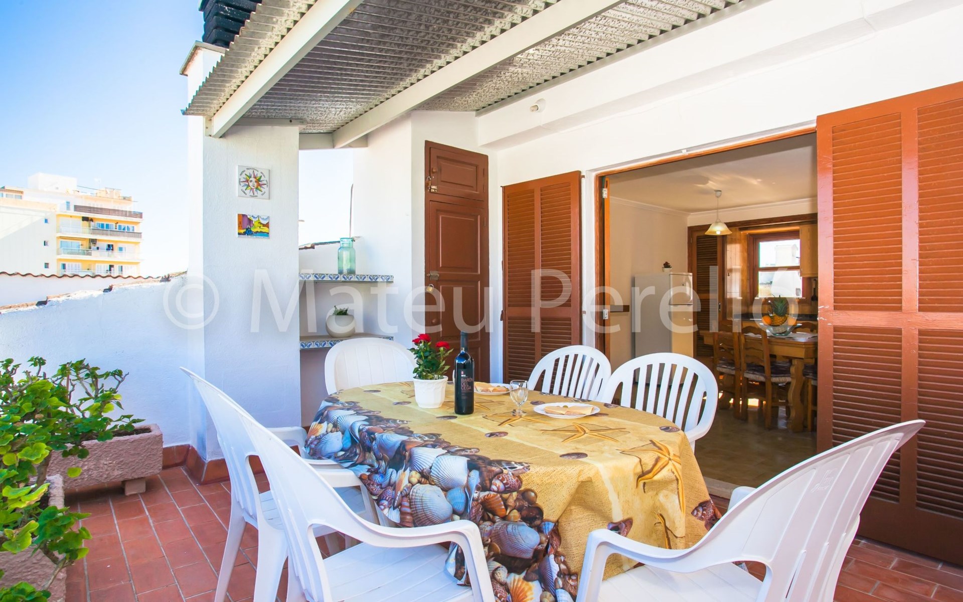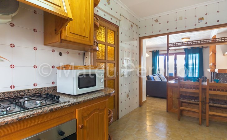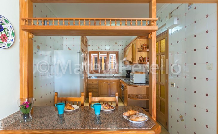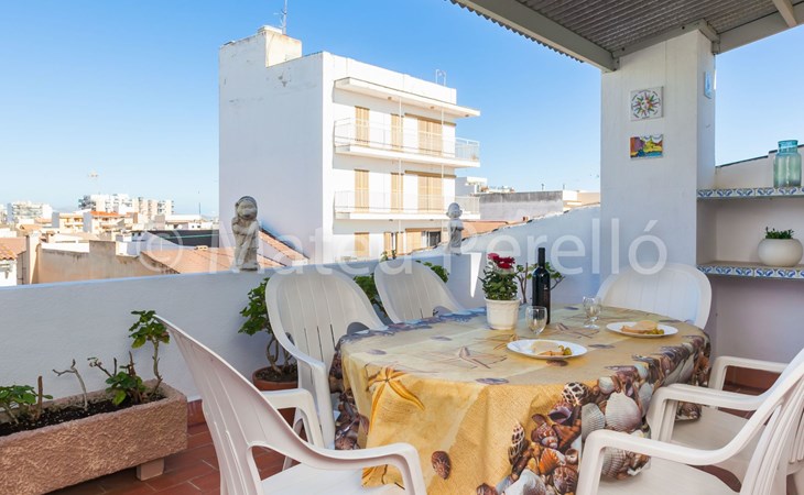 Orellana house is located on the first floor of a building located on a quiet street 200 m. from the sea in a residential neighborhood, away from the bustle own tourist areas, but close to downtown and the beach of Can Picafort. It is a functional apartment for 6 people. Comprising 3 double bedrooms with 1 double bed and 4 single beds, 1 bathroom with tub, a living room with TV and DVD. The kitchen is fully equipped with enough utensils and appliances to help you during your stay tasks, also a washing machine. Air conditioning in the corridor will help you to enjoy sleeping. Sunny balcony with outdoor furniture. It's perfect to enjoy a lovely breakfast or dinner, to read, chat or just get some fresh air for a while before bed. On the upper floor, which is accessed by the building's staircase, you can enjoy an exclusive picnic area with a barbecue and sunbeds for sunbathing. Also, a small kitchen and a summer dining room, a bathroom and laundry. Highly recommended for families.Can Picafort is one of the most popular tourist areas of Mallorca. Its beaches, awarded the blue flag of the FEE (Foundation for Environmental Education ) extend along nearly 9 miles of coastline, are of fine white sand and are equipped with all amenities. The offer for leisure is extensive, with numerous bars, restaurants, clubs, sports, etc. and with all the facilities: supermarkets, pharmacies, public swimming pool ... close to the neighborhood, so you don’t need to move. From the village, you can reach any point on the island. The Parc Natural de s’Albufera is a few miles cycling, like the Parc of the public estate of Son Real (unique natural landscape riddled with archaeological sites), which is accessible along the coast, walking, cycling or horse riding. A bus line connects Can Picafort to Puerto Alcudia, the Roman walled town of Alcudia, Puerto Pollensa, Pollenca, Inca and Palma, the capital. If you prefer more comfort and autonomy we recommend renting a vehicle. From Happy Mallorca we can provide very competitive rates, so for this option, please contact us and we will give you a quote. Dare to discover the secrets of this wonderful island! ESFCTU00000701100060938700000000000000000ETVPL/13