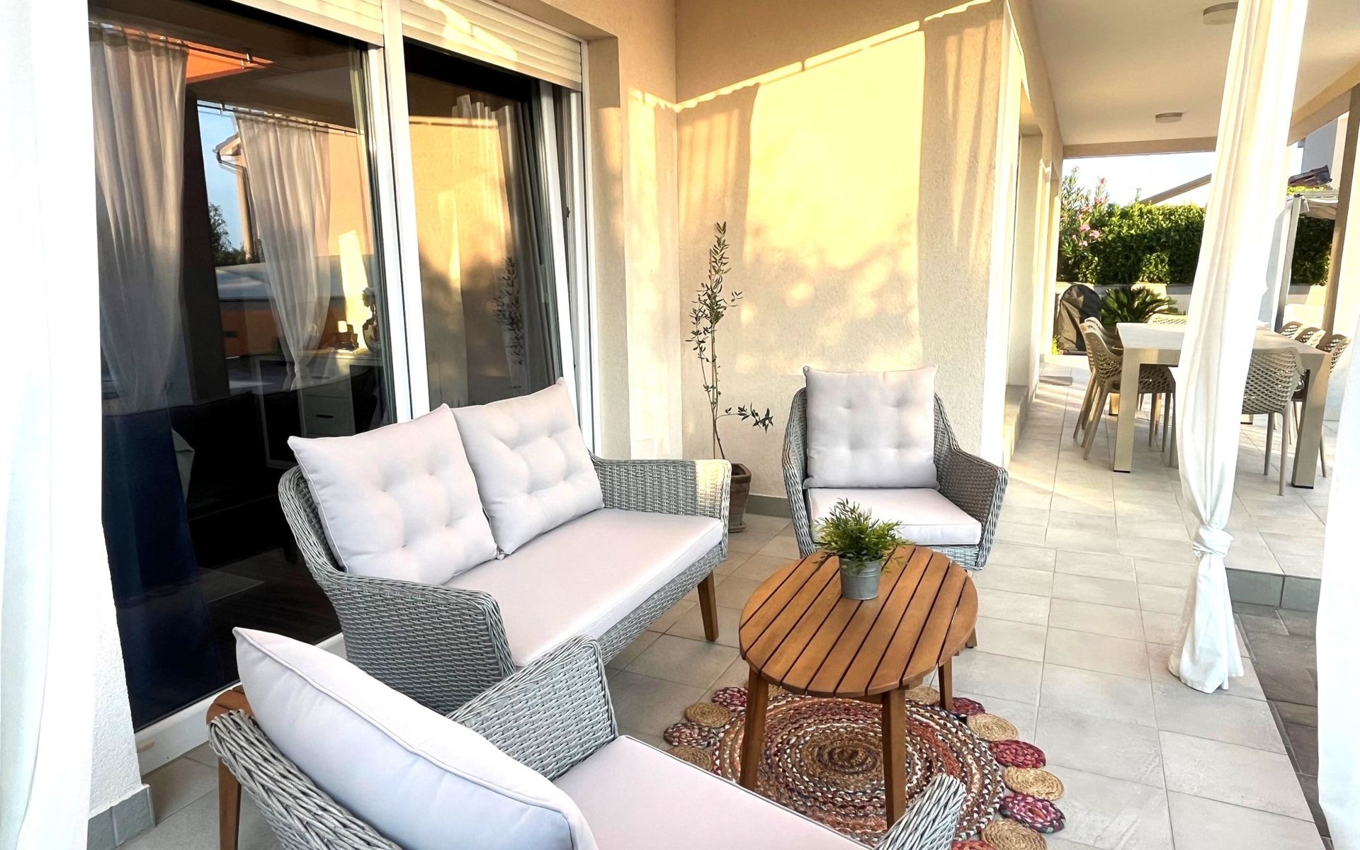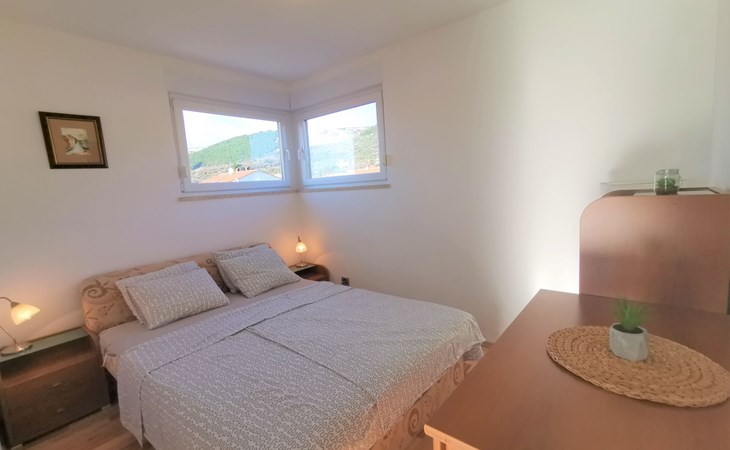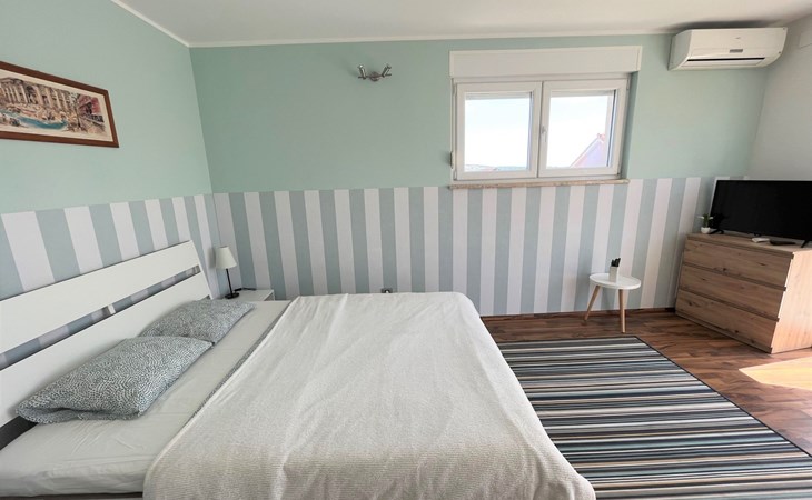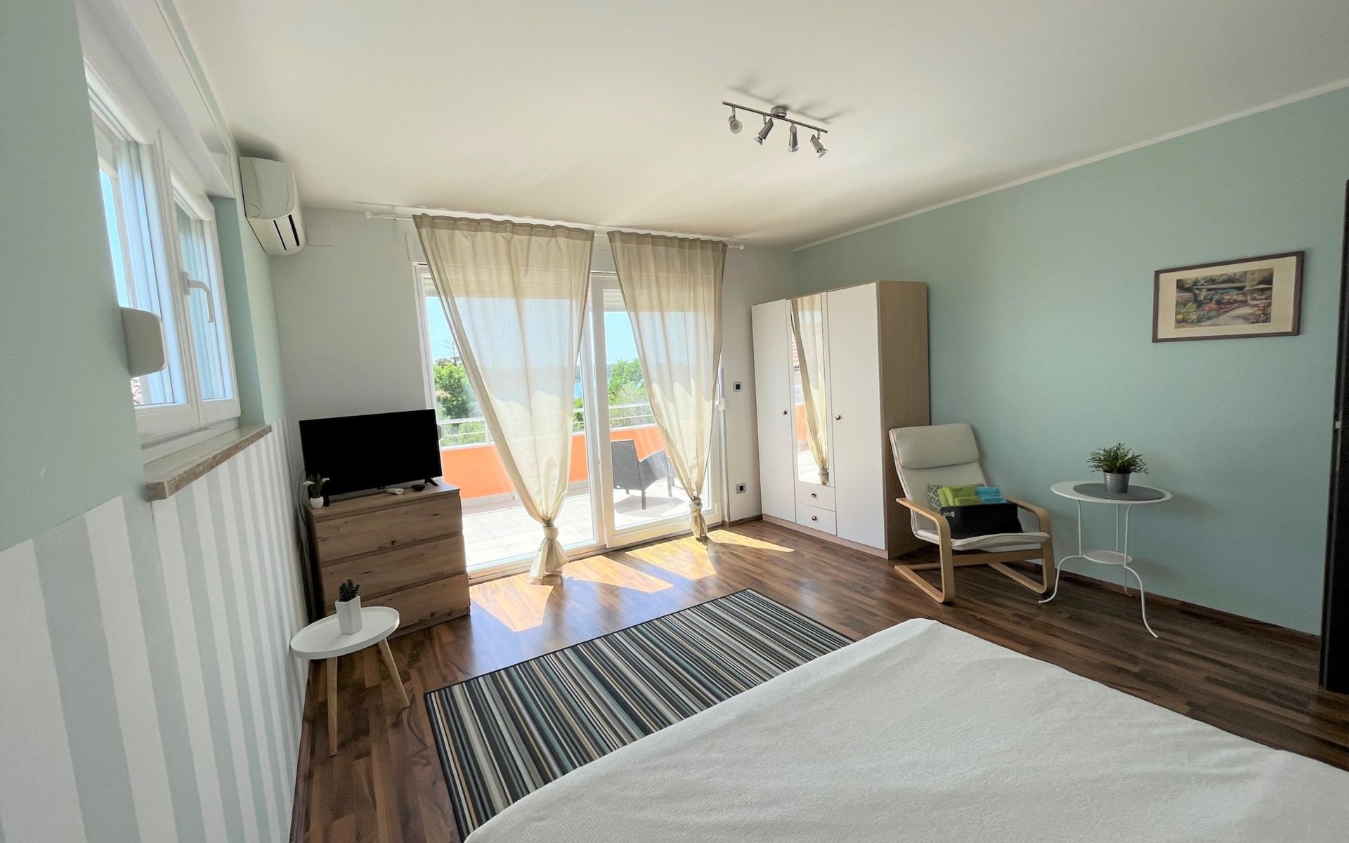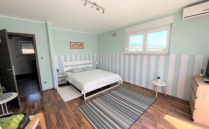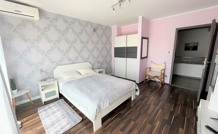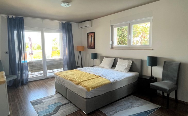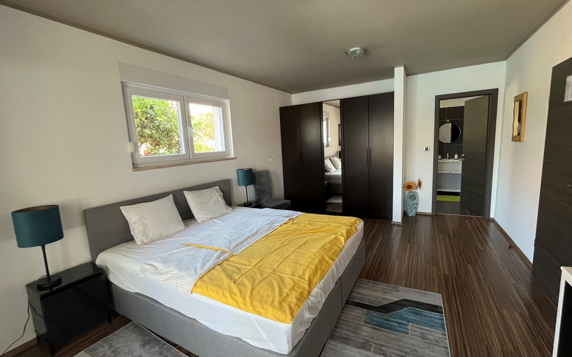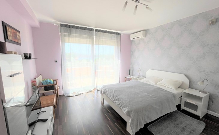 All bedrooms on the first floor are connected with an open terrace while apartment has a covered balcony with a cosy seating area, from where a beautiful view extends over the surroundings and the sea in the distance.A grocery shop is just few steps from the house. The beach is also very close, just 90 meters from the house.