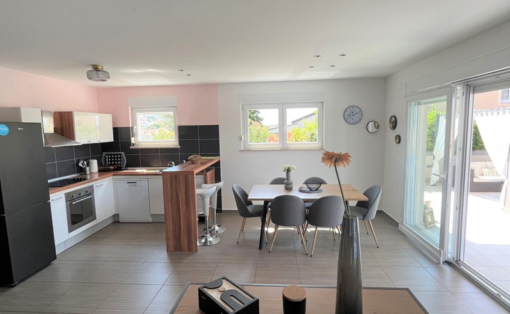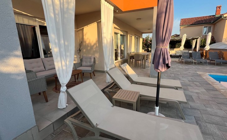 The highlights of this great villa is a private garden with a pool, surrounded by greenery.There are 2 separated terraces on the ground floor, equipped with table for 9 people and terrace lounger. In the separate corner of the garden there is a huge lounge setting . Relax on the sun by the pool, make use of the barbecue and prepare a delicious meal for the whole family and let the kids have fun in the garden and pool.