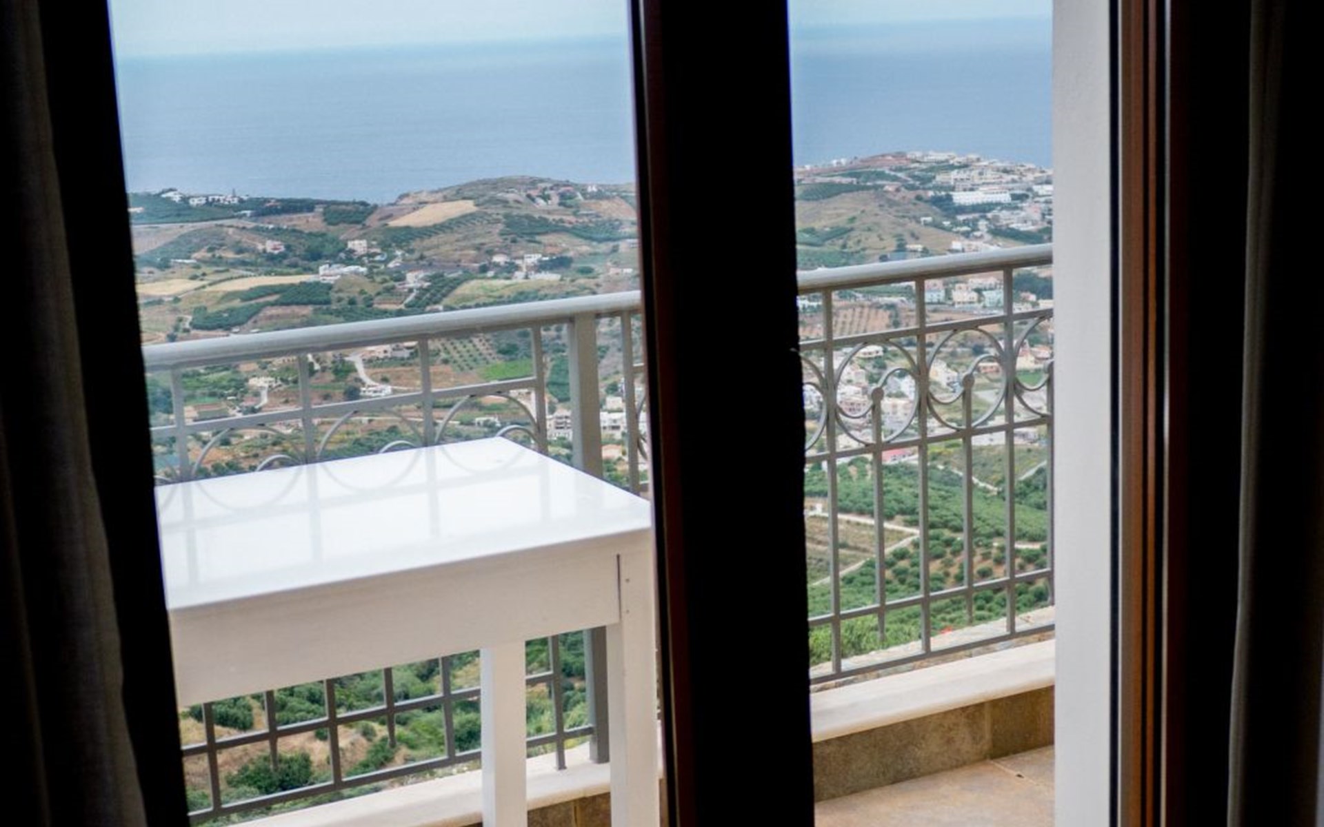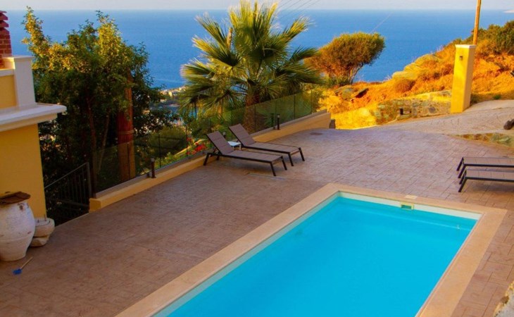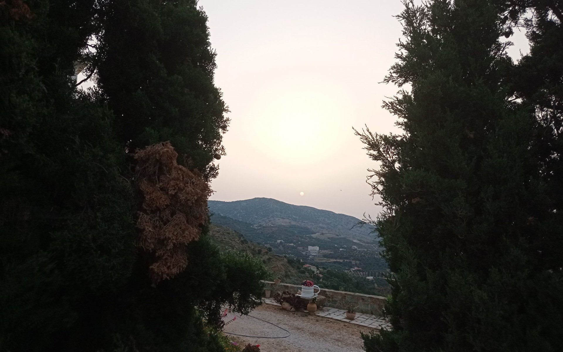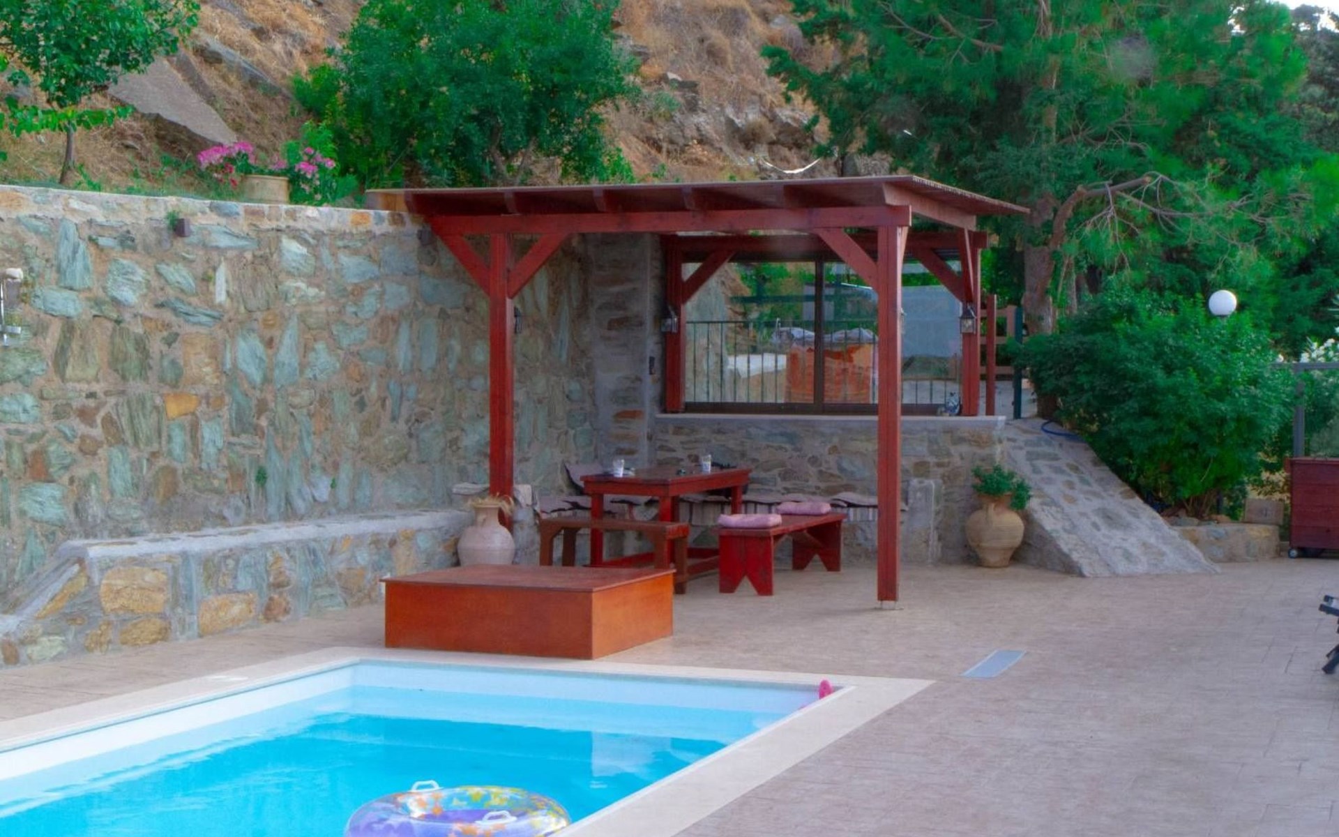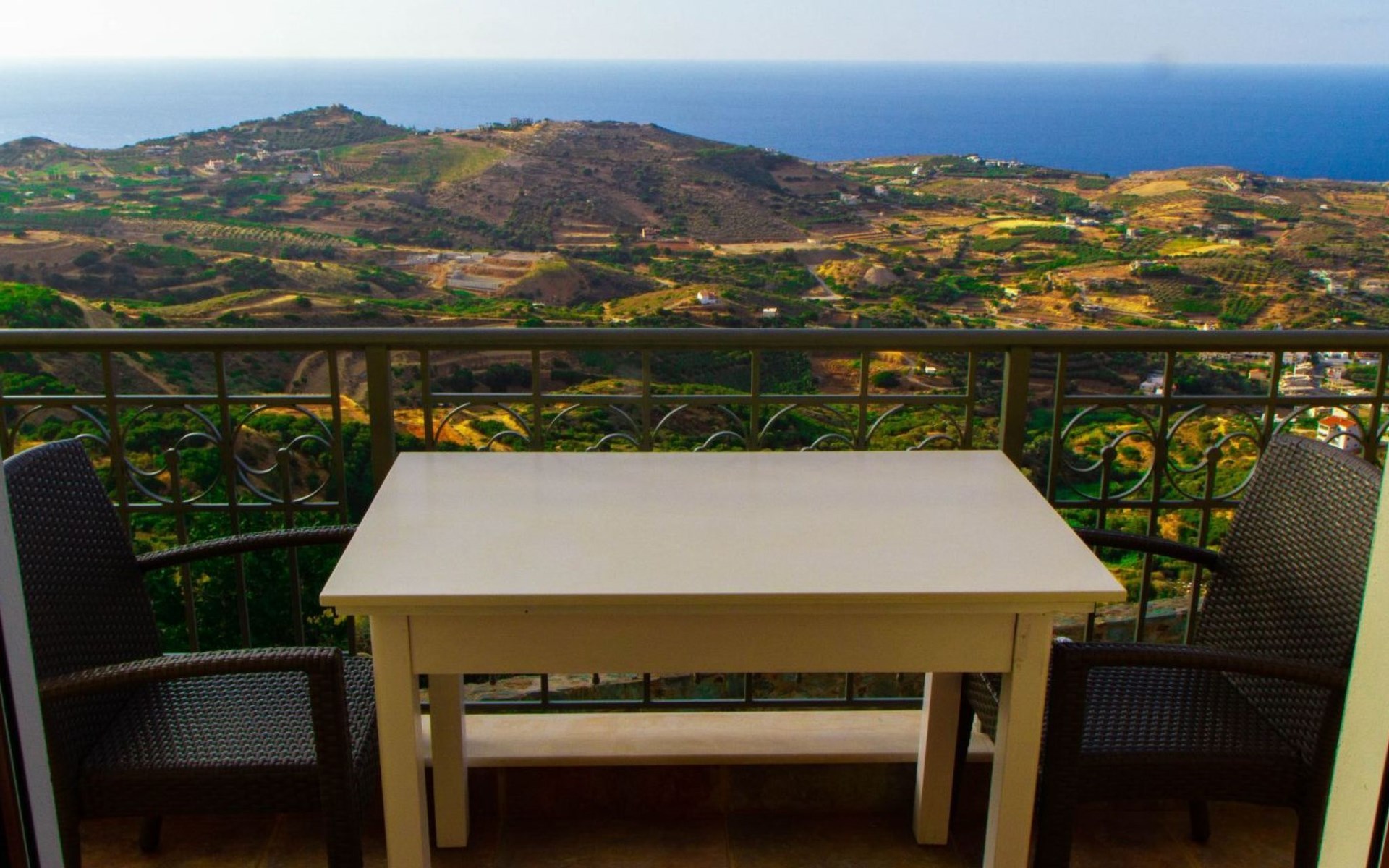 Set on the mountain side with a magnificent view of the village of Agia Pellagia (also known as Ancient Apollonia, as used to be the location of a temple dedicated to God Apollo) together with the sea makes of an idyllic vista on both sea and mountain. Road is rural and mountainous with turns and ups , perfect for hikers and nature lovers alike , be sure to have a good car though. The villa is at the end of the road with no other properties around, ensuring your recluse and an ideal escape from crowded cities and noise. Sunsets and sunrises are a spectacle to behold, and when the weather is just right, a multitude of hues awaits you in the setting sky.The apartment is at the first floor of a villa, fully decorated with 4 bedrooms, each with its own bathroom, AC in every room and fully equipped kitchen with everything you need to make lovely breakfasts and dinners alike. The floor is entirely at your disposal without any other quests to bother you in a 135 sqm2 area with satellite TV, full WiFi coverage, hair driers in every bathroom, washing machine for laundry and dishes and more. Baby crib is provided per request and the sofa in front of TV can turn to a bed to accommodate 1 more person. Entire apartment is surrounded by 4 balconies with tables and chairs for that evening tea or coffee break.The area around villa, has access to a parking lot for your own use only, private swimming pool, a perkola with a big table and long bench , charcoal BBQ and that magnificent view.The road to the mountain needs a strong car, due to the steep incline and rough terrain. Those that feel like it, you can take a hike and explore the mountains nearby and admire the view.The beach is around 6km by the car next to the small village (visible from the villa above) of Agia Pelagia. At the village you will find anything you need, from taverns, coffee shops, super markets and more. The road passes under the highway which you will use to get from and to the major city of Crete, Heraklion , which also has the biggest airport. From the highway you can access all around Crete easily. 00000688322