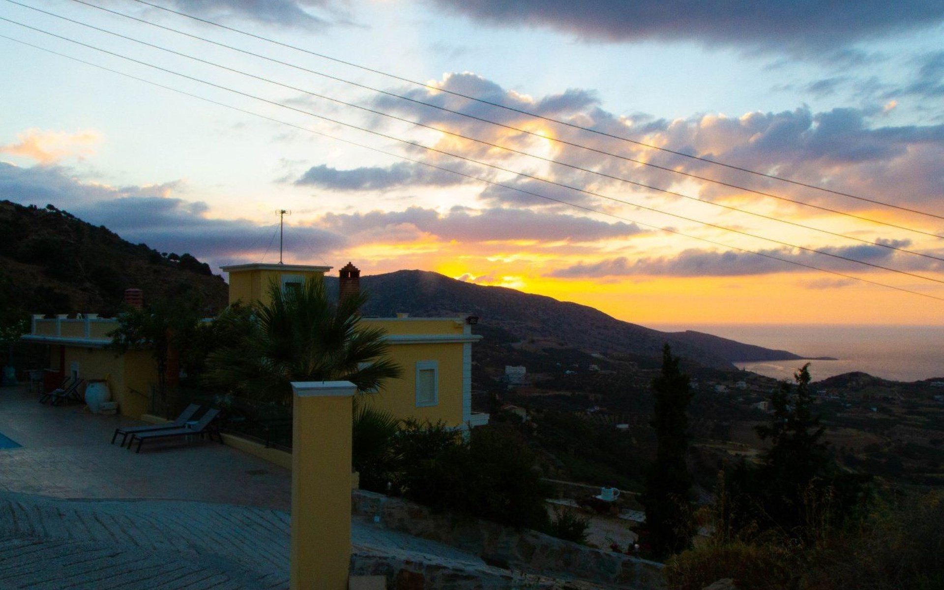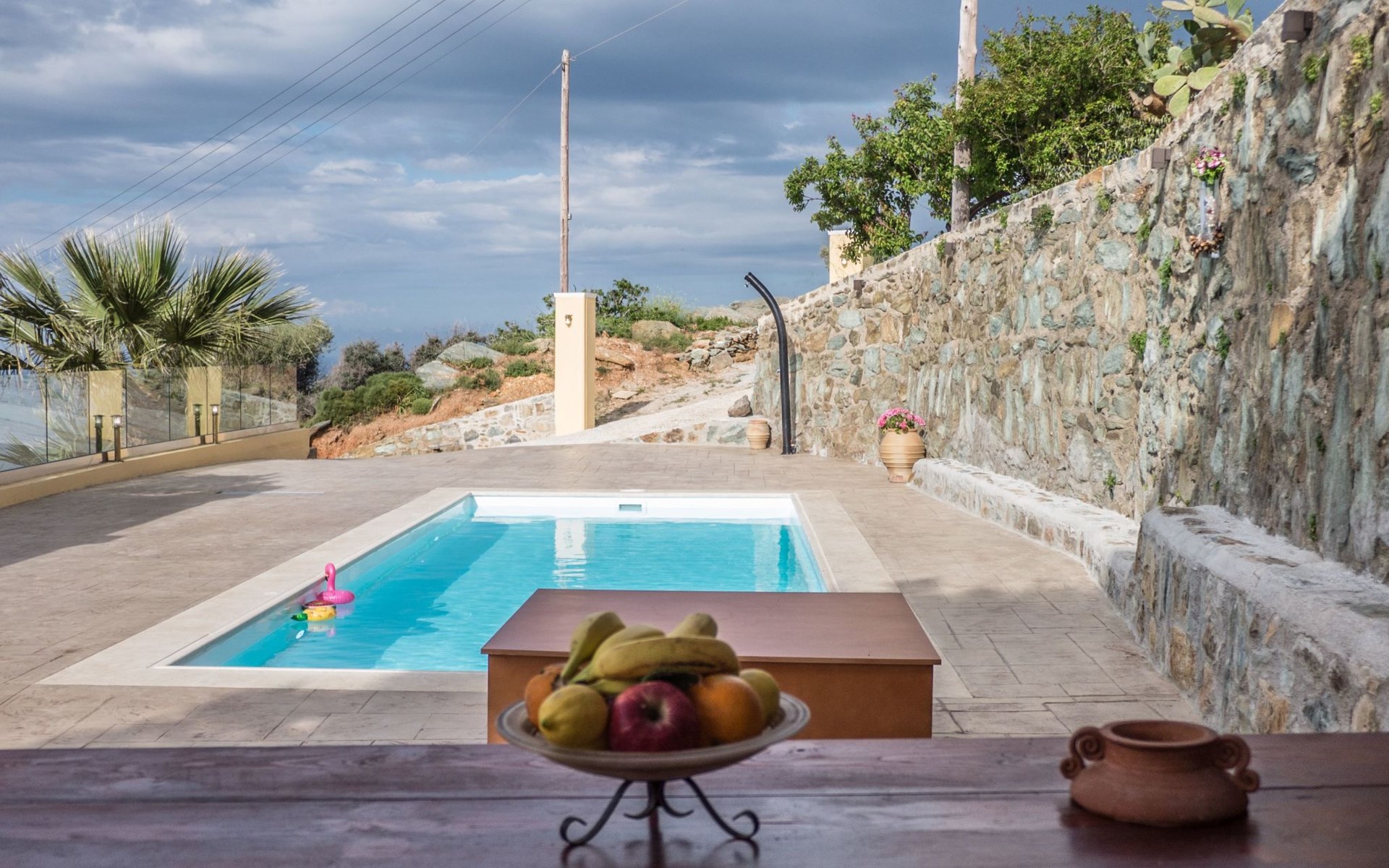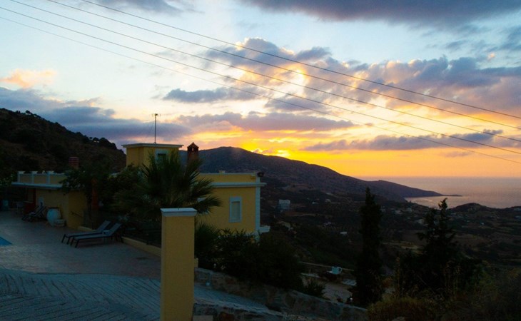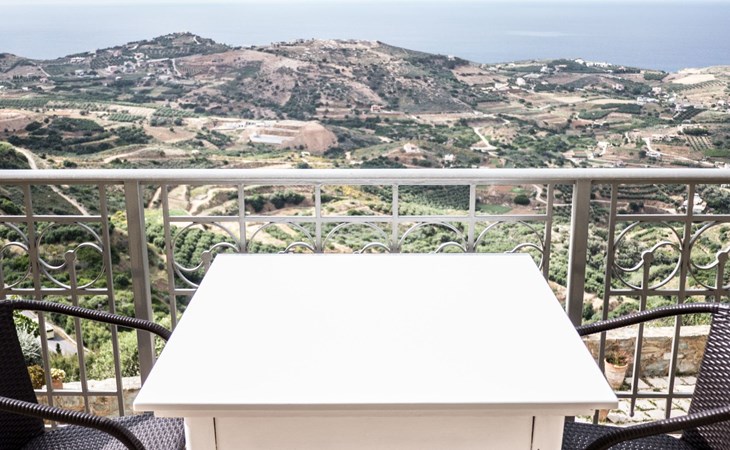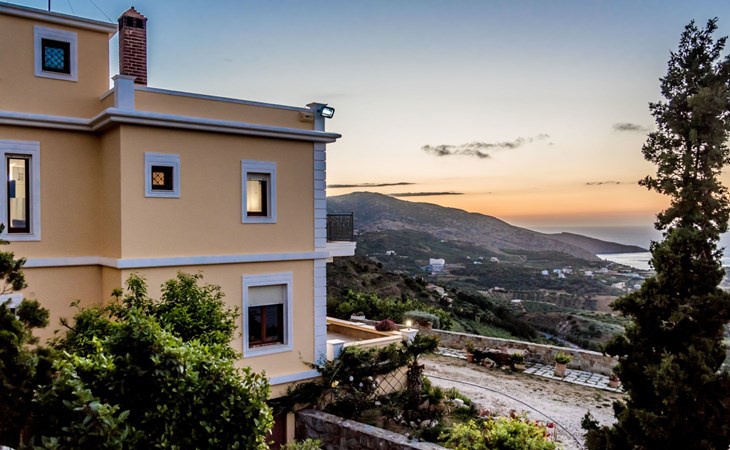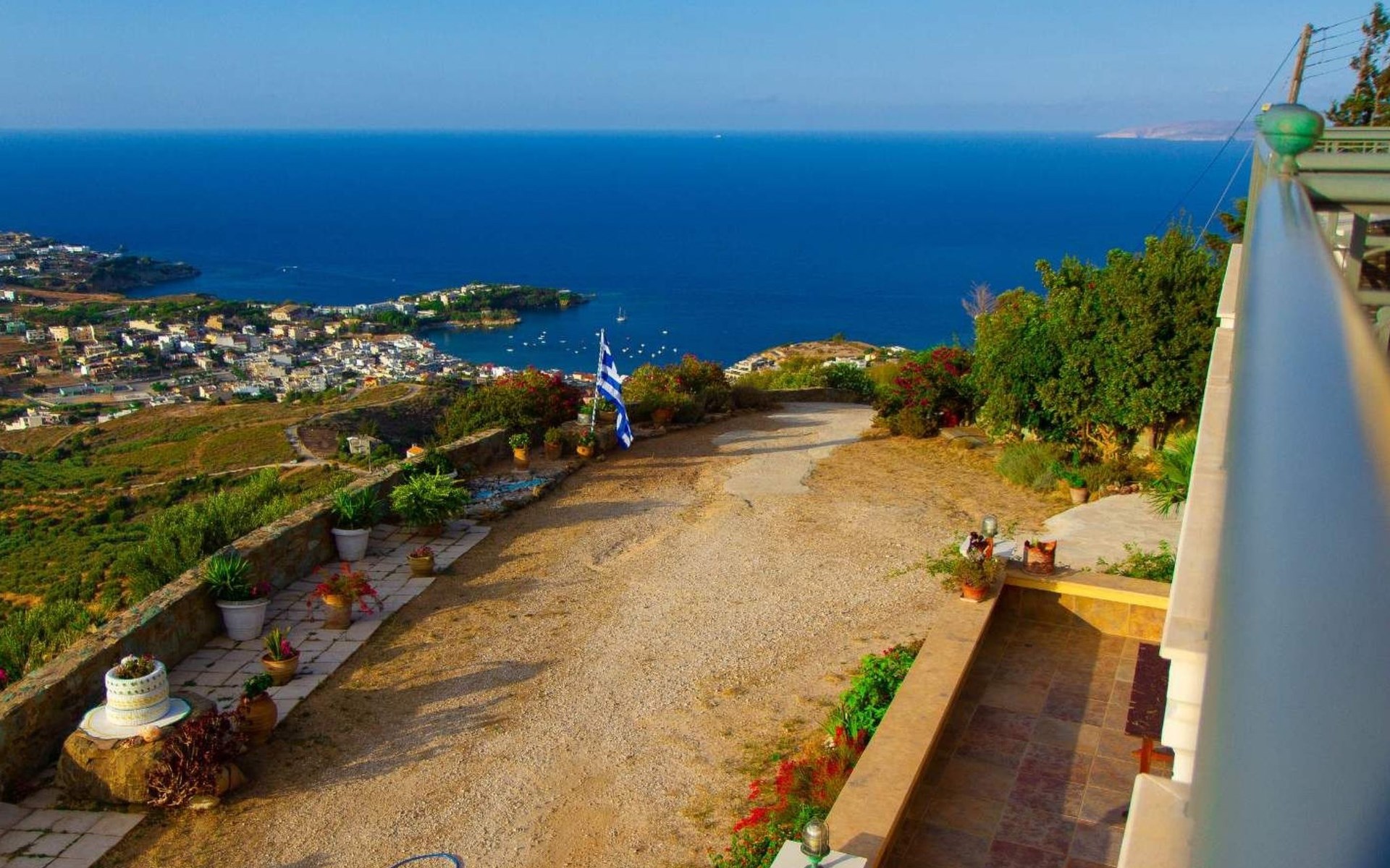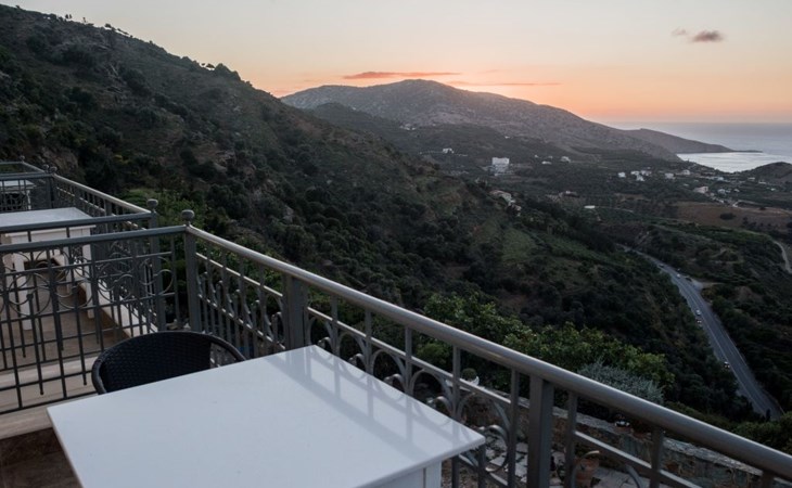 Set on the mountain side with a magnificent view of the village of Agia Pellagia (also known as Ancient Apollonia, as used to be the location of a temple dedicated to God Apollo) together with the sea makes of an idyllic vista on both sea and mountain. Road is rural and mountainous with turns and ups , perfect for hikers and nature lovers alike , be sure to have a good car though. The villa is at the end of the road with no other properties around, ensuring your recluse and an ideal escape from crowded cities and noise. Sunsets and sunrises are a spectacle to behold, and when the weather is just right, a multitude of hues awaits you in the setting sky.The apartment is at the first floor of a villa, fully decorated with 4 bedrooms, each with its own bathroom, AC in every room and fully equipped kitchen with everything you need to make lovely breakfasts and dinners alike. The floor is entirely at your disposal without any other quests to bother you in a 135 sqm2 area with satellite TV, full WiFi coverage, hair driers in every bathroom, washing machine for laundry and dishes and more. Baby crib is provided per request and the sofa in front of TV can turn to a bed to accommodate 1 more person. Entire apartment is surrounded by 4 balconies with tables and chairs for that evening tea or coffee break.The area around villa, has access to a parking lot for your own use only, private swimming pool, a perkola with a big table and long bench , charcoal BBQ and that magnificent view.The road to the mountain needs a strong car, due to the steep incline and rough terrain. Those that feel like it, you can take a hike and explore the mountains nearby and admire the view.The beach is around 6km by the car next to the small village (visible from the villa above) of Agia Pelagia. At the village you will find anything you need, from taverns, coffee shops, super markets and more. The road passes under the highway which you will use to get from and to the major city of Crete, Heraklion , which also has the biggest airport. From the highway you can access all around Crete easily. 00000688322