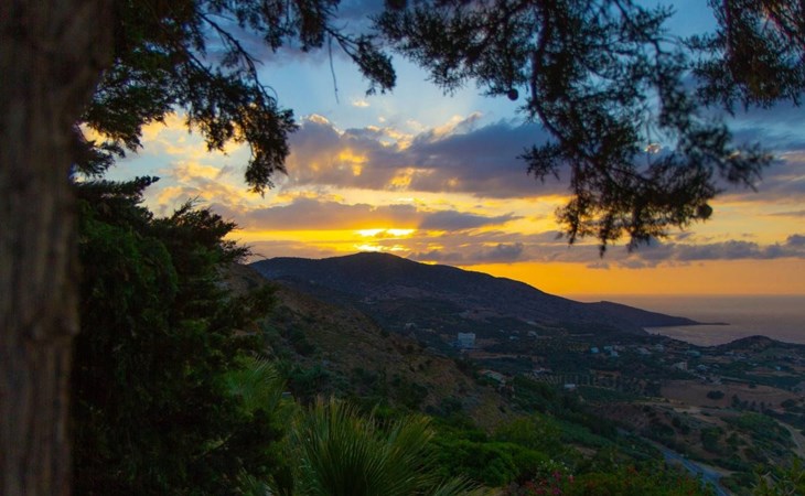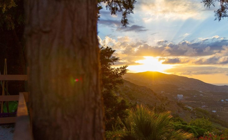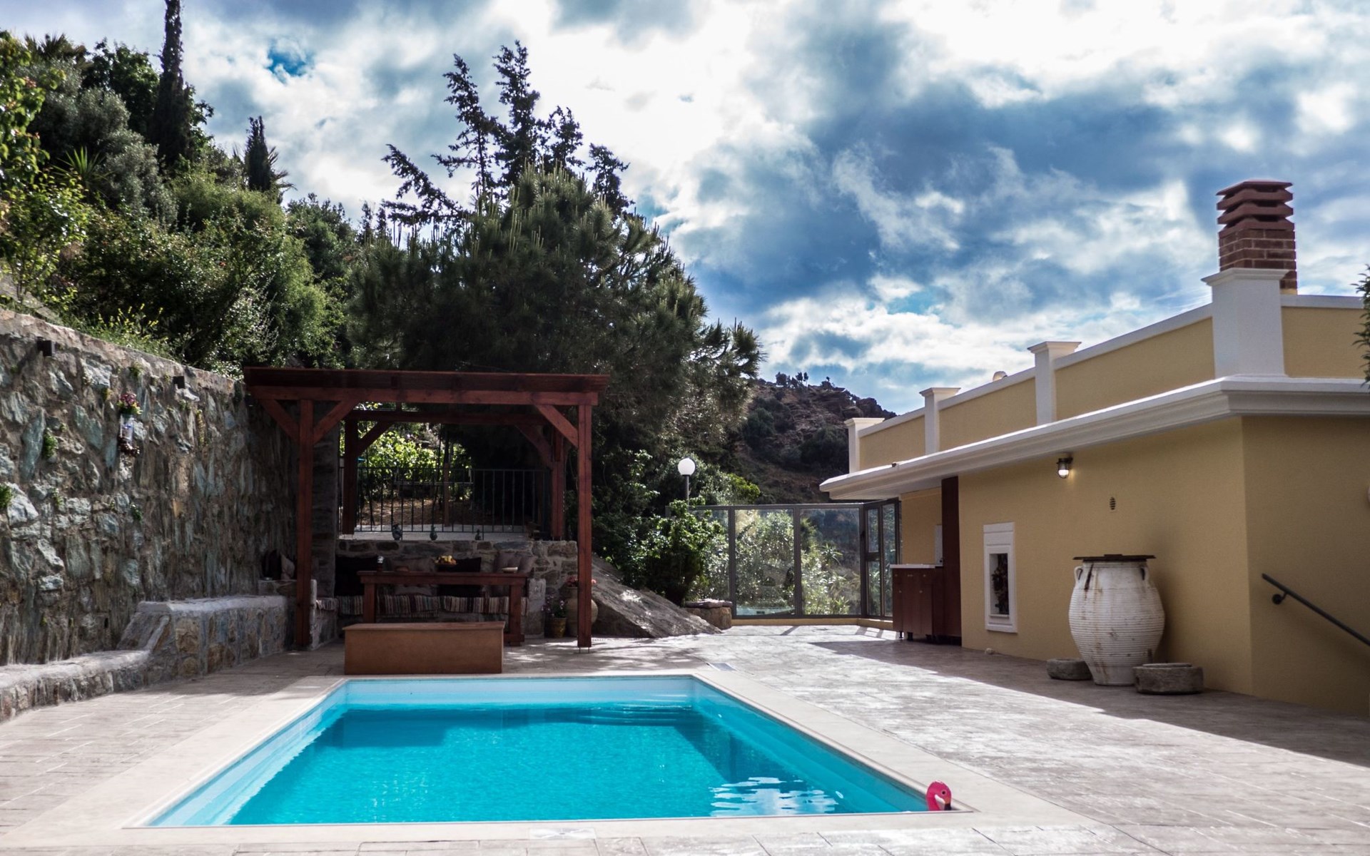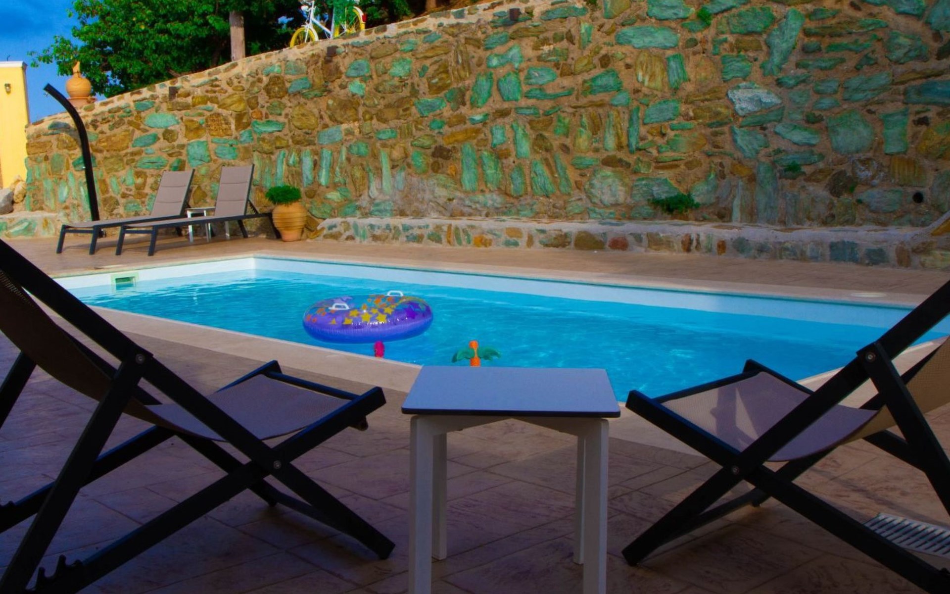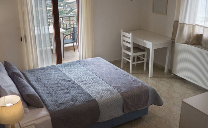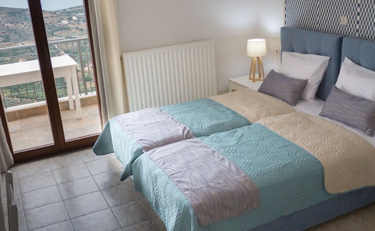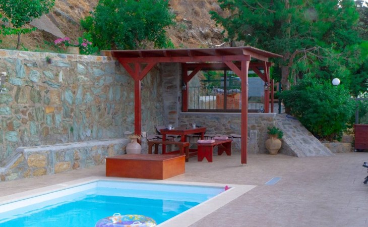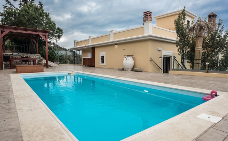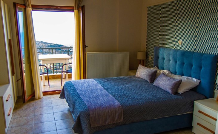 Set on the mountain side with a magnificent view of the village of Agia Pellagia (also known as Ancient Apollonia, as used to be the location of a temple dedicated to God Apollo) together with the sea makes of an idyllic vista on both sea and mountain. Road is rural and mountainous with turns and ups , perfect for hikers and nature lovers alike , be sure to have a good car though. The villa is at the end of the road with no other properties around, ensuring your recluse and an ideal escape from crowded cities and noise. Sunsets and sunrises are a spectacle to behold, and when the weather is just right, a multitude of hues awaits you in the setting sky.The apartment is at the first floor of a villa, fully decorated with 4 bedrooms, each with its own bathroom, AC in every room and fully equipped kitchen with everything you need to make lovely breakfasts and dinners alike. The floor is entirely at your disposal without any other quests to bother you in a 135 sqm2 area with satellite TV, full WiFi coverage, hair driers in every bathroom, washing machine for laundry and dishes and more. Baby crib is provided per request and the sofa in front of TV can turn to a bed to accommodate 1 more person. Entire apartment is surrounded by 4 balconies with tables and chairs for that evening tea or coffee break.The area around villa, has access to a parking lot for your own use only, private swimming pool, a perkola with a big table and long bench , charcoal BBQ and that magnificent view.The road to the mountain needs a strong car, due to the steep incline and rough terrain. Those that feel like it, you can take a hike and explore the mountains nearby and admire the view.The beach is around 6km by the car next to the small village (visible from the villa above) of Agia Pelagia. At the village you will find anything you need, from taverns, coffee shops, super markets and more. The road passes under the highway which you will use to get from and to the major city of Crete, Heraklion , which also has the biggest airport. From the highway you can access all around Crete easily. 00000688322