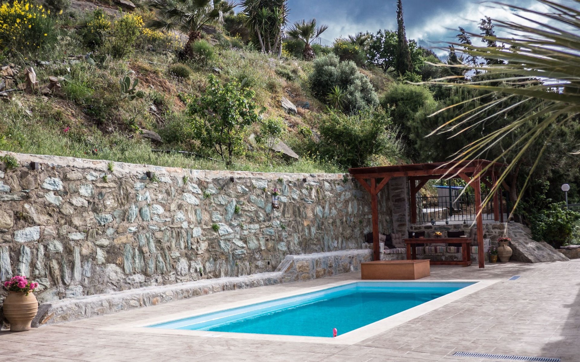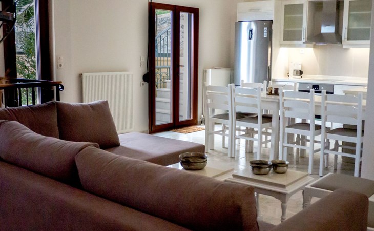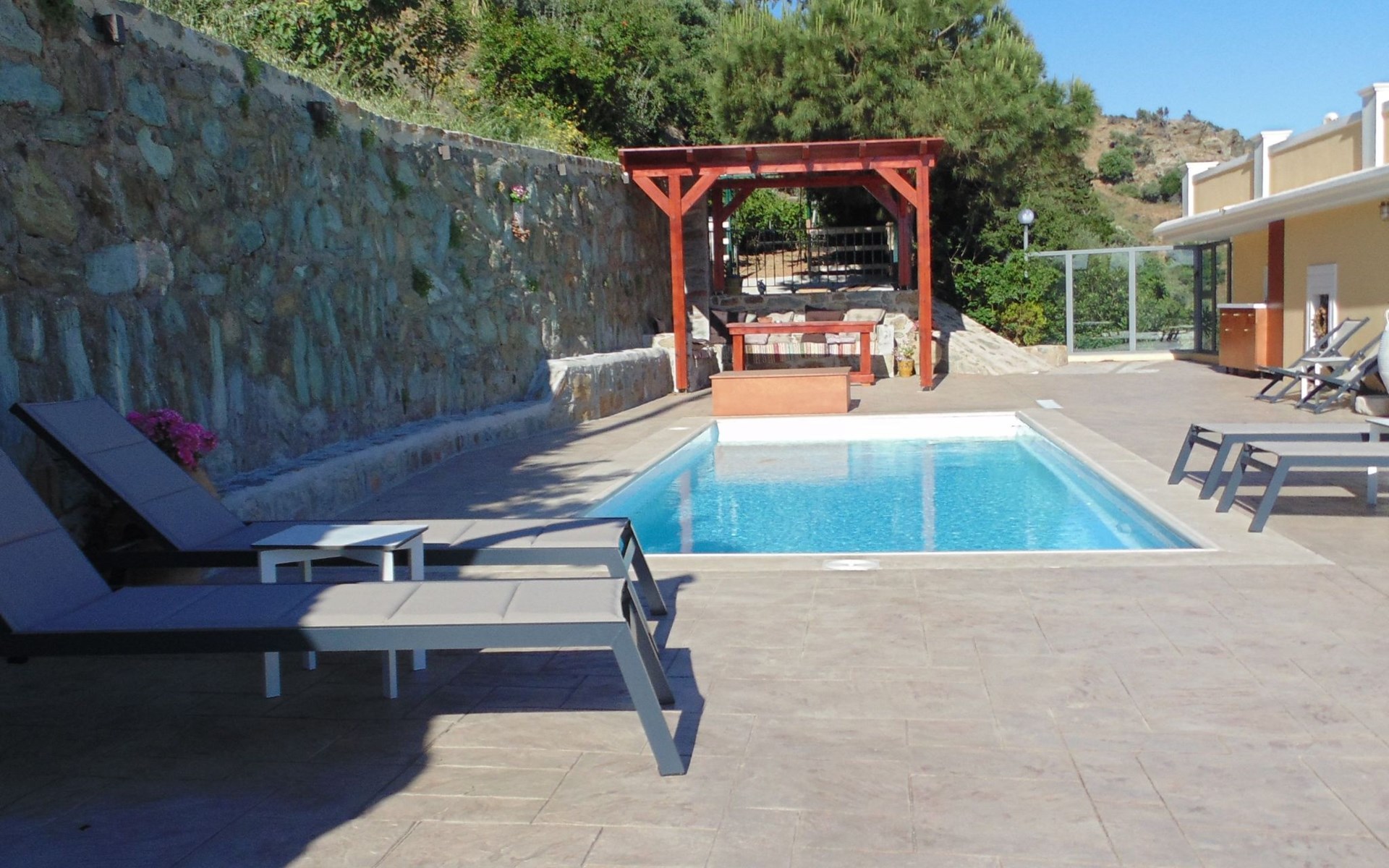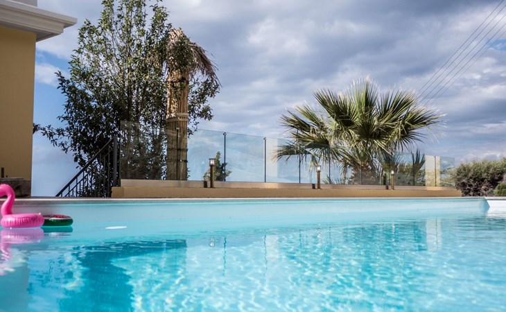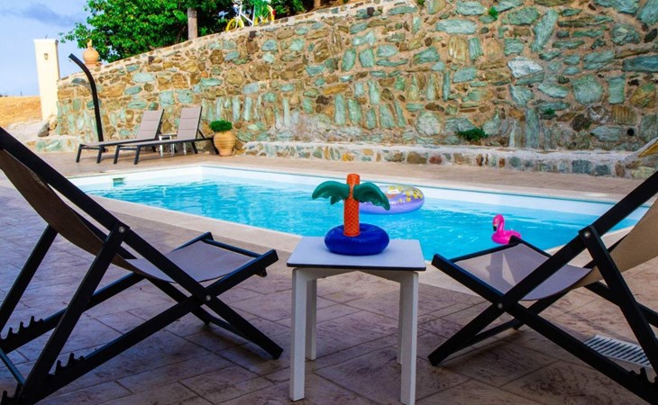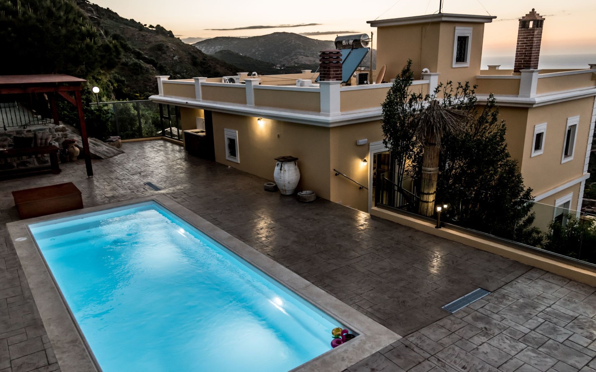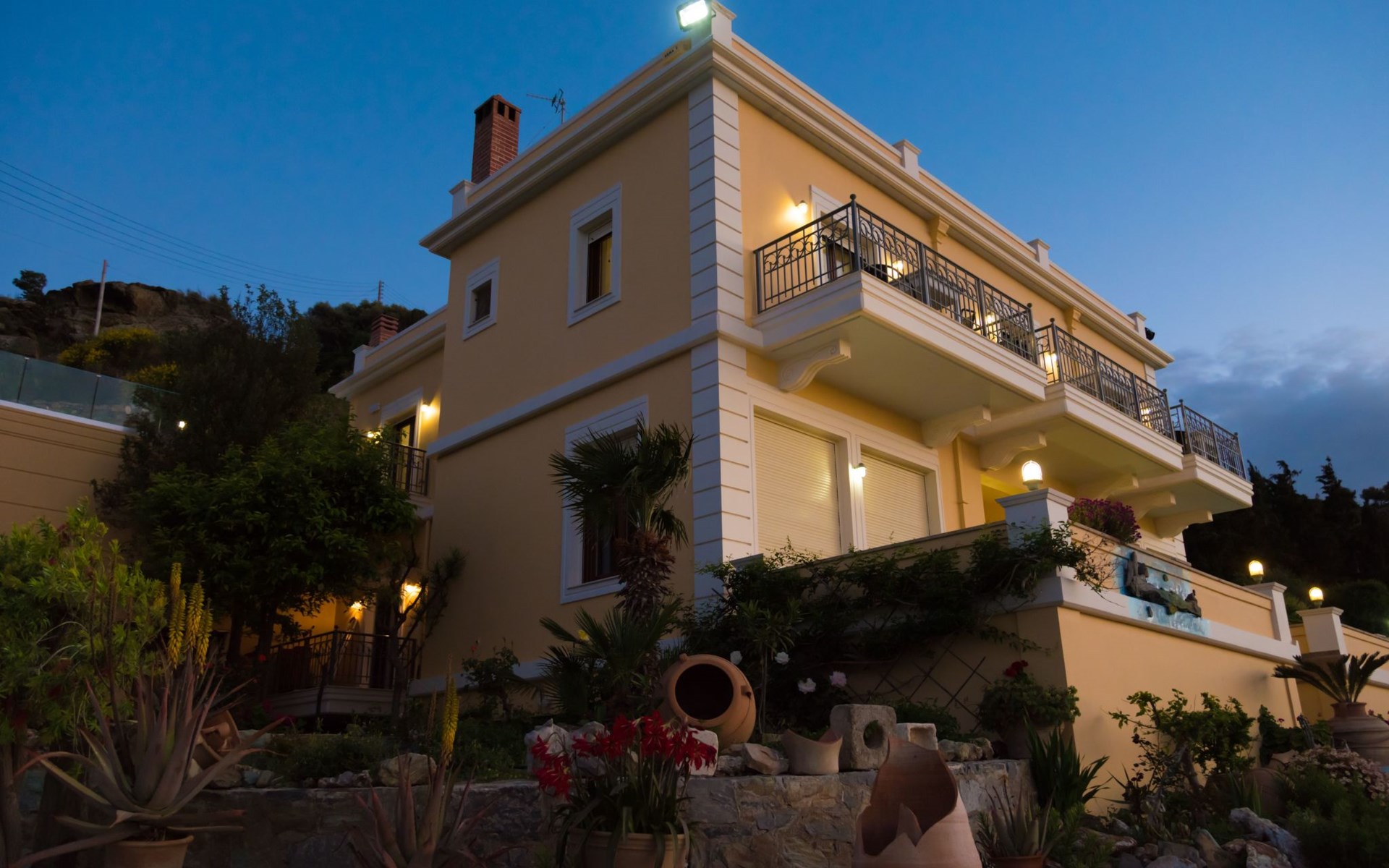 Set on the mountain side with a magnificent view of the village of Agia Pellagia (also known as Ancient Apollonia, as used to be the location of a temple dedicated to God Apollo) together with the sea makes of an idyllic vista on both sea and mountain. Road is rural and mountainous with turns and ups , perfect for hikers and nature lovers alike , be sure to have a good car though. The villa is at the end of the road with no other properties around, ensuring your recluse and an ideal escape from crowded cities and noise. Sunsets and sunrises are a spectacle to behold, and when the weather is just right, a multitude of hues awaits you in the setting sky.The apartment is at the first floor of a villa, fully decorated with 4 bedrooms, each with its own bathroom, AC in every room and fully equipped kitchen with everything you need to make lovely breakfasts and dinners alike. The floor is entirely at your disposal without any other quests to bother you in a 135 sqm2 area with satellite TV, full WiFi coverage, hair driers in every bathroom, washing machine for laundry and dishes and more. Baby crib is provided per request and the sofa in front of TV can turn to a bed to accommodate 1 more person. Entire apartment is surrounded by 4 balconies with tables and chairs for that evening tea or coffee break.The area around villa, has access to a parking lot for your own use only, private swimming pool, a perkola with a big table and long bench , charcoal BBQ and that magnificent view.The road to the mountain needs a strong car, due to the steep incline and rough terrain. Those that feel like it, you can take a hike and explore the mountains nearby and admire the view.The beach is around 6km by the car next to the small village (visible from the villa above) of Agia Pelagia. At the village you will find anything you need, from taverns, coffee shops, super markets and more. The road passes under the highway which you will use to get from and to the major city of Crete, Heraklion , which also has the biggest airport. From the highway you can access all around Crete easily. 00000688322