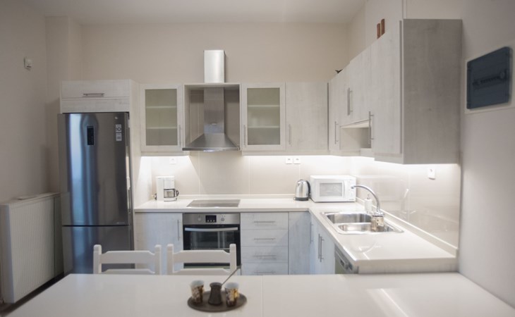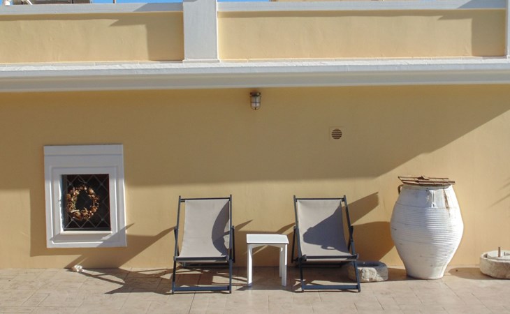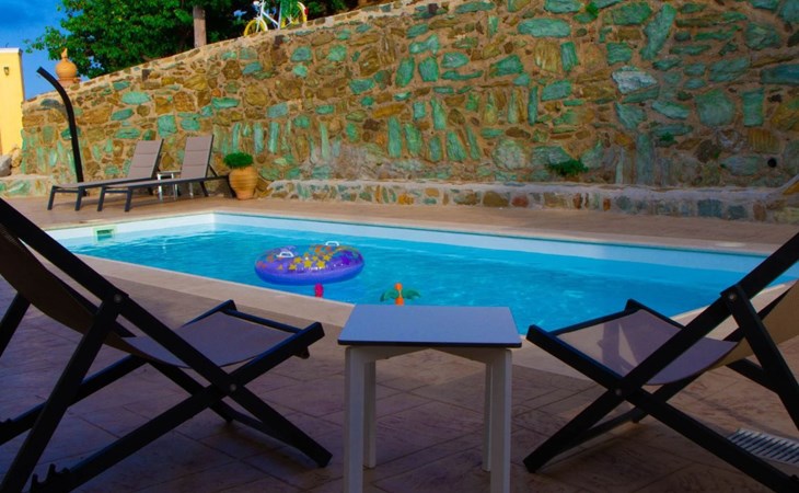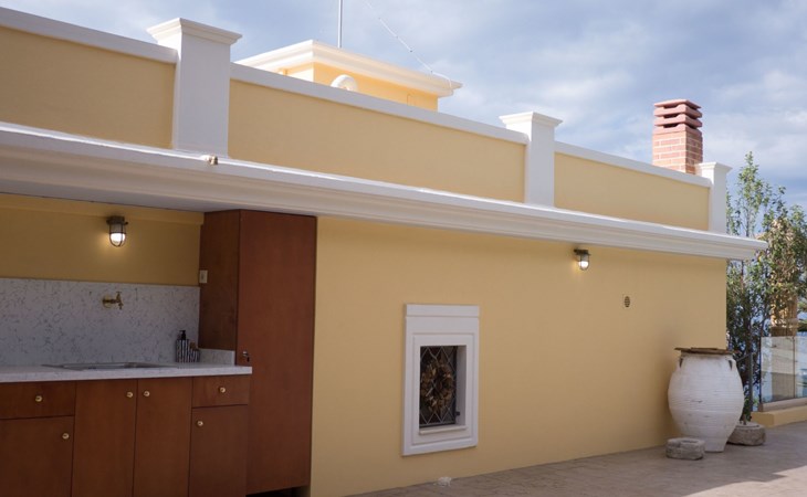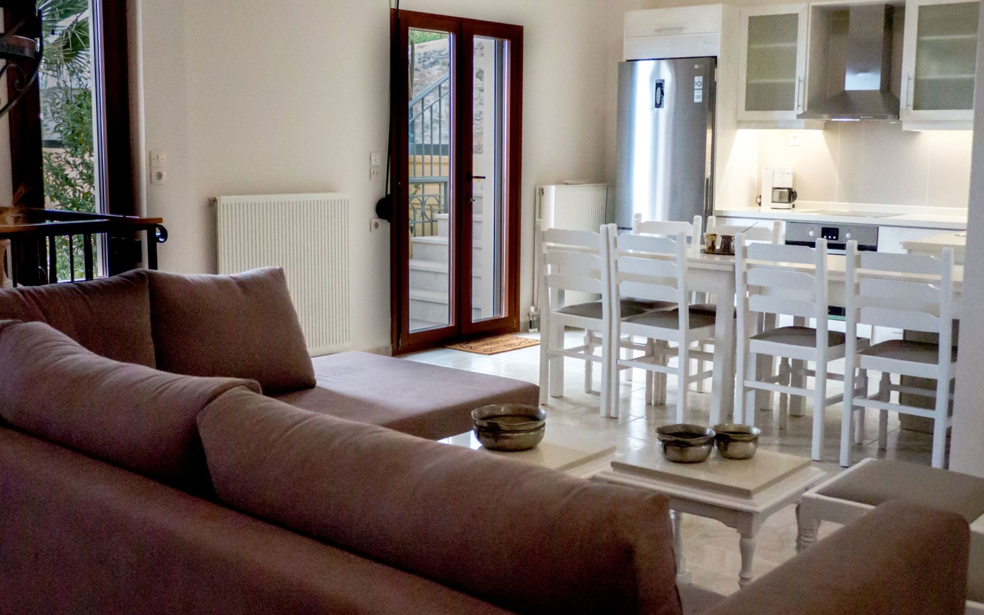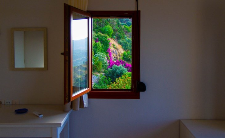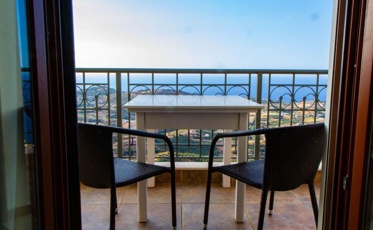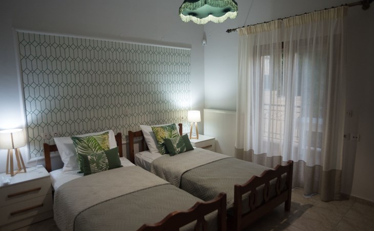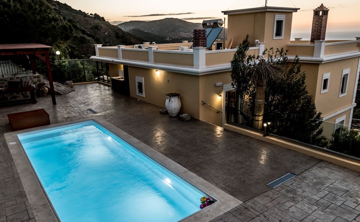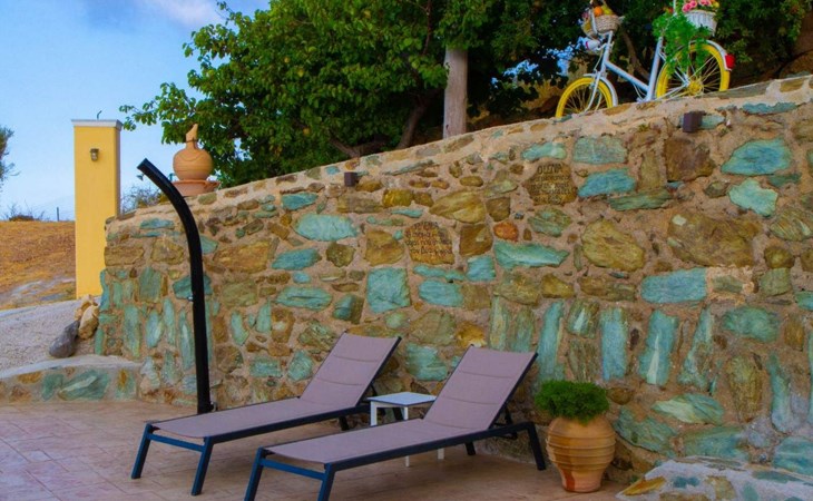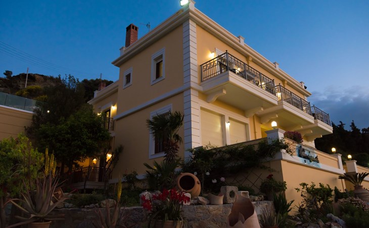 Set on the mountain side with a magnificent view of the village of Agia Pellagia (also known as Ancient Apollonia, as used to be the location of a temple dedicated to God Apollo) together with the sea makes of an idyllic vista on both sea and mountain. Road is rural and mountainous with turns and ups , perfect for hikers and nature lovers alike , be sure to have a good car though. The villa is at the end of the road with no other properties around, ensuring your recluse and an ideal escape from crowded cities and noise. Sunsets and sunrises are a spectacle to behold, and when the weather is just right, a multitude of hues awaits you in the setting sky.The apartment is at the first floor of a villa, fully decorated with 4 bedrooms, each with its own bathroom, AC in every room and fully equipped kitchen with everything you need to make lovely breakfasts and dinners alike. The floor is entirely at your disposal without any other quests to bother you in a 135 sqm2 area with satellite TV, full WiFi coverage, hair driers in every bathroom, washing machine for laundry and dishes and more. Baby crib is provided per request and the sofa in front of TV can turn to a bed to accommodate 1 more person. Entire apartment is surrounded by 4 balconies with tables and chairs for that evening tea or coffee break.The area around villa, has access to a parking lot for your own use only, private swimming pool, a perkola with a big table and long bench , charcoal BBQ and that magnificent view.The road to the mountain needs a strong car, due to the steep incline and rough terrain. Those that feel like it, you can take a hike and explore the mountains nearby and admire the view.The beach is around 6km by the car next to the small village (visible from the villa above) of Agia Pelagia. At the village you will find anything you need, from taverns, coffee shops, super markets and more. The road passes under the highway which you will use to get from and to the major city of Crete, Heraklion , which also has the biggest airport. From the highway you can access all around Crete easily. 00000688322