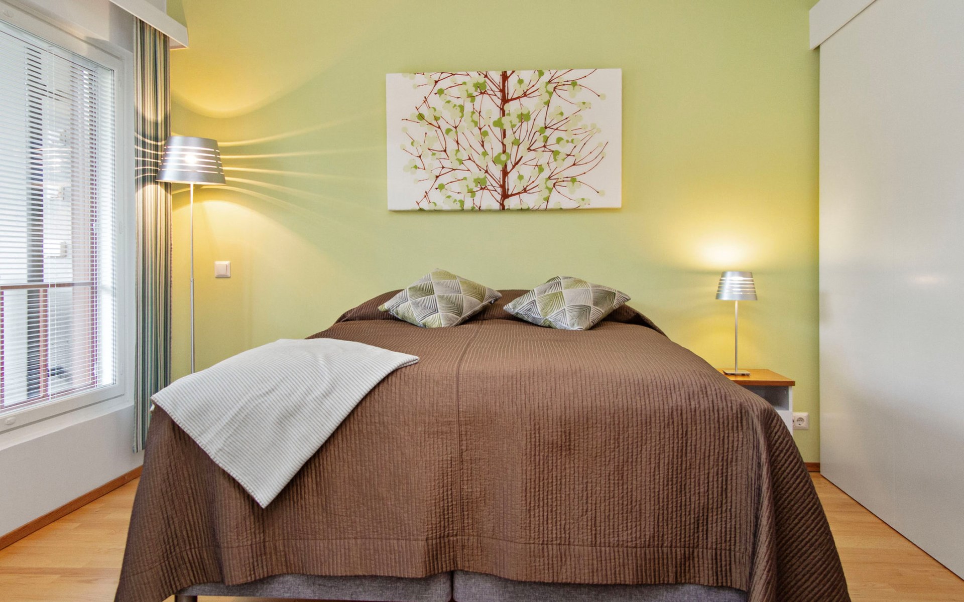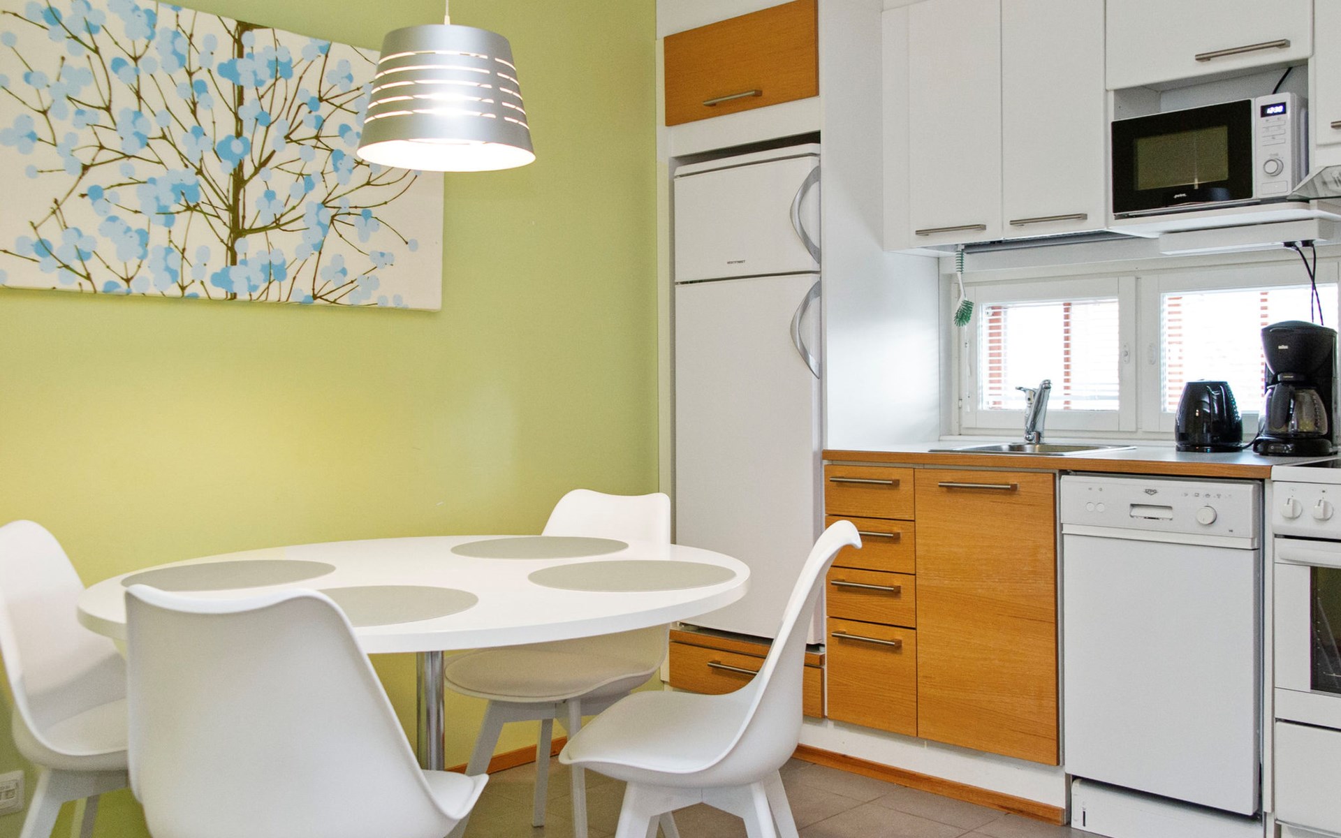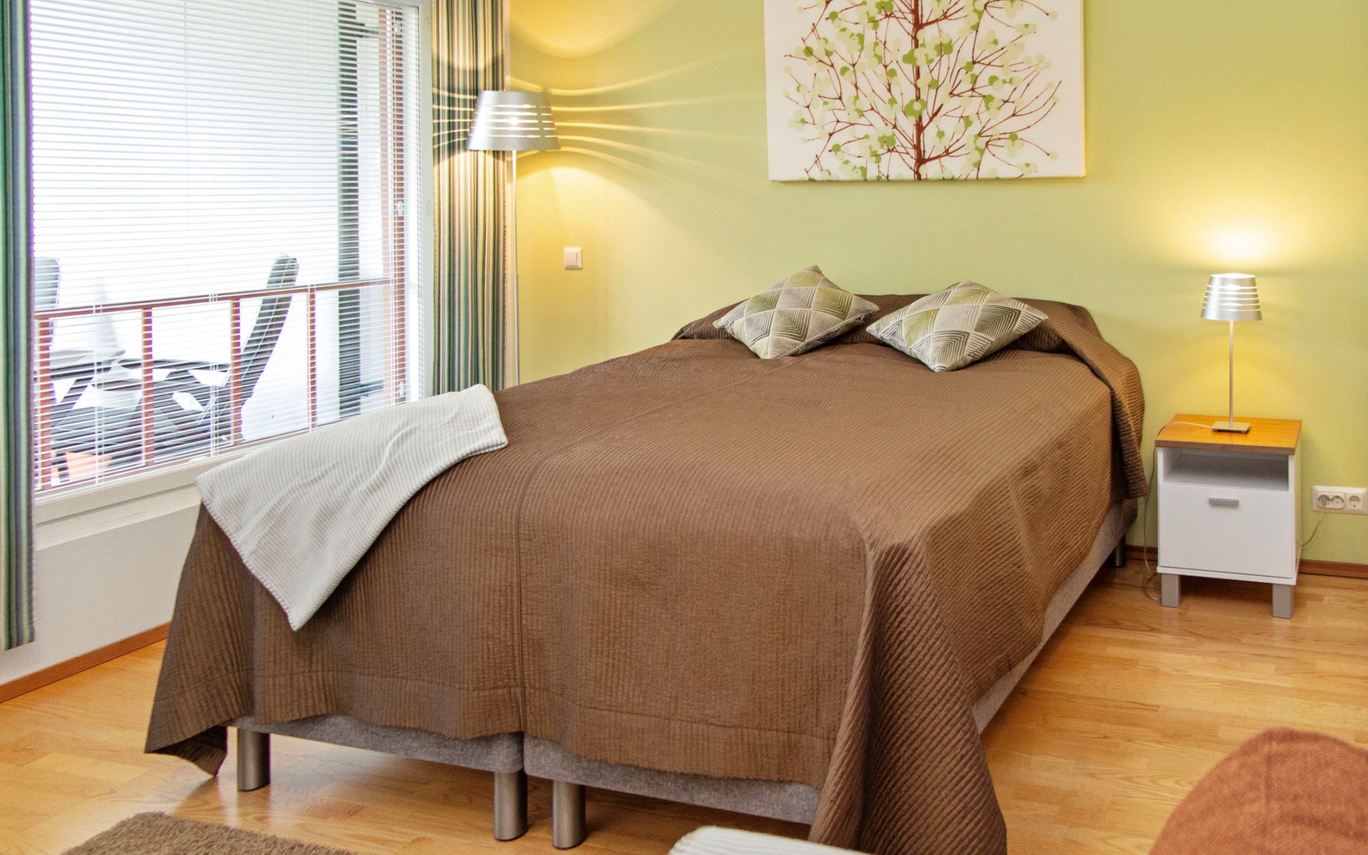 The apartment features a practical and comfortable living area with a brand new, plush double bed that guarantees a restful night’s sleep. The spacious bathroom includes two showers and your own private sauna with an electric heater – perfect for a touch of everyday luxury.