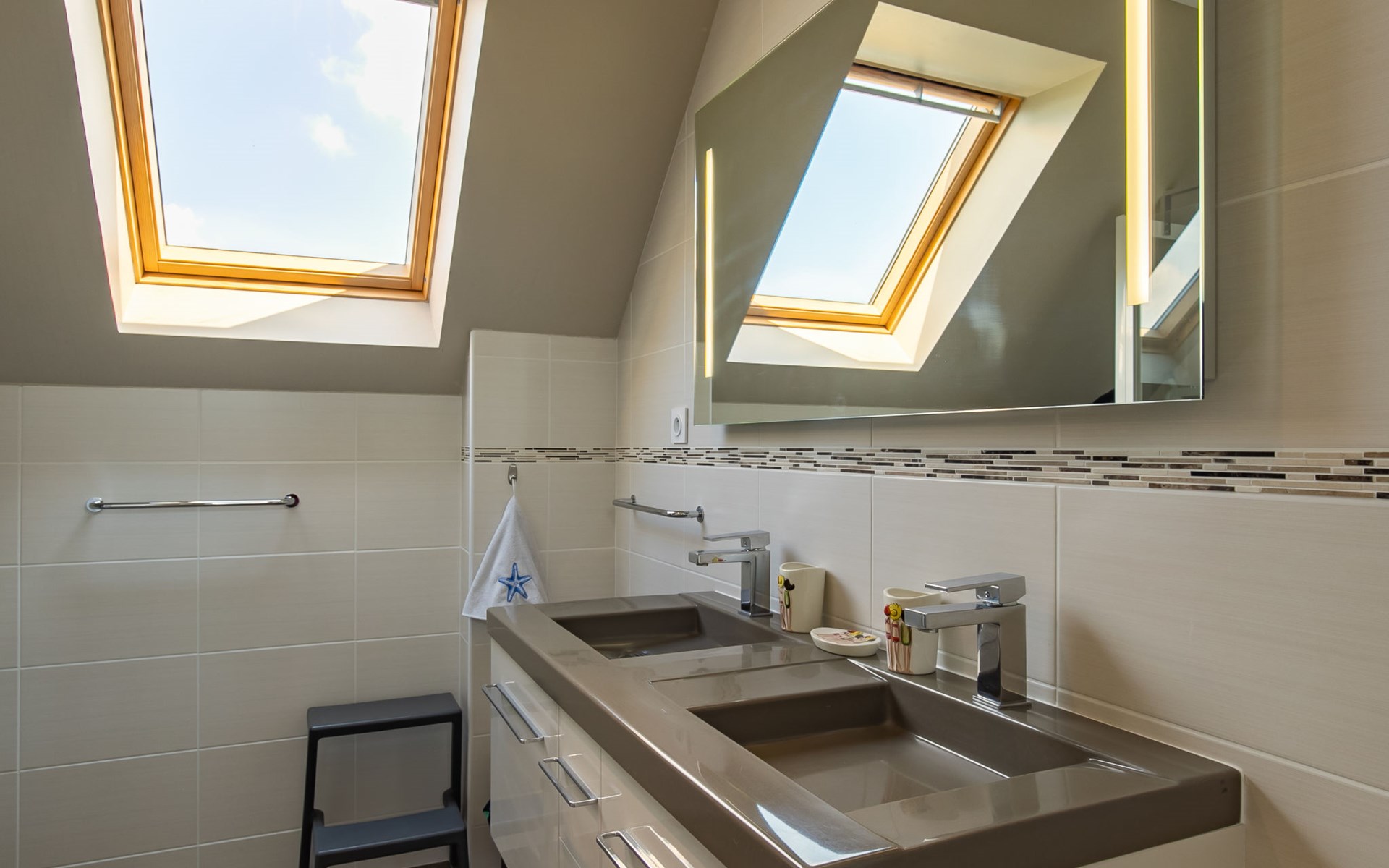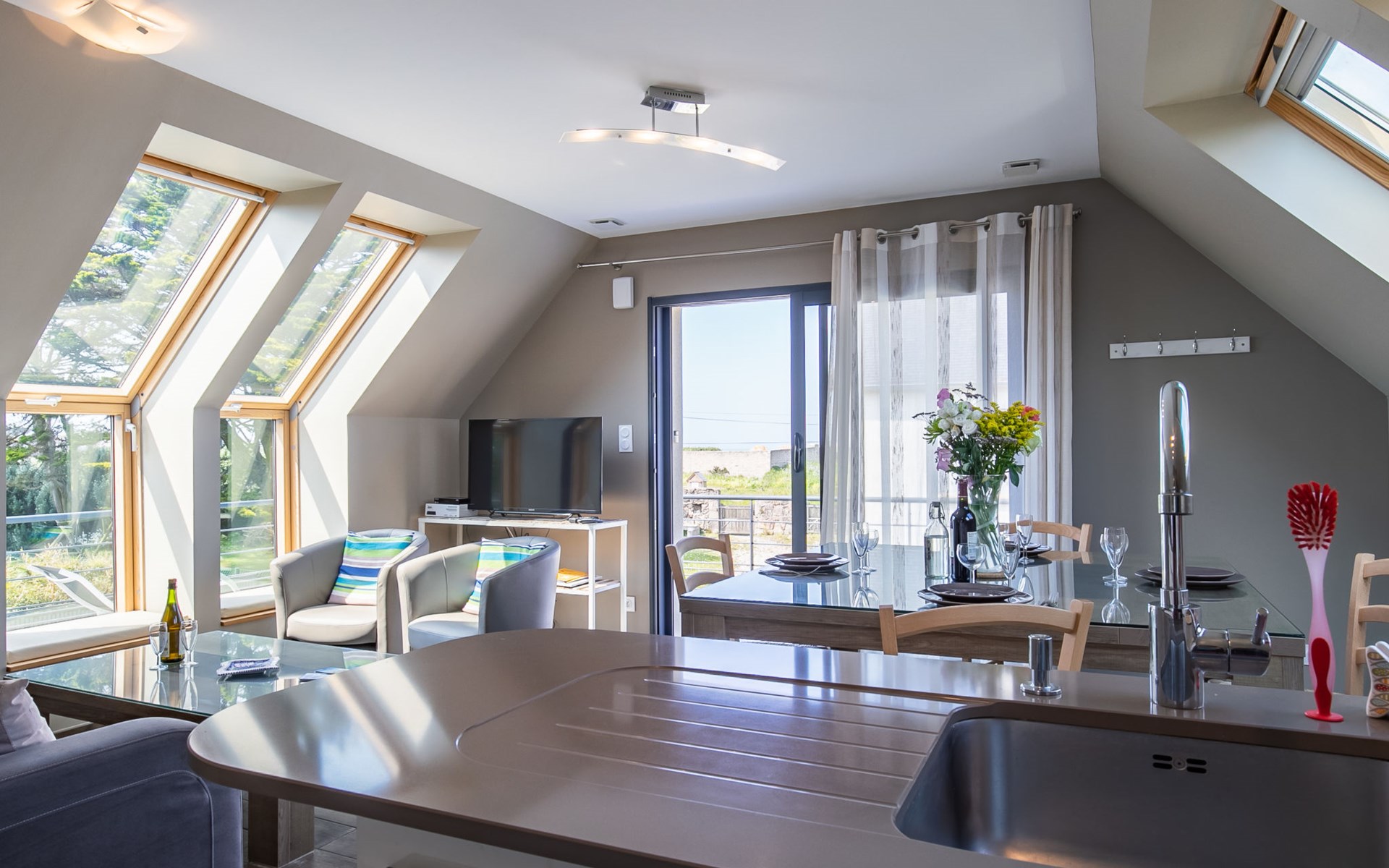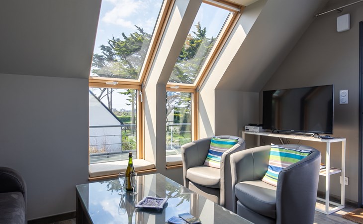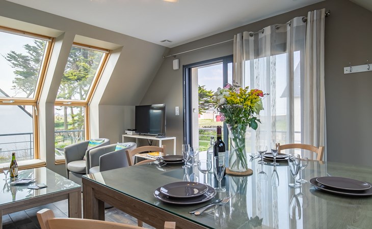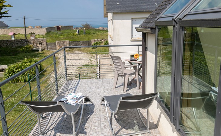 Moderne Huis met 2 woningen "Les Chardons Bleus", bouwjaar 2015. In de wijk Les Chardons Bleus, 2.3 km van het centrum van Brignogan-Plage, 5.5 km van het centrum van Kerlouan, 14 km van het centrum van Lesneven, in een woonwijk, 180 m van zee, 180 m van het strand. Voor medegebruik: terrein 900 m2, verzorgde tuin met gazon en planten, binnenplaats. Voor alleengebruik: verzorgde tuin 250 m2 (niet omheind) met gazon en planten. In het huis: bergruimte voor fietsen. Parkeerplaats (voor 2 auto's) op het terrein. Winkel 2.3 km, levensmiddelenwinkel 1.9 km, supermarkt 5.5 km, restaurant 2.3 km, bushalte "Centre Brignogan-Plage" 1.7 km, zandstrand "Les Chardons Bleus" 180 m, overdekt zwembad 15 km. Jachthaven 600 m, golfterrein (18 holes) 36 km, surfschool, zeilschool 600 m, wandelroutes 180 m vanaf het huis. Attracties in de buurt: Meneham, Kerlouan 3 km, Reserve ornithologique, Dunes de Keremma 10 km, Plouescat 18 km, Plouguerneau, Pays des Abers 20 km, Roscoff, Jardin exotique, Île de Batz 40 km, Océanopolis Brest 40 km. Wandelgebied GR34, sentier des douaniers 180 m.