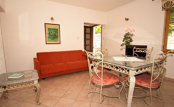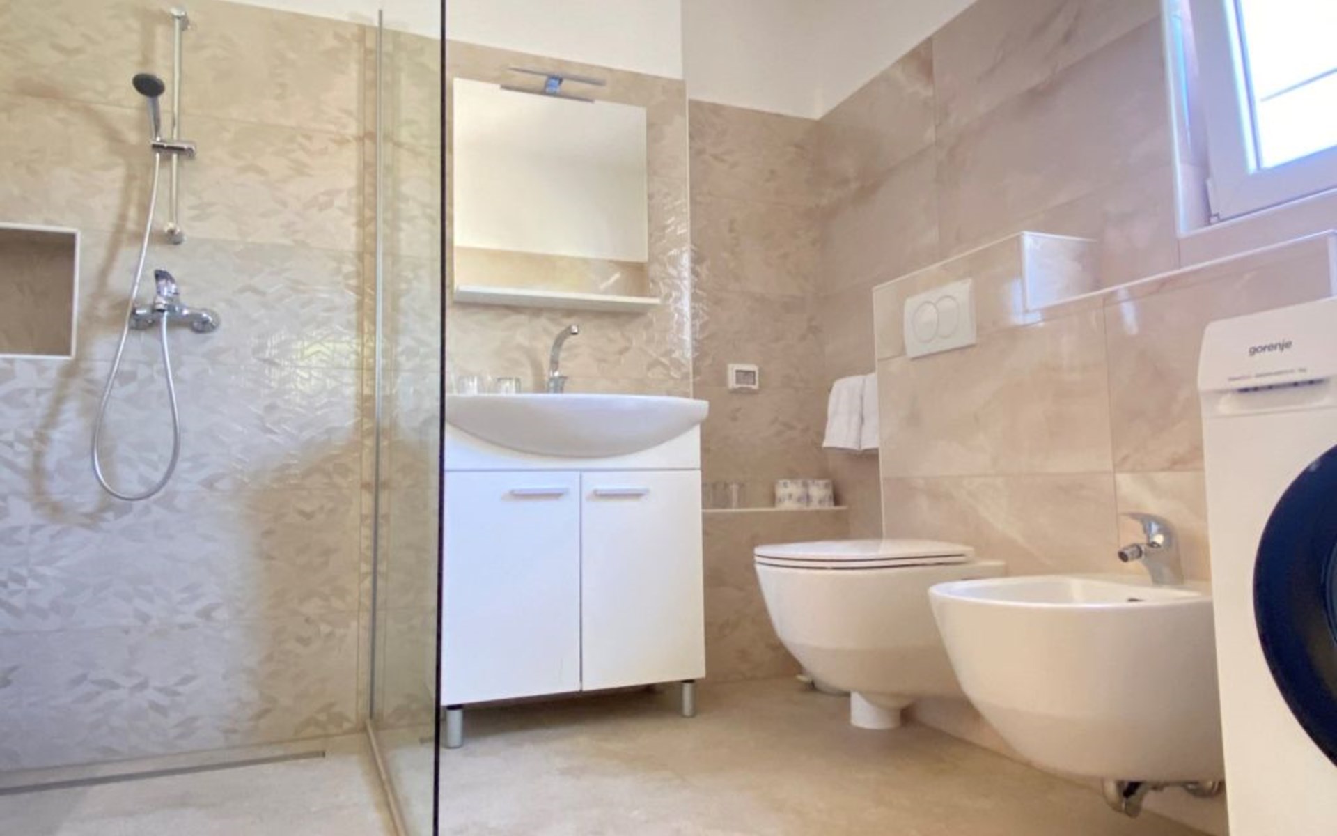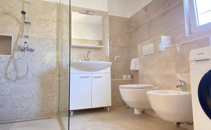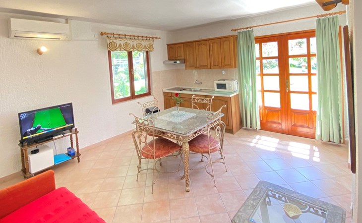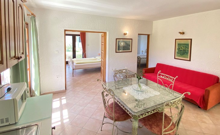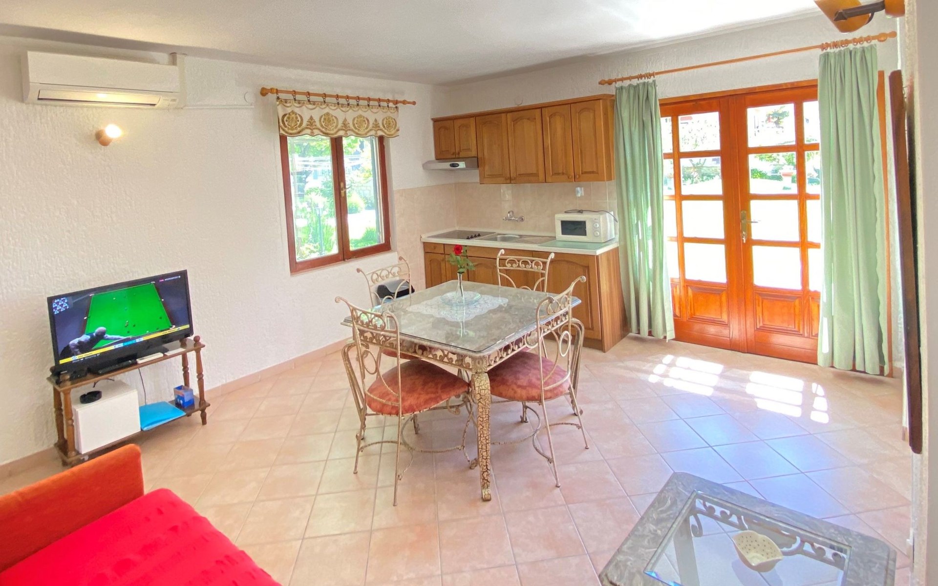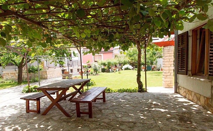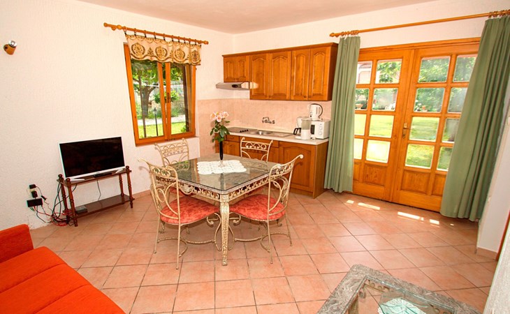 Type 3-star holiday home for 2-4 persons, 56m2 + 20 m2 terrace. Facilities: living room/kitchen, bathroom, 2 bedrooms, surrounded by private terrace with barbecue, large garden with sun lounger.Detached cottage for single occupancyGarden with sunbedsCovered car park in the gardenThe cottage for 2-4 persons has an area of 56 m2 and is about 450 m from the sea. It has air conditioning, heating, wifi, a kitchen-living room (cooker, microwave, fridge with freezer compartment, filter coffee machine) with a sofa, satellite TV and safe, two bedrooms, a newly renovated bathroom with shower, washing machine, hairdryer and a large terrace with its own barbecue.Further equipment: garden furniture, parasol, garden loungers.Smoking is permitted on the balcony, the terrace and in the garden.Funtana is a tourist resort in the central part of the west coast of Istria. The indented flat coast with its islets is particularly picturesque and therefore very attractive to tourists. Apart from a good catering offer, Funtana also has sports and leisure facilities. All types of water sports (sailing, diving, water skiing) and well-marked cycling routes are particularly popular.The small and cosy town of Vrsar, where the famous heartbreaker Casanova spent part of his time, is 3 km away and Poreč with its Euphrasian complex, declared a UNESCO World Heritage Site in 1997, is only 6 km away, as are many interesting towns such as Rovinj, one of the most romantic tourist towns on the Adriatic, or Pula with its numerous Roman monuments. The medieval town of Motovun and the artists' town of Grožnjan, as well as many other small towns in the heart of Istria, can be reached within an hour's drive.