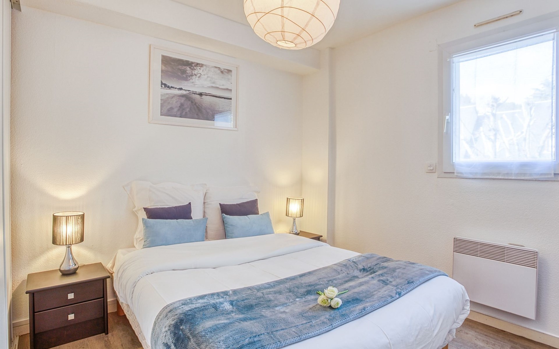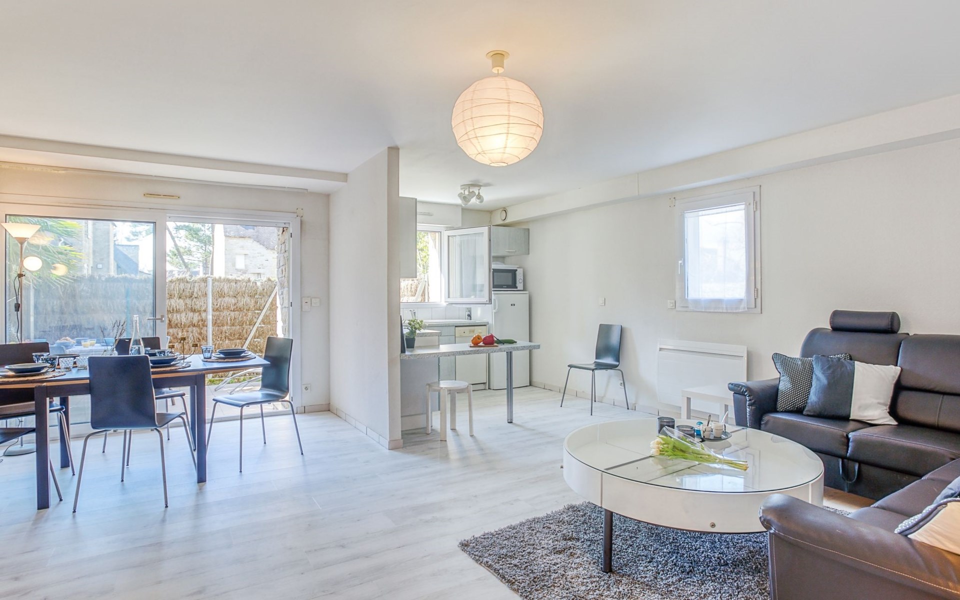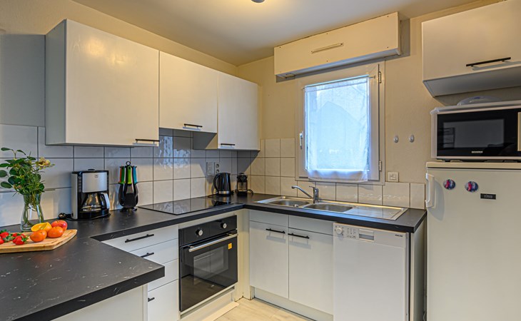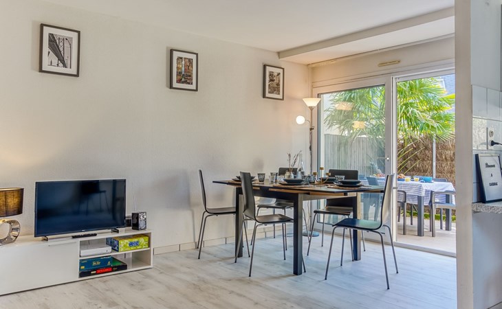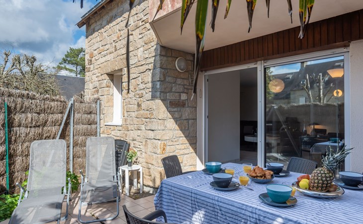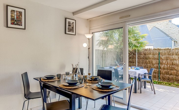 Flatgebouw "Le Parc des Druides", van 2 verdiepingen. In de plaats, rustige ligging in een woonwijk, 250 m van zee, 250 m van het strand. Winkel 900 m, supermarkt 200 m, restaurant 500 m, bakkerij 500 m, fietsverhuur 300 m, station 15 km, zandstrand "Grande Plage" 250 m, thermaalbad "Thalazur Carnac" 1.2 km. Golfterrein (18 holes) 12 km, zeilschool 1.4 km, tennis 900 m, manege 4 km. Attracties in de buurt: Alignements de Carnac 3.5 km, La Trinité sur Mer 4 km, Presqu'ile de Quiberon 15 km, Vannes 35 km, Lorient 52 km. Wandelgebied Golfe du Morbihan.