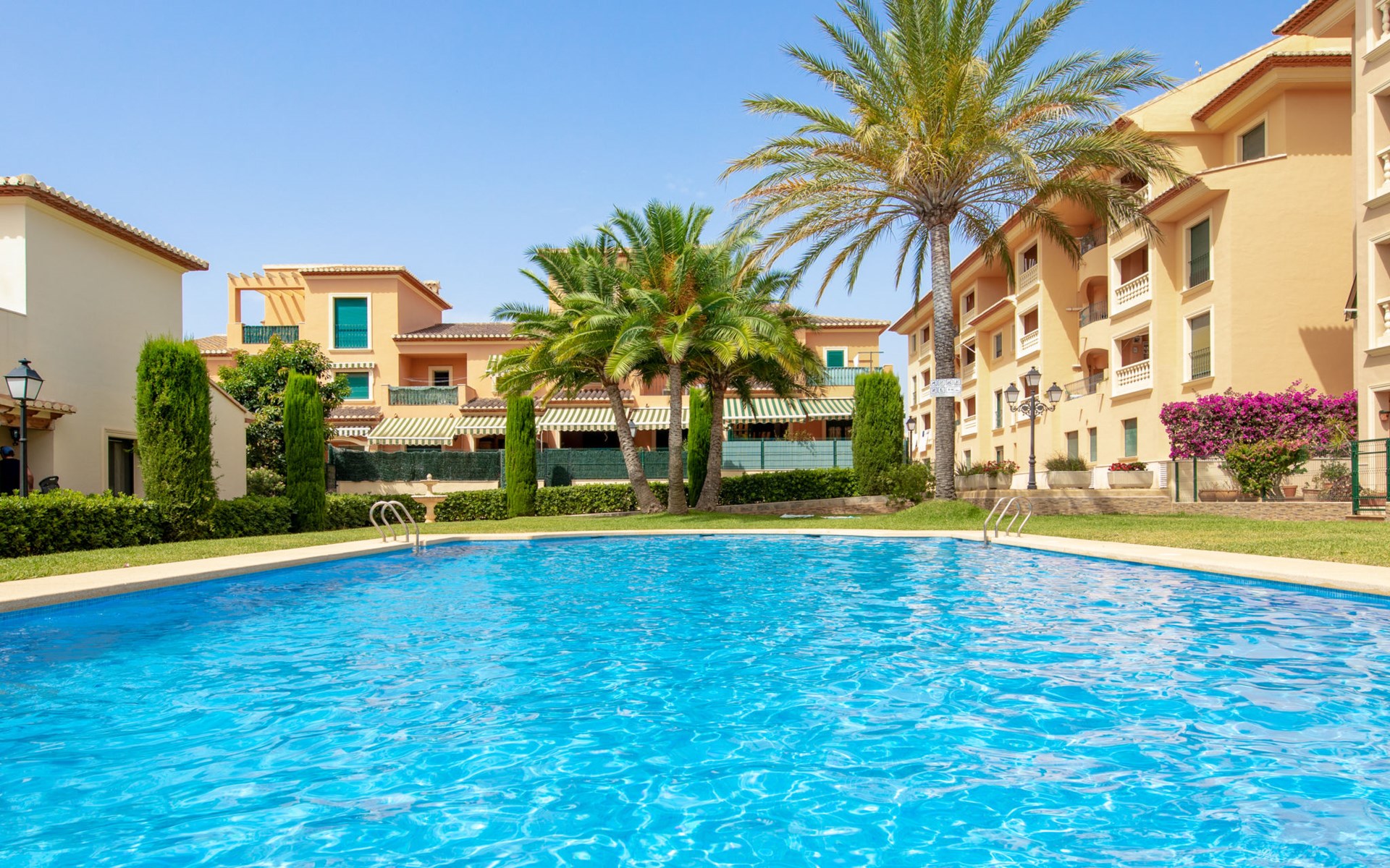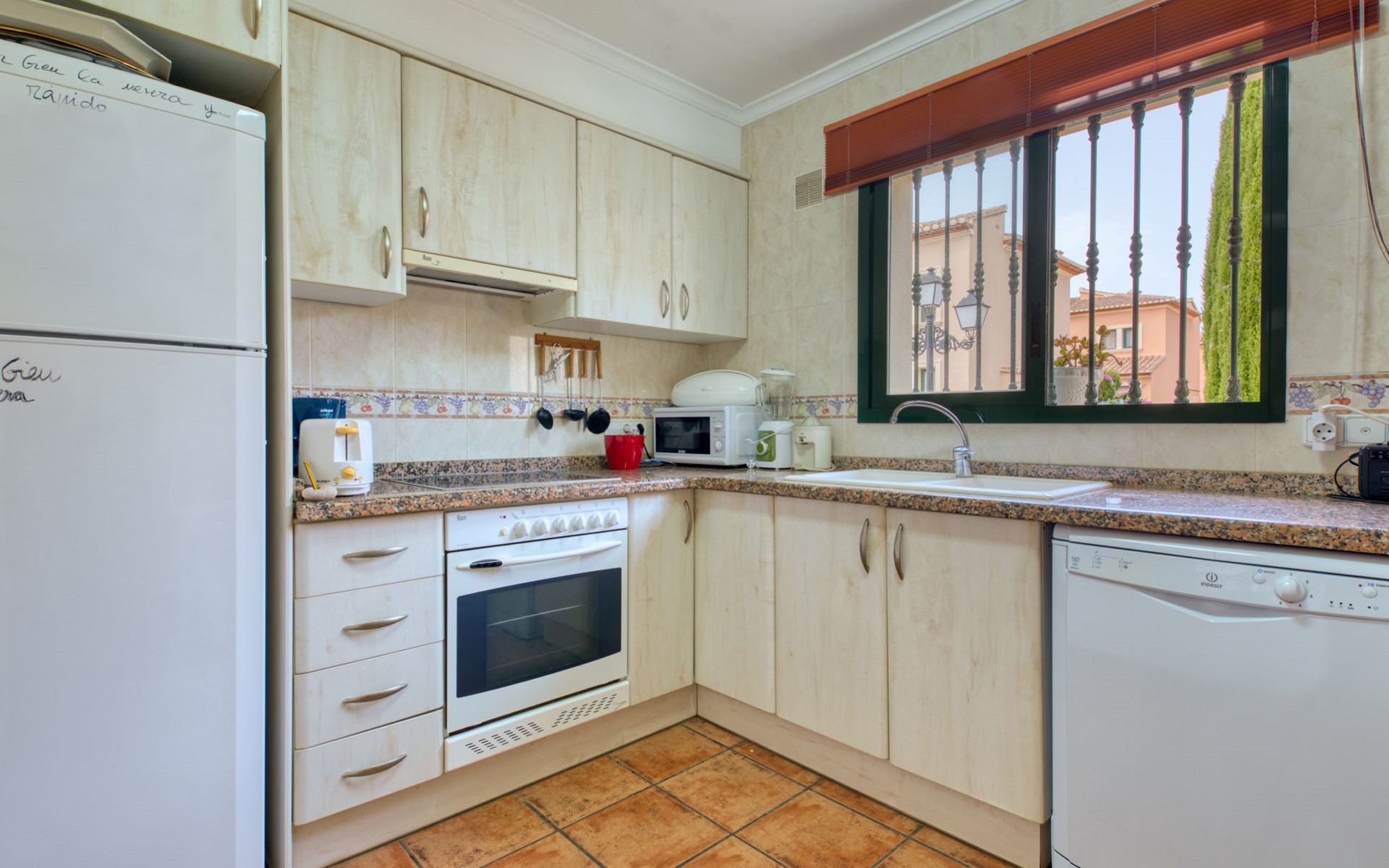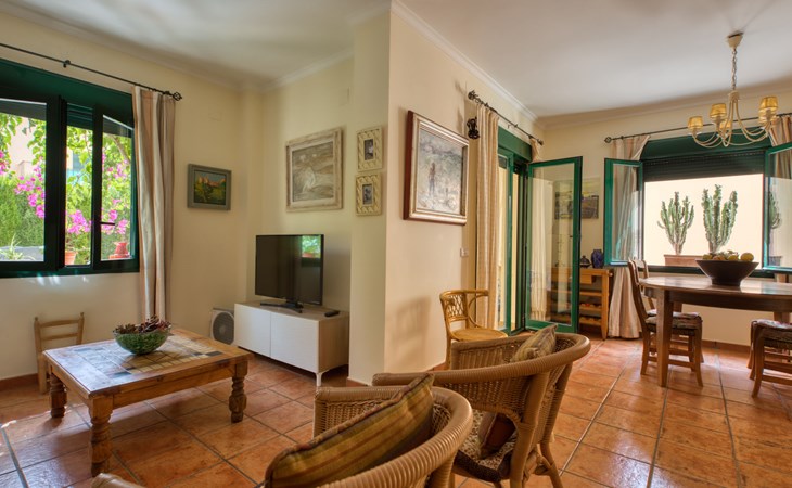 Mooi, gezellige residentie "Jardines del Mar". In de wijk Puerto, centrale, rustige ligging, 600 m van zee. Voor medegebruik: tuin (omheind) met gazon en bomen, ligweide, openluchtzwembad (8 x 20 m, 110 - 180 cm diepte, seizoensgebonden beschikbaarheid: 01.Jan. - 31.Dec. openingstijden zwembad: 09:00-15:00 en 17:00-21:00) met trap. Kinderzwembad, buitendouche. Voor alleengebruik: terrein met gazon 50 m2 planten. Tuinmeubelen. In het huis: sauna, fitnessruimte. Gemeenschappelijke garage nr. 51. Winkel 390 m, levensmiddelenwinkel 380 m, supermarkt 400 m, restaurant 370 m, bushalte 500 m, zandstrand "Arenal" 3 km kiezelstrand "Grava" 700 m. Jachthaven 1.5 km, surfschool 800 m, tennis 2.5 km. Groepen jongeren uitsluitend op aanvraag. Squash (extra). 's Winters: overdekt en verwarmd zwembad (extra).