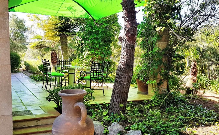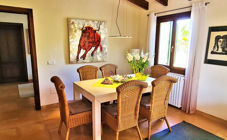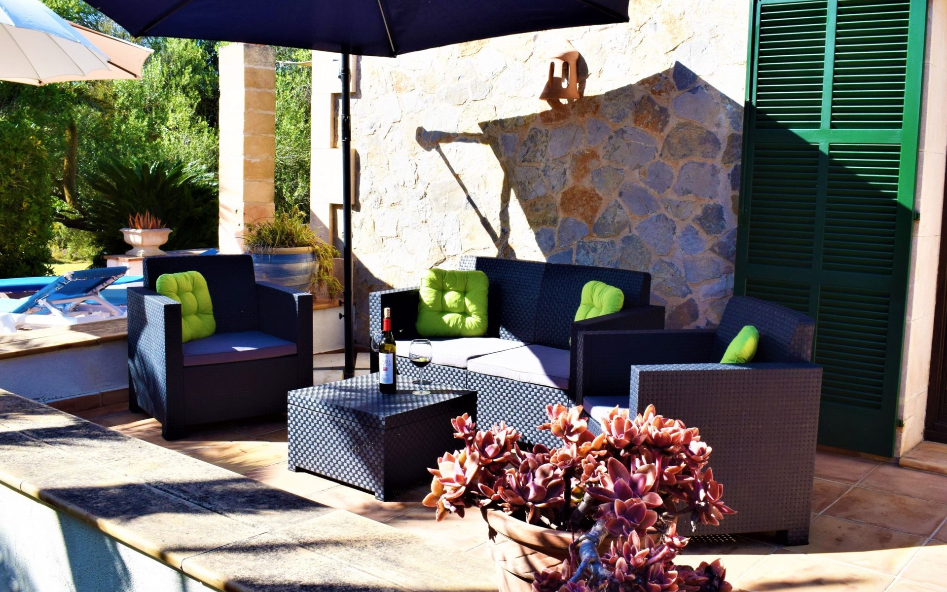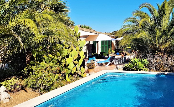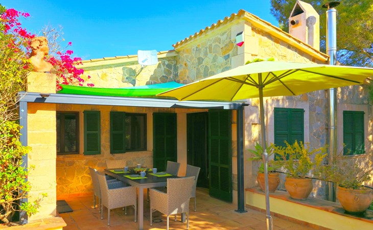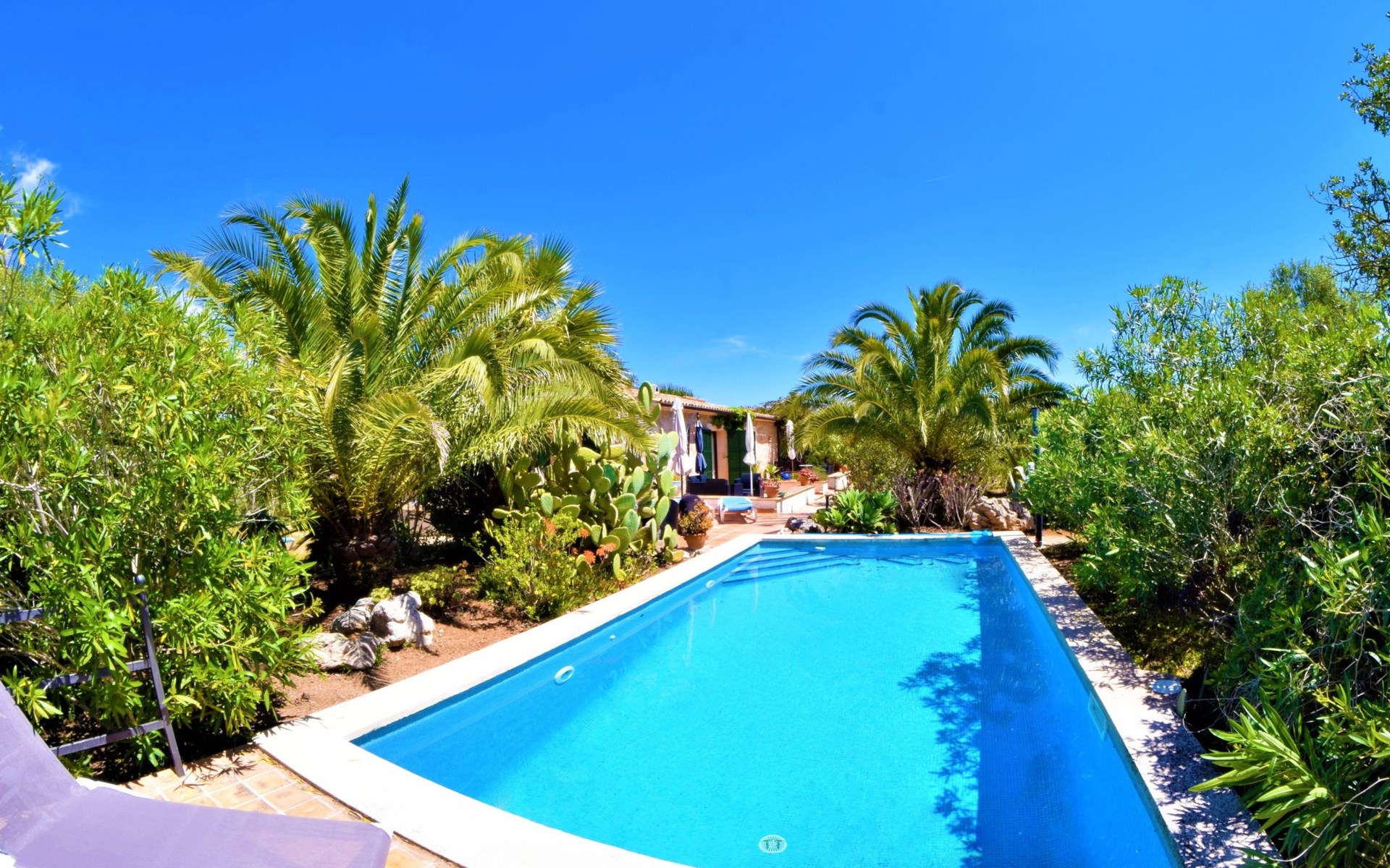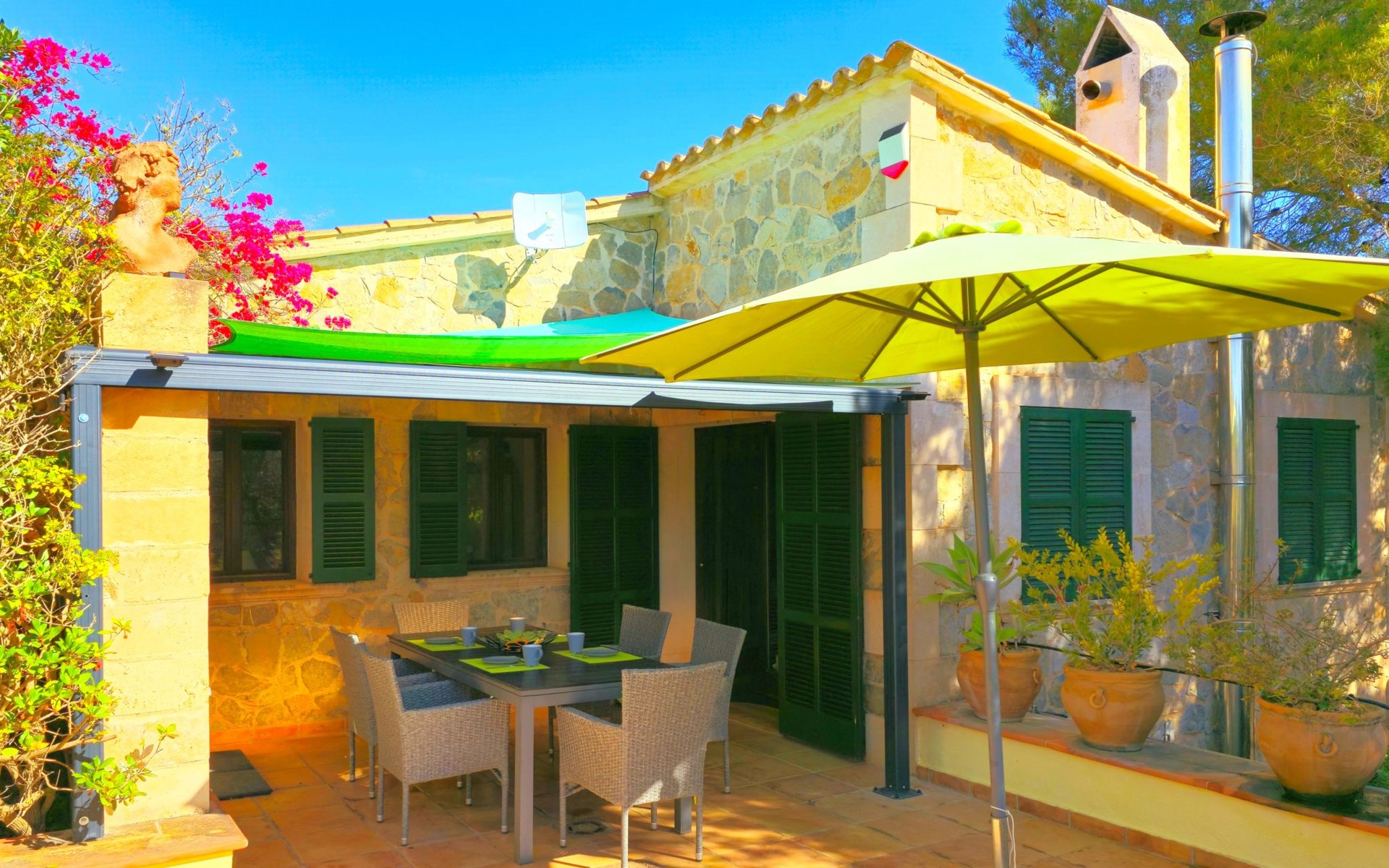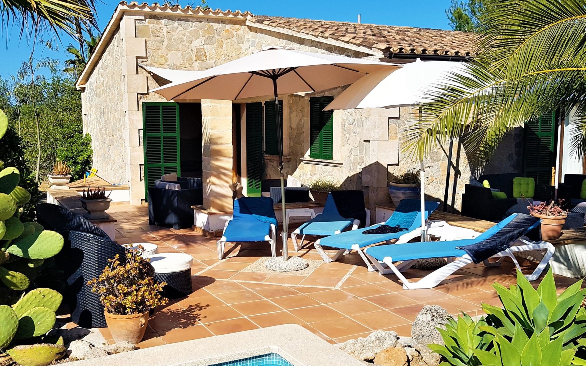 Idyllic, spacious and quietly situated finca with many terraces near ArtáThis beautiful, rural finca, with views of the castle of Capderpera, not far from the most beautiful beaches in Mallorca, is situated on a 7100 m² plot, only approx. 5 km from Artá. The medieval pilgrimage church of Sant Salvador on the top of the hill of Artá dominates the townscape and is visible from afar. On Tuesdays, the beautiful weekly market invites you to shop and stroll around. The historic old town of Artá with its numerous shops, restaurants and bars invites you to go out, shop and stroll around. The well-stocked supermarkets and small shops in the town offer all the daily necessities. Gentle green hills characterise the typical Mediterranean coastal landscape of the east of Mallorca. The numerous small white and fine sandy beaches on the east coast, which slope gently into the sea, can be reached quickly by car. There is something for every taste here, from very lively with a good infrastructure to secluded little bays that are often deserted even in the high season. The is quietly situated and lies in the centre of the 3 beautiful golf courses of Capdepera, Canyamel and Son Servera.Your holiday begins when the automatic gate of the 7,100 m² plot opens and you drive along the small gravel path to the finca. The entire property is characterised by typical Mediterranean plants. You can explore and enjoy the Mallorcan countryside throughout the property, surrounded by numerous different palm trees, fig trees, almond trees, oleander bushes and much more. There are a total of 7 terrace areas around the entire house.You can expect around 200 m² of lovingly designed space on one level. Many small accessories, the light-coloured walls, the terracotta tiles and the tasteful furniture ensure a pleasant feeling of living in light-flooded rooms. All rooms are accessed centrally via the entrance and hallway area. In addition to the three bedrooms with double and single beds and fitted wardrobes, these include a bathroom with en-suite shower, a bathroom with en-suite bath, a guest WC and a spacious living/dining area with adjoining kitchen. The kitchen is fully equipped with a dishwasher and there is a washing machine with clothes horse and ironing board in the basement. The three bedrooms, designed as small suites (master suite with integrated bathroom and large double bed (1.80 x 2.00 m), a suite with integrated shower room and large double bed (1.60 x 2.00 m) and a further suite with separate WC and 2 (joinable) single beds (each 0.90 x 2.00 m), offer sufficient individual space and personal retreat options and each have their own terrace with direct access to the pool and the Mediterranean garden. The two bedrooms with double beds also have Smart TVs.The spaciousness of the finca is perfect for anyone who wants to spend a harmonious holiday alone or with their children, with their parents or with friends. The 2 additional sun and shade terraces in the living/dining area with barbecue, electric grill, lockable patio cover and further terraces in the pool area offer plenty of space for socialising. The 8 x 4 metre pool with easy access via steps and outdoor shower invites you to take a refreshing dip. An automated pool control system ensures consistently good water quality. Depending on your preference, you can choose between sunny and shady spots on the many terrace areas and relax from the stresses of everyday life. In the hot season, the Persians protect all rooms from the sun's rays and still provide pleasant fresh air. The bedrooms are also equipped with air conditioning. The cosy open fireplace in the living/dining area and the oil central heating in all rooms ensure a comfortable atmosphere in the cooler seasons.In addition to the beautiful town of Artá, the well-known tourist resort of Cala Radjada is only approx. 5 km away and offers numerous shopping facilities (Lidl, Mercadona, Müller) as well as a beautiful harbour and tourist centre with numerous bars, restaurants and cafes. There is a market in Cala Radjada on Saturdays. The tourist town of Canyamel is only about 3 km away and also offers many possibilities and direct access to the beach and the sea. The well-known restaurant Proxada de Sa Torre (famous for its delicious suckling pig) is only approx. 1.5 km away. The famous caves of Artá are approx. 7 km away and are a popular excursion destination. The historic castle of Capdepera, which can be seen directly from the finca, is also only 6 km away. There is a market in Capdeapera on Wednesdays.The access road via the dirt track is a little bumpy, but guarantees a little more peace and quiet. Wifi and German satellite TV are available free of charge. The entire house, the grounds and the pool are for your exclusive use. Baby cots can be provided and a baby high chair is available. ESFCTU00000702300010218800000000000000000000ETV/1