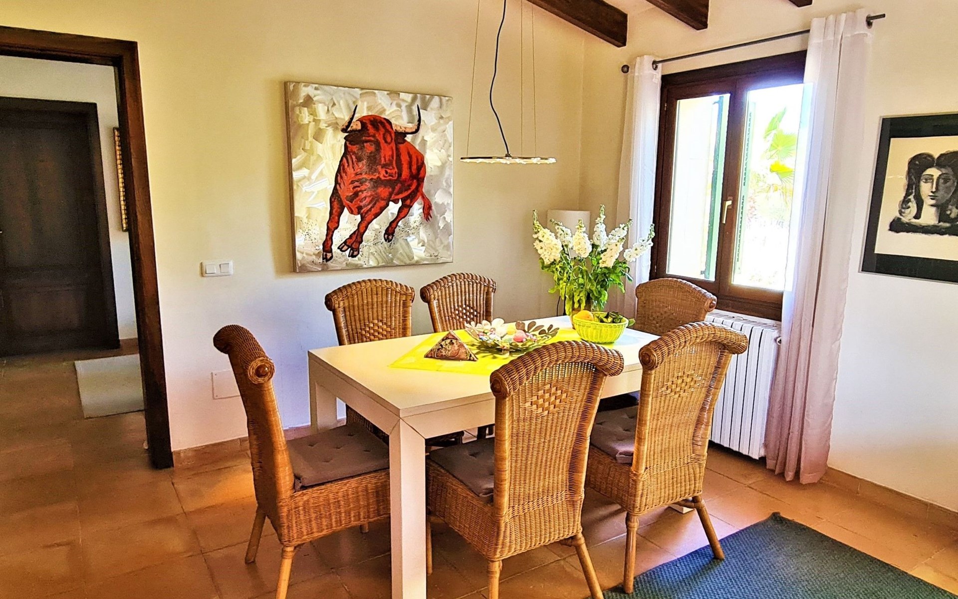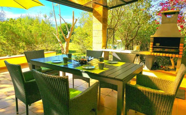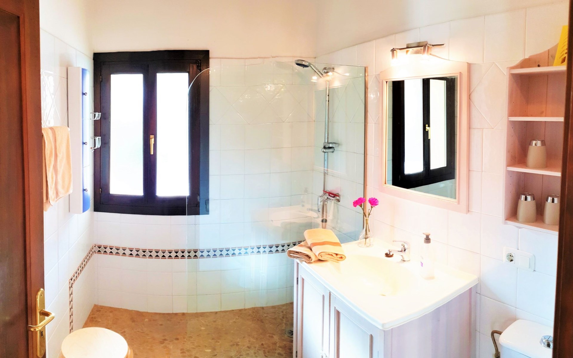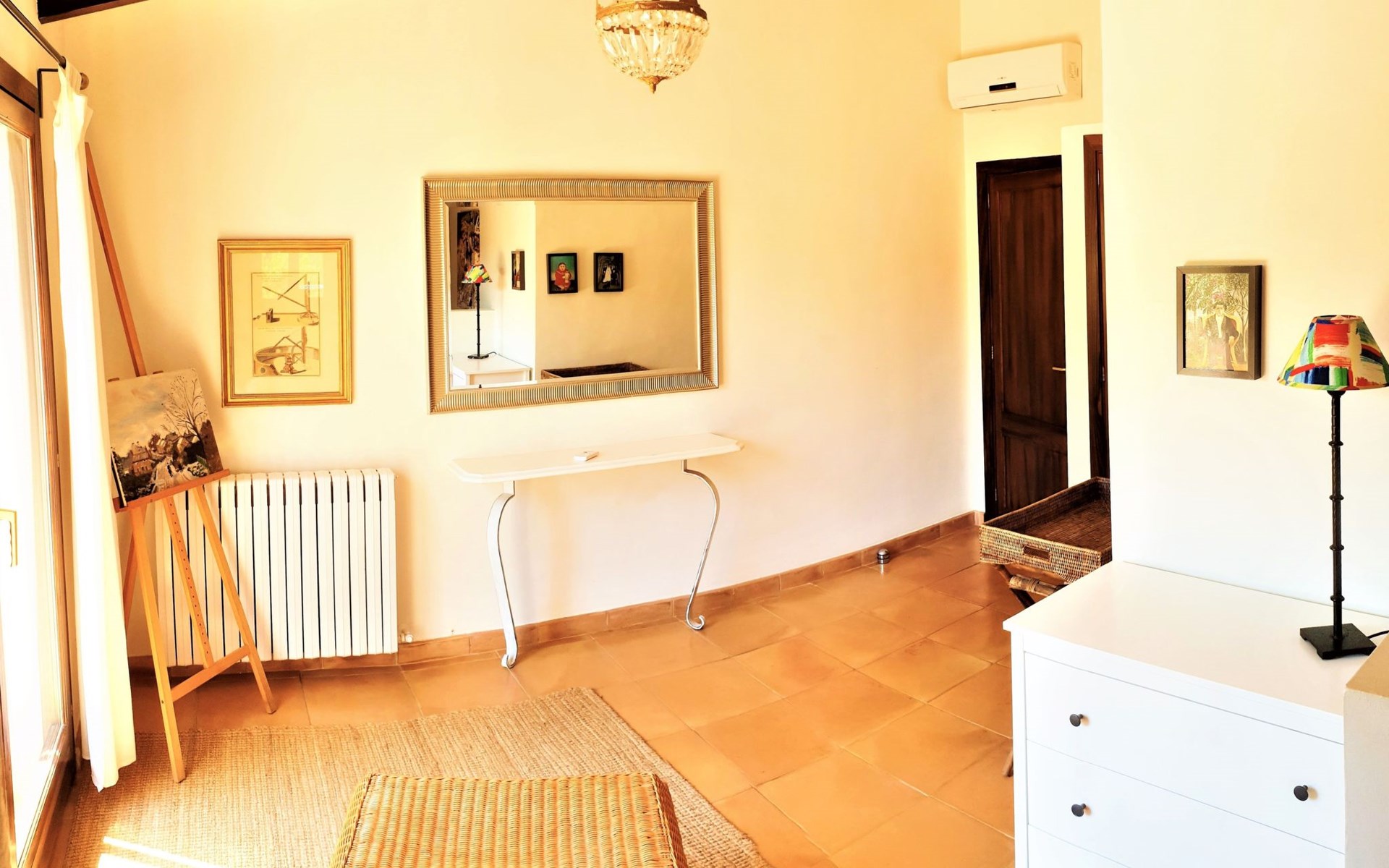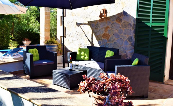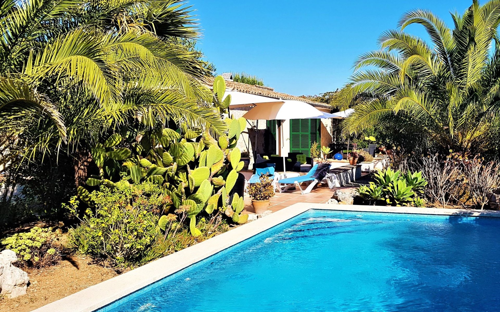 Idyllic, spacious and quietly situated finca with many terraces near ArtáThis beautiful, rural finca, with views of the castle of Capderpera, not far from the most beautiful beaches in Mallorca, is situated on a 7100 m² plot, only approx. 5 km from Artá. The medieval pilgrimage church of Sant Salvador on the top of the hill of Artá dominates the townscape and is visible from afar. On Tuesdays, the beautiful weekly market invites you to shop and stroll around. The historic old town of Artá with its numerous shops, restaurants and bars invites you to go out, shop and stroll around. The well-stocked supermarkets and small shops in the town offer all the daily necessities. Gentle green hills characterise the typical Mediterranean coastal landscape of the east of Mallorca. The numerous small white and fine sandy beaches on the east coast, which slope gently into the sea, can be reached quickly by car. There is something for every taste here, from very lively with a good infrastructure to secluded little bays that are often deserted even in the high season. The is quietly situated and lies in the centre of the 3 beautiful golf courses of Capdepera, Canyamel and Son Servera.Your holiday begins when the automatic gate of the 7,100 m² plot opens and you drive along the small gravel path to the finca. The entire property is characterised by typical Mediterranean plants. You can explore and enjoy the Mallorcan countryside throughout the property, surrounded by numerous different palm trees, fig trees, almond trees, oleander bushes and much more. There are a total of 7 terrace areas around the entire house.You can expect around 200 m² of lovingly designed space on one level. Many small accessories, the light-coloured walls, the terracotta tiles and the tasteful furniture ensure a pleasant feeling of living in light-flooded rooms. All rooms are accessed centrally via the entrance and hallway area. In addition to the three bedrooms with double and single beds and fitted wardrobes, these include a bathroom with en-suite shower, a bathroom with en-suite bath, a guest WC and a spacious living/dining area with adjoining kitchen. The kitchen is fully equipped with a dishwasher and there is a washing machine with clothes horse and ironing board in the basement. The three bedrooms, designed as small suites (master suite with integrated bathroom and large double bed (1.80 x 2.00 m), a suite with integrated shower room and large double bed (1.60 x 2.00 m) and a further suite with separate WC and 2 (joinable) single beds (each 0.90 x 2.00 m), offer sufficient individual space and personal retreat options and each have their own terrace with direct access to the pool and the Mediterranean garden. The two bedrooms with double beds also have Smart TVs.The spaciousness of the finca is perfect for anyone who wants to spend a harmonious holiday alone or with their children, with their parents or with friends. The 2 additional sun and shade terraces in the living/dining area with barbecue, electric grill, lockable patio cover and further terraces in the pool area offer plenty of space for socialising. The 8 x 4 metre pool with easy access via steps and outdoor shower invites you to take a refreshing dip. An automated pool control system ensures consistently good water quality. Depending on your preference, you can choose between sunny and shady spots on the many terrace areas and relax from the stresses of everyday life. In the hot season, the Persians protect all rooms from the sun's rays and still provide pleasant fresh air. The bedrooms are also equipped with air conditioning. The cosy open fireplace in the living/dining area and the oil central heating in all rooms ensure a comfortable atmosphere in the cooler seasons.In addition to the beautiful town of Artá, the well-known tourist resort of Cala Radjada is only approx. 5 km away and offers numerous shopping facilities (Lidl, Mercadona, Müller) as well as a beautiful harbour and tourist centre with numerous bars, restaurants and cafes. There is a market in Cala Radjada on Saturdays. The tourist town of Canyamel is only about 3 km away and also offers many possibilities and direct access to the beach and the sea. The well-known restaurant Proxada de Sa Torre (famous for its delicious suckling pig) is only approx. 1.5 km away. The famous caves of Artá are approx. 7 km away and are a popular excursion destination. The historic castle of Capdepera, which can be seen directly from the finca, is also only 6 km away. There is a market in Capdeapera on Wednesdays.The access road via the dirt track is a little bumpy, but guarantees a little more peace and quiet. Wifi and German satellite TV are available free of charge. The entire house, the grounds and the pool are for your exclusive use. Baby cots can be provided and a baby high chair is available. ESFCTU00000702300010218800000000000000000000ETV/1