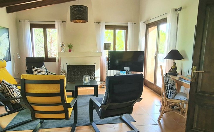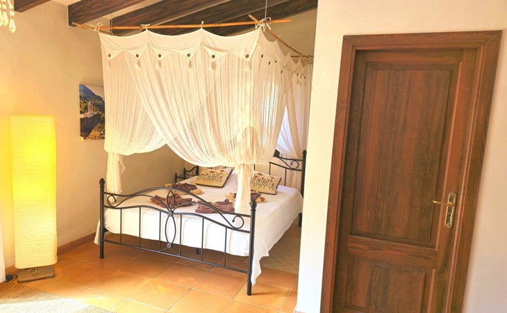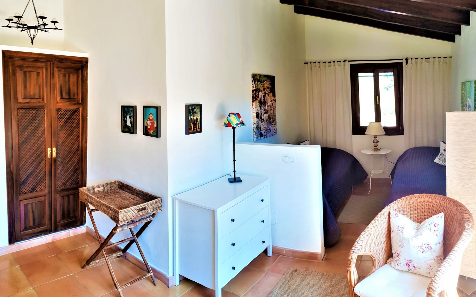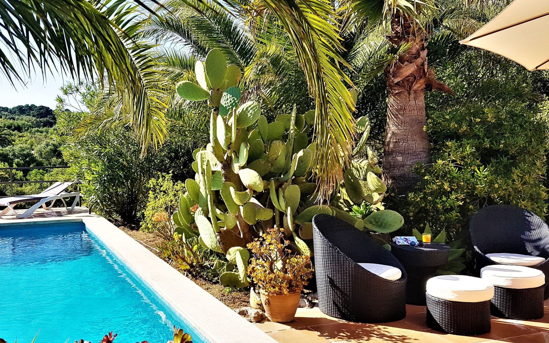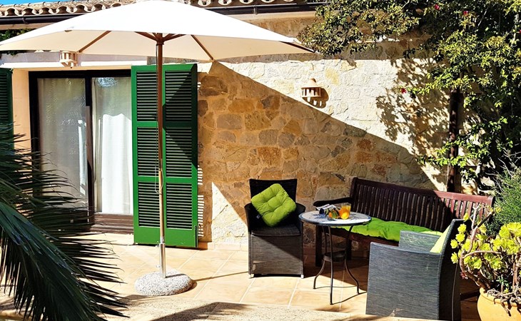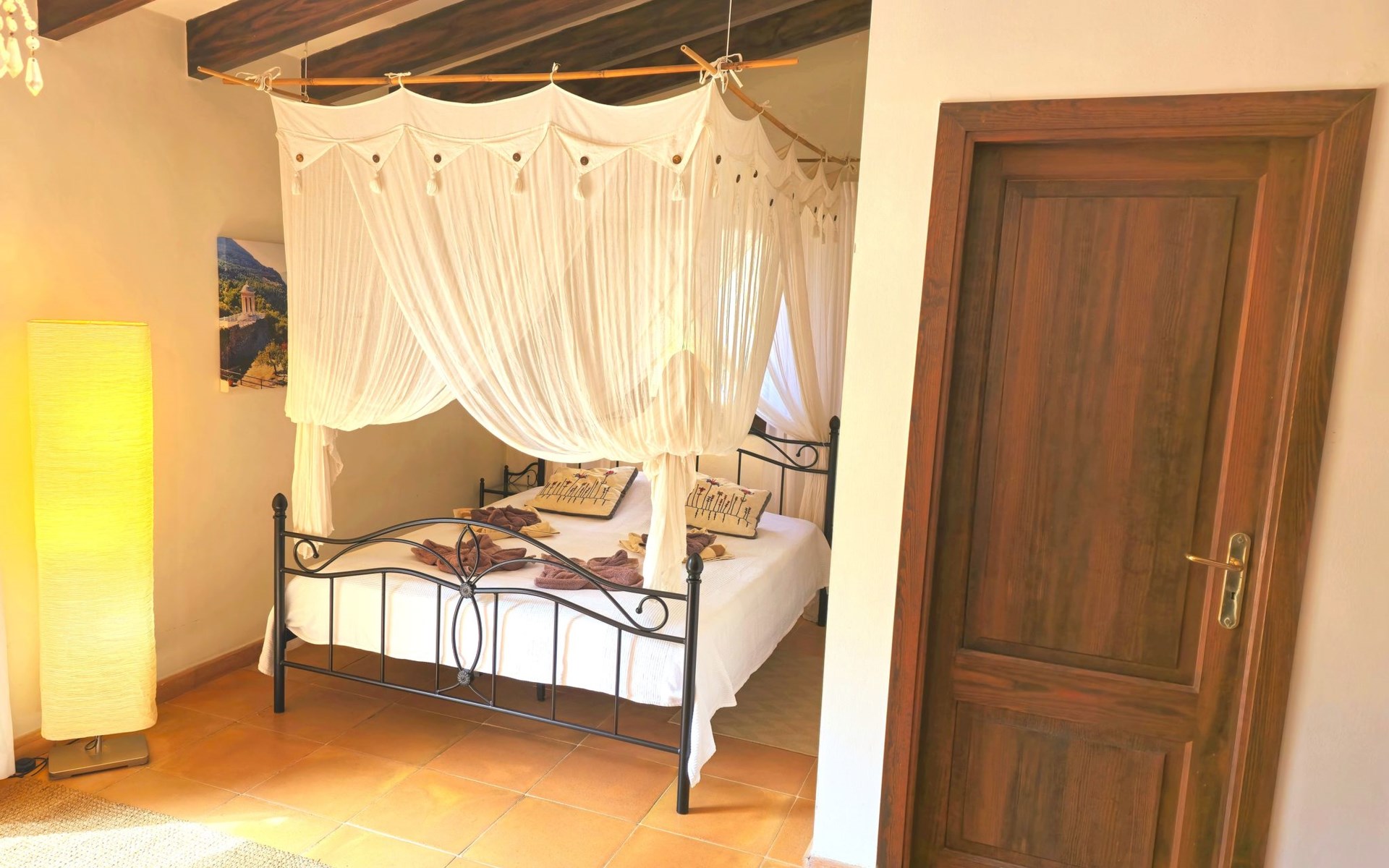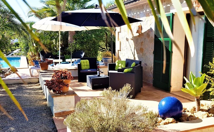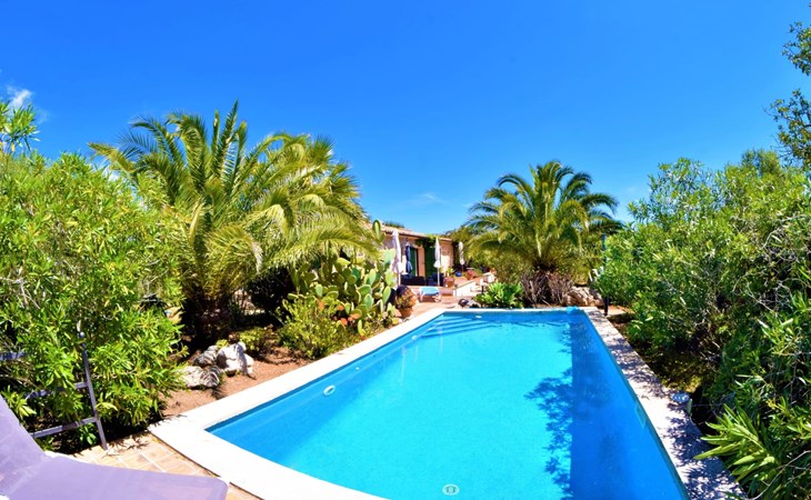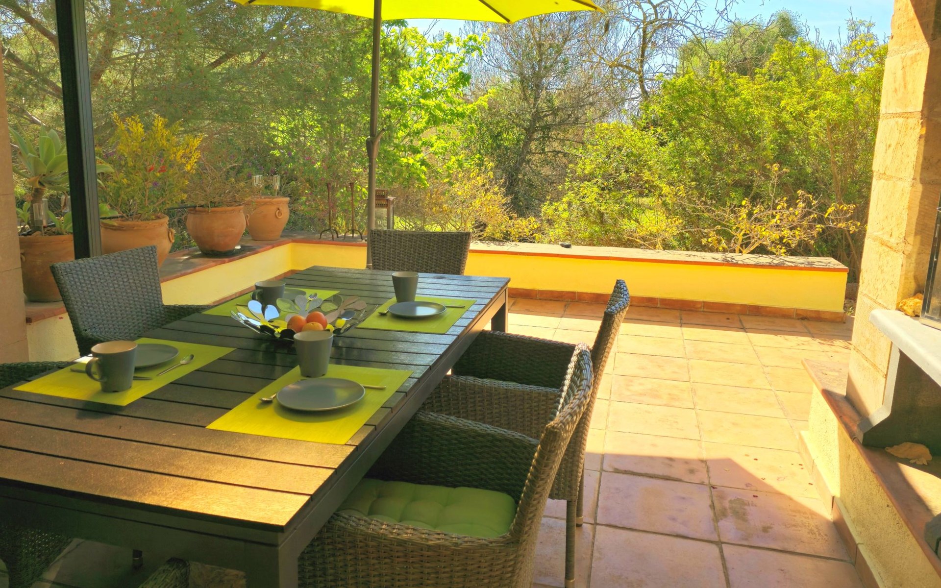 Idyllic, spacious and quietly situated finca with many terraces near ArtáThis beautiful, rural finca, with views of the castle of Capderpera, not far from the most beautiful beaches in Mallorca, is situated on a 7100 m² plot, only approx. 5 km from Artá. The medieval pilgrimage church of Sant Salvador on the top of the hill of Artá dominates the townscape and is visible from afar. On Tuesdays, the beautiful weekly market invites you to shop and stroll around. The historic old town of Artá with its numerous shops, restaurants and bars invites you to go out, shop and stroll around. The well-stocked supermarkets and small shops in the town offer all the daily necessities. Gentle green hills characterise the typical Mediterranean coastal landscape of the east of Mallorca. The numerous small white and fine sandy beaches on the east coast, which slope gently into the sea, can be reached quickly by car. There is something for every taste here, from very lively with a good infrastructure to secluded little bays that are often deserted even in the high season. The is quietly situated and lies in the centre of the 3 beautiful golf courses of Capdepera, Canyamel and Son Servera.Your holiday begins when the automatic gate of the 7,100 m² plot opens and you drive along the small gravel path to the finca. The entire property is characterised by typical Mediterranean plants. You can explore and enjoy the Mallorcan countryside throughout the property, surrounded by numerous different palm trees, fig trees, almond trees, oleander bushes and much more. There are a total of 7 terrace areas around the entire house.You can expect around 200 m² of lovingly designed space on one level. Many small accessories, the light-coloured walls, the terracotta tiles and the tasteful furniture ensure a pleasant feeling of living in light-flooded rooms. All rooms are accessed centrally via the entrance and hallway area. In addition to the three bedrooms with double and single beds and fitted wardrobes, these include a bathroom with en-suite shower, a bathroom with en-suite bath, a guest WC and a spacious living/dining area with adjoining kitchen. The kitchen is fully equipped with a dishwasher and there is a washing machine with clothes horse and ironing board in the basement. The three bedrooms, designed as small suites (master suite with integrated bathroom and large double bed (1.80 x 2.00 m), a suite with integrated shower room and large double bed (1.60 x 2.00 m) and a further suite with separate WC and 2 (joinable) single beds (each 0.90 x 2.00 m), offer sufficient individual space and personal retreat options and each have their own terrace with direct access to the pool and the Mediterranean garden. The two bedrooms with double beds also have Smart TVs.The spaciousness of the finca is perfect for anyone who wants to spend a harmonious holiday alone or with their children, with their parents or with friends. The 2 additional sun and shade terraces in the living/dining area with barbecue, electric grill, lockable patio cover and further terraces in the pool area offer plenty of space for socialising. The 8 x 4 metre pool with easy access via steps and outdoor shower invites you to take a refreshing dip. An automated pool control system ensures consistently good water quality. Depending on your preference, you can choose between sunny and shady spots on the many terrace areas and relax from the stresses of everyday life. In the hot season, the Persians protect all rooms from the sun's rays and still provide pleasant fresh air. The bedrooms are also equipped with air conditioning. The cosy open fireplace in the living/dining area and the oil central heating in all rooms ensure a comfortable atmosphere in the cooler seasons.In addition to the beautiful town of Artá, the well-known tourist resort of Cala Radjada is only approx. 5 km away and offers numerous shopping facilities (Lidl, Mercadona, Müller) as well as a beautiful harbour and tourist centre with numerous bars, restaurants and cafes. There is a market in Cala Radjada on Saturdays. The tourist town of Canyamel is only about 3 km away and also offers many possibilities and direct access to the beach and the sea. The well-known restaurant Proxada de Sa Torre (famous for its delicious suckling pig) is only approx. 1.5 km away. The famous caves of Artá are approx. 7 km away and are a popular excursion destination. The historic castle of Capdepera, which can be seen directly from the finca, is also only 6 km away. There is a market in Capdeapera on Wednesdays.The access road via the dirt track is a little bumpy, but guarantees a little more peace and quiet. Wifi and German satellite TV are available free of charge. The entire house, the grounds and the pool are for your exclusive use. Baby cots can be provided and a baby high chair is available. ESFCTU00000702300010218800000000000000000000ETV/1