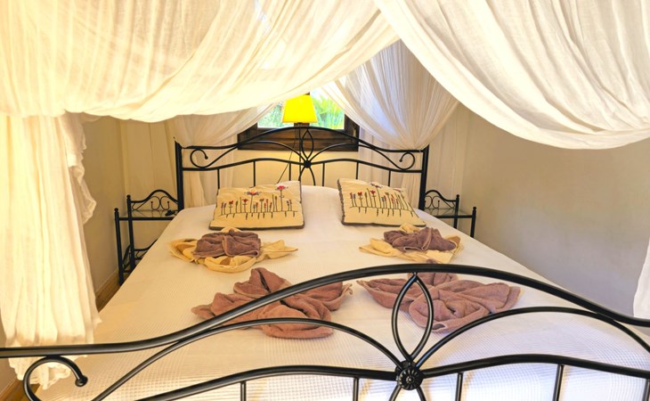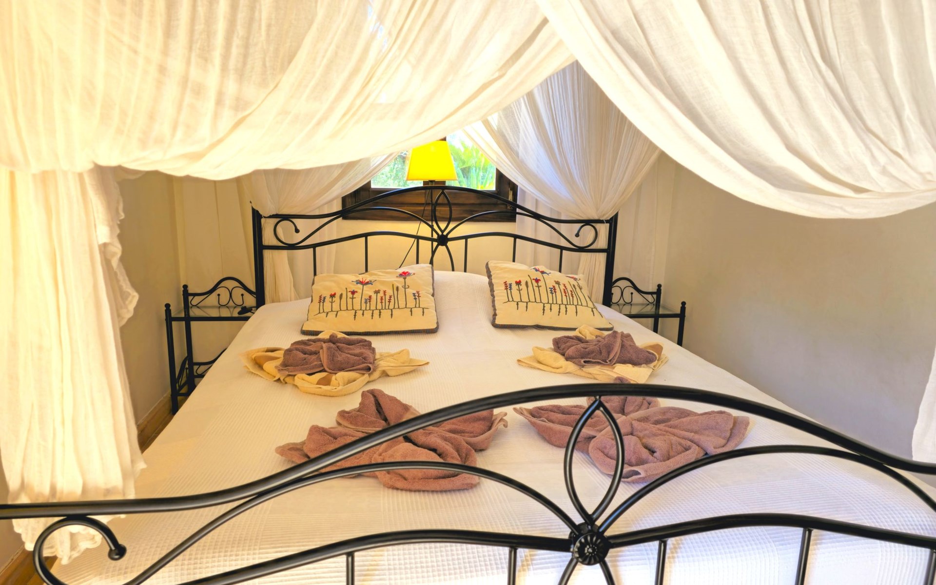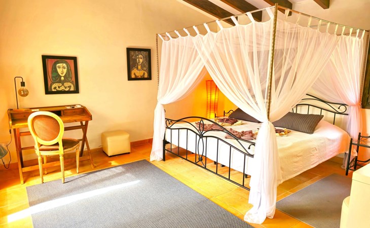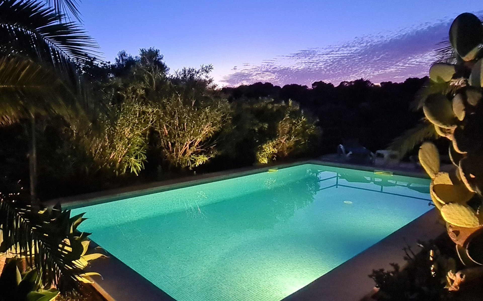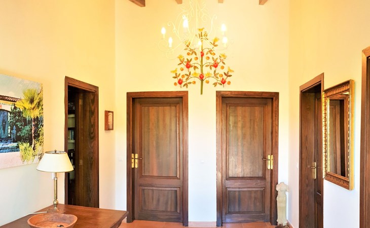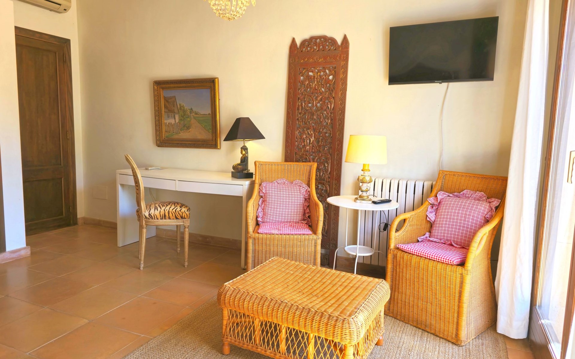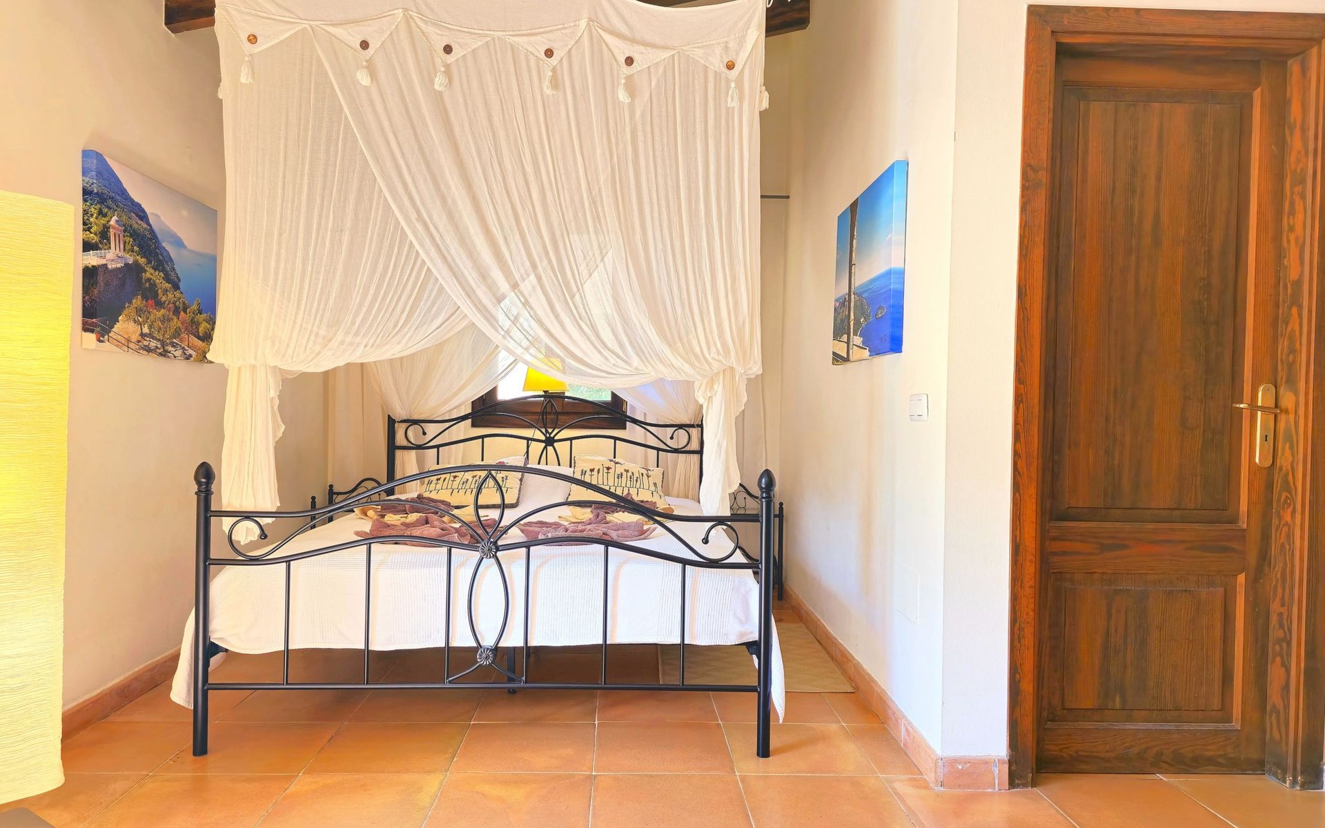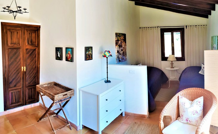 Idyllic, spacious and quietly situated finca with many terraces near ArtáThis beautiful, rural finca, with views of the castle of Capderpera, not far from the most beautiful beaches in Mallorca, is situated on a 7100 m² plot, only approx. 5 km from Artá. The medieval pilgrimage church of Sant Salvador on the top of the hill of Artá dominates the townscape and is visible from afar. On Tuesdays, the beautiful weekly market invites you to shop and stroll around. The historic old town of Artá with its numerous shops, restaurants and bars invites you to go out, shop and stroll around. The well-stocked supermarkets and small shops in the town offer all the daily necessities. Gentle green hills characterise the typical Mediterranean coastal landscape of the east of Mallorca. The numerous small white and fine sandy beaches on the east coast, which slope gently into the sea, can be reached quickly by car. There is something for every taste here, from very lively with a good infrastructure to secluded little bays that are often deserted even in the high season. The is quietly situated and lies in the centre of the 3 beautiful golf courses of Capdepera, Canyamel and Son Servera.Your holiday begins when the automatic gate of the 7,100 m² plot opens and you drive along the small gravel path to the finca. The entire property is characterised by typical Mediterranean plants. You can explore and enjoy the Mallorcan countryside throughout the property, surrounded by numerous different palm trees, fig trees, almond trees, oleander bushes and much more. There are a total of 7 terrace areas around the entire house.You can expect around 200 m² of lovingly designed space on one level. Many small accessories, the light-coloured walls, the terracotta tiles and the tasteful furniture ensure a pleasant feeling of living in light-flooded rooms. All rooms are accessed centrally via the entrance and hallway area. In addition to the three bedrooms with double and single beds and fitted wardrobes, these include a bathroom with en-suite shower, a bathroom with en-suite bath, a guest WC and a spacious living/dining area with adjoining kitchen. The kitchen is fully equipped with a dishwasher and there is a washing machine with clothes horse and ironing board in the basement. The three bedrooms, designed as small suites (master suite with integrated bathroom and large double bed (1.80 x 2.00 m), a suite with integrated shower room and large double bed (1.60 x 2.00 m) and a further suite with separate WC and 2 (joinable) single beds (each 0.90 x 2.00 m), offer sufficient individual space and personal retreat options and each have their own terrace with direct access to the pool and the Mediterranean garden. The two bedrooms with double beds also have Smart TVs.The spaciousness of the finca is perfect for anyone who wants to spend a harmonious holiday alone or with their children, with their parents or with friends. The 2 additional sun and shade terraces in the living/dining area with barbecue, electric grill, lockable patio cover and further terraces in the pool area offer plenty of space for socialising. The 8 x 4 metre pool with easy access via steps and outdoor shower invites you to take a refreshing dip. An automated pool control system ensures consistently good water quality. Depending on your preference, you can choose between sunny and shady spots on the many terrace areas and relax from the stresses of everyday life. In the hot season, the Persians protect all rooms from the sun's rays and still provide pleasant fresh air. The bedrooms are also equipped with air conditioning. The cosy open fireplace in the living/dining area and the oil central heating in all rooms ensure a comfortable atmosphere in the cooler seasons.In addition to the beautiful town of Artá, the well-known tourist resort of Cala Radjada is only approx. 5 km away and offers numerous shopping facilities (Lidl, Mercadona, Müller) as well as a beautiful harbour and tourist centre with numerous bars, restaurants and cafes. There is a market in Cala Radjada on Saturdays. The tourist town of Canyamel is only about 3 km away and also offers many possibilities and direct access to the beach and the sea. The well-known restaurant Proxada de Sa Torre (famous for its delicious suckling pig) is only approx. 1.5 km away. The famous caves of Artá are approx. 7 km away and are a popular excursion destination. The historic castle of Capdepera, which can be seen directly from the finca, is also only 6 km away. There is a market in Capdeapera on Wednesdays.The access road via the dirt track is a little bumpy, but guarantees a little more peace and quiet. Wifi and German satellite TV are available free of charge. The entire house, the grounds and the pool are for your exclusive use. Baby cots can be provided and a baby high chair is available. ESFCTU00000702300010218800000000000000000000ETV/1