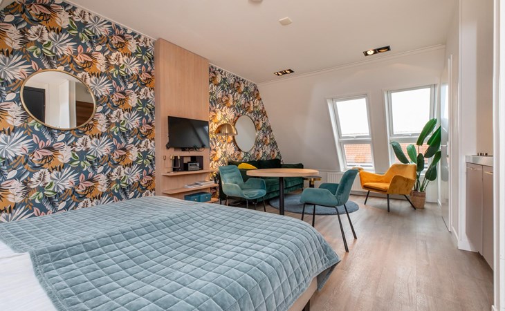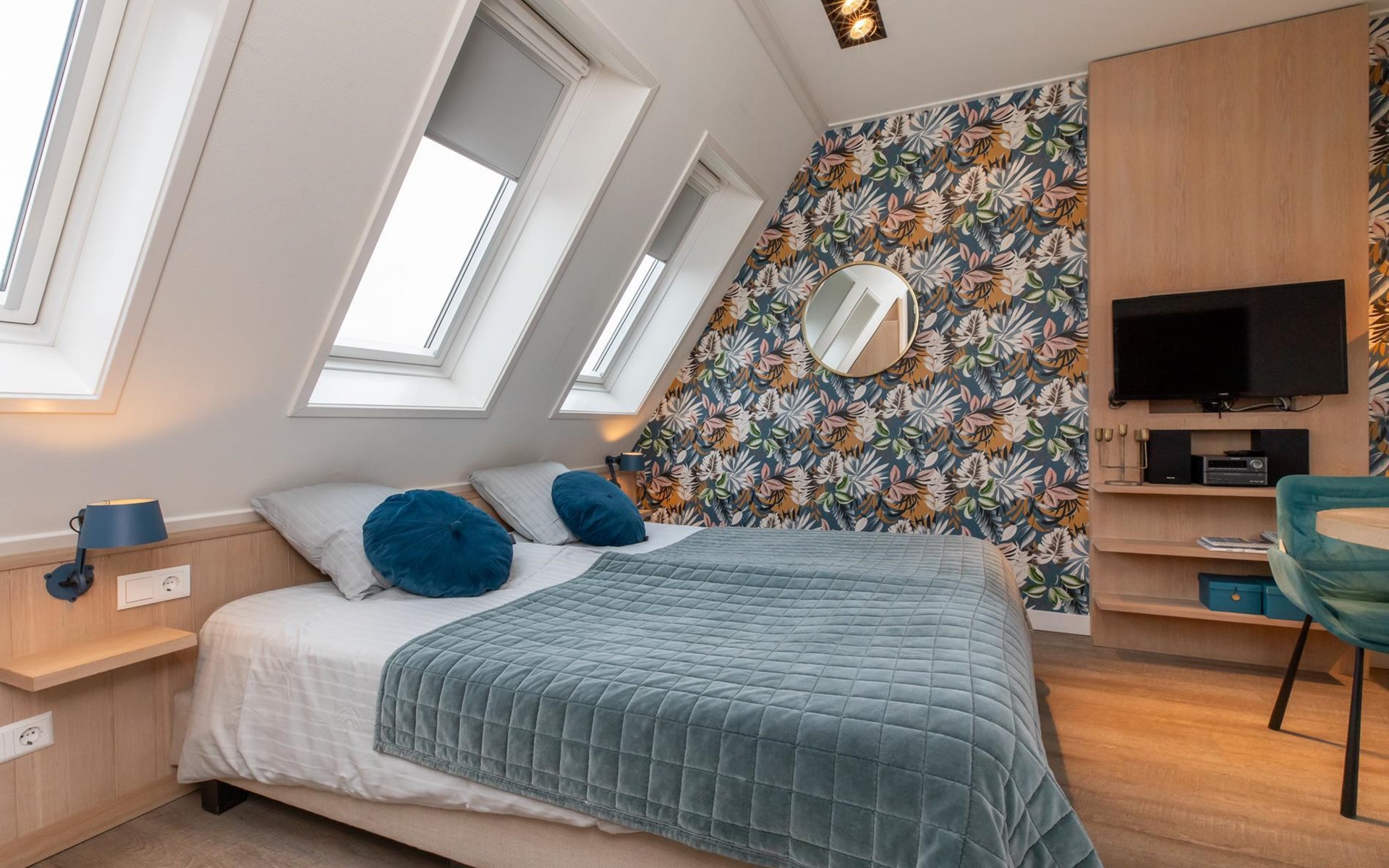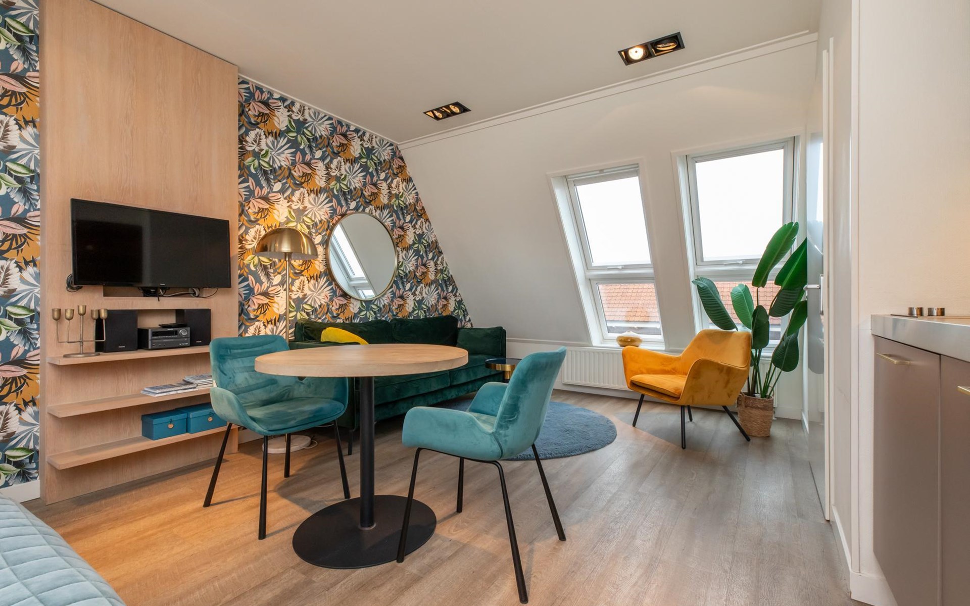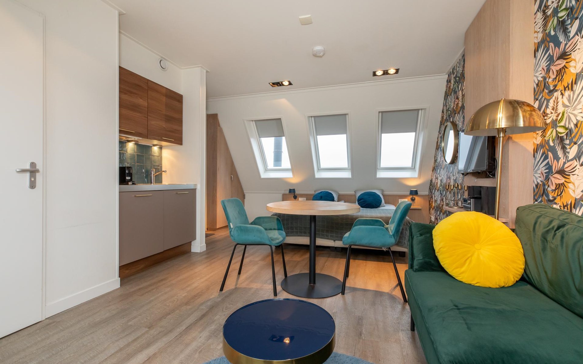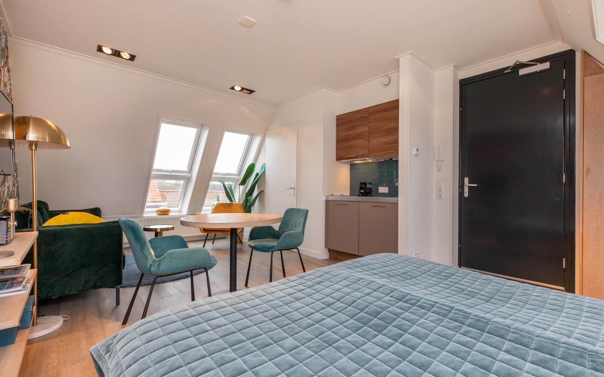 Zodra je binnenstapt, word je verwelkomd door een open ruimte waar alles binnen handbereik is. De schuine kap en dakramen aan weerszijden zorgen voor een overvloed aan natuurlijk licht, waardoor je je direct thuis voelt. Of je nu wilt ontspannen, koken of slapen, alles is mogelijk in deze slim ingedeelde studio.