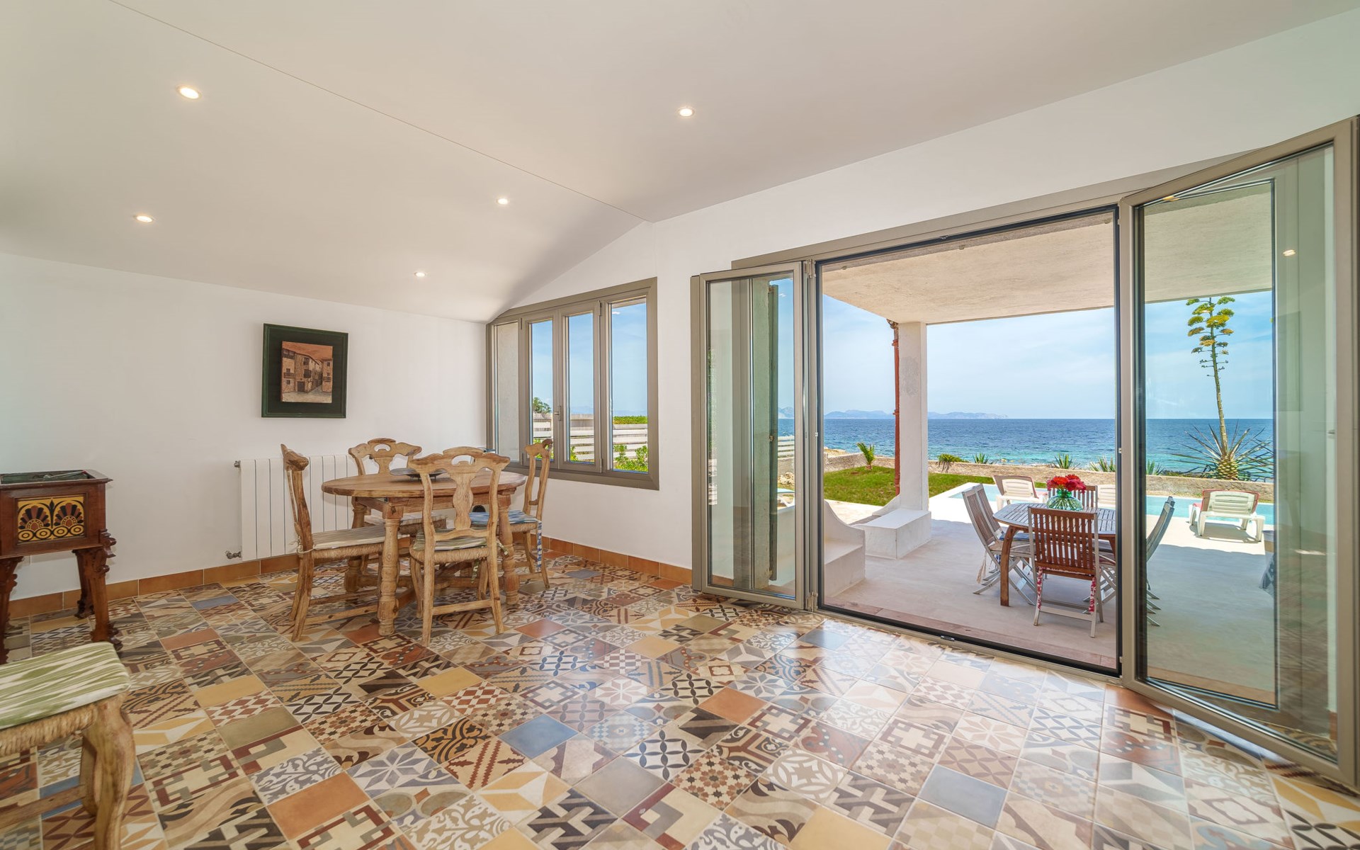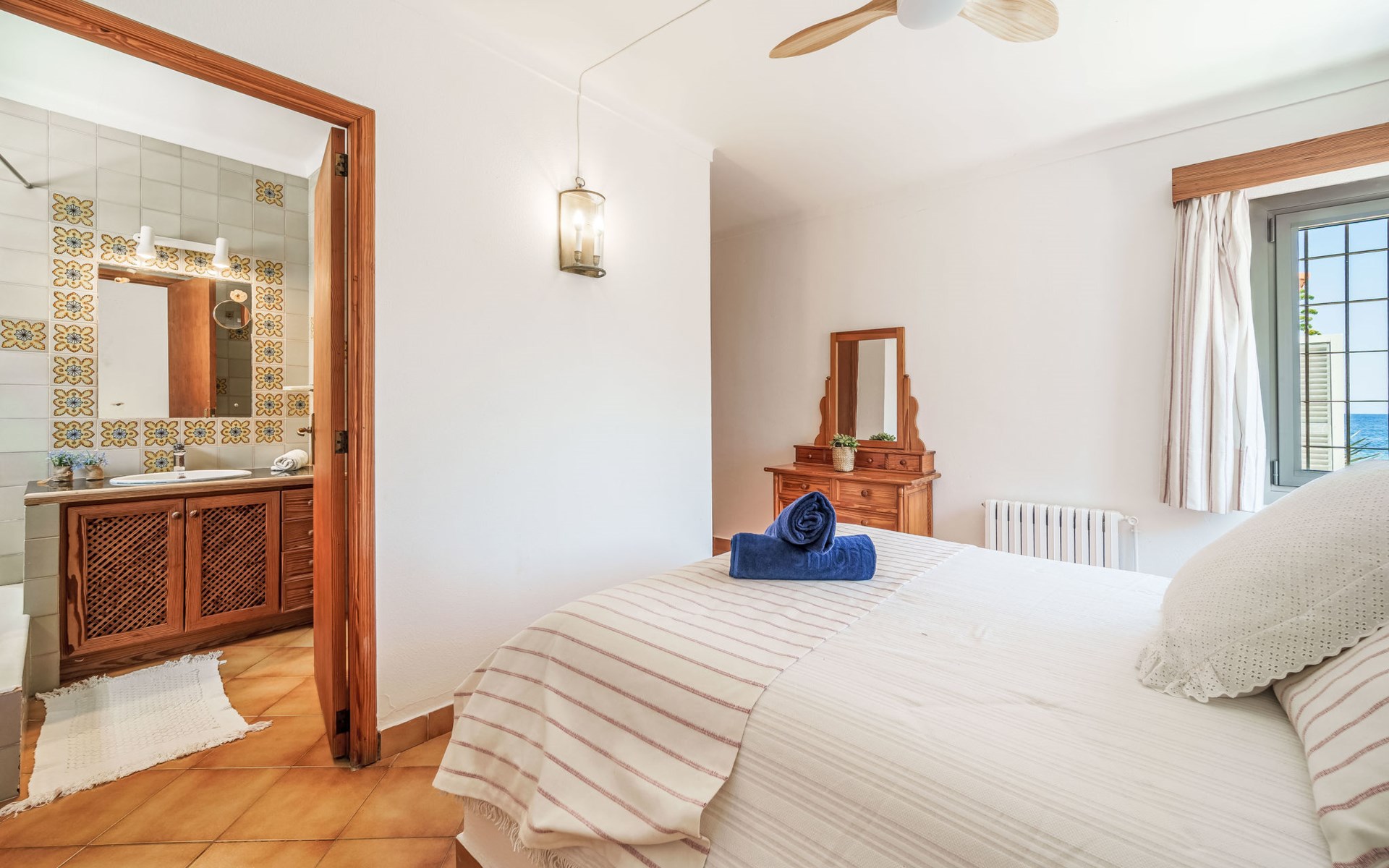 Betlem 5 km van Colonia de Sant Pere: Gezellig, comfortabel huis "Xoroi". In de plaats Betlem, zonnige ligging villa wijk, 10 m van zee, 10 m van het strand. Voor alleengebruik: groot tuin op verschillende niveaus, ligweide, openluchtzwembad hoekig (8 x 4 m, 160 - 160 cm diepte, seizoensgebonden beschikbaarheid: 01.Mrt. - 31.Okt.). Douche/WC bij het zwembad, buitendouche, patio, prieel, prieel, tuinmeubelen, barbecue. In het huis: internetaansluiting, Internet (WiFi), centrale verwarming, alarmsysteem, wasmachine. Parkeerplaats bij het huis op het terrein. Winkel 400 m, levensmiddelenwinkel 6 km, supermarkt 800 m, restaurant 250 m, bar 800 m, café 400 m, internet cafe 800 m, biertuin 400 m, bushalte 800 m, kiezelstrand "Na Clara" 650 m, stenenstrand "Ca los Camps" 3 km, rotsstrand "Betlem" 10 m. Auto noodzakelijk. Baby uitrusting op aanvraag (incl.). Het objekt is geschikt voor 8 volwassenen groepen jongeren uitsluitend op aanvraag. Laden en lossen van de baggage is mogelijk bij het huis. Vliegveld 73 km van het huis.