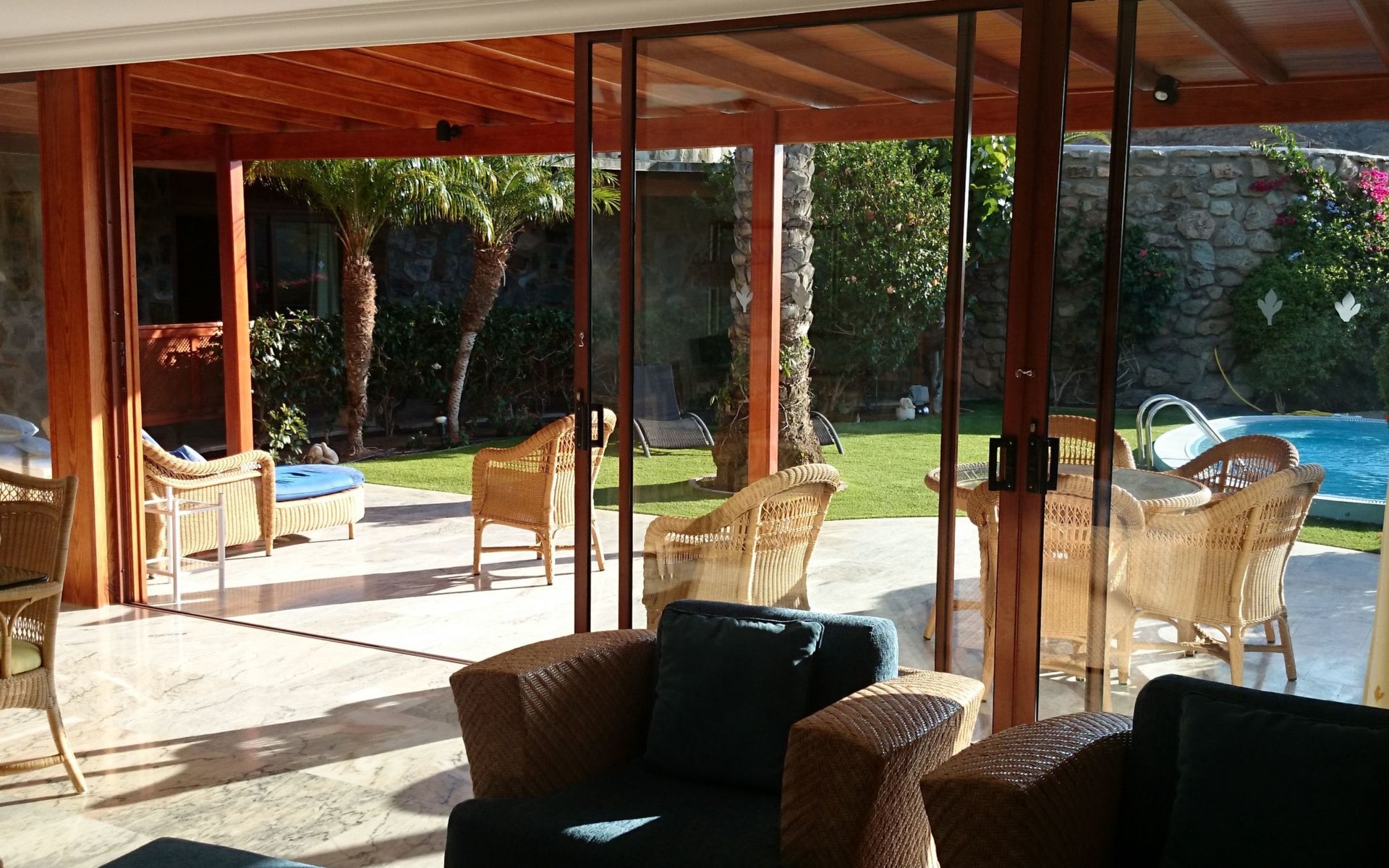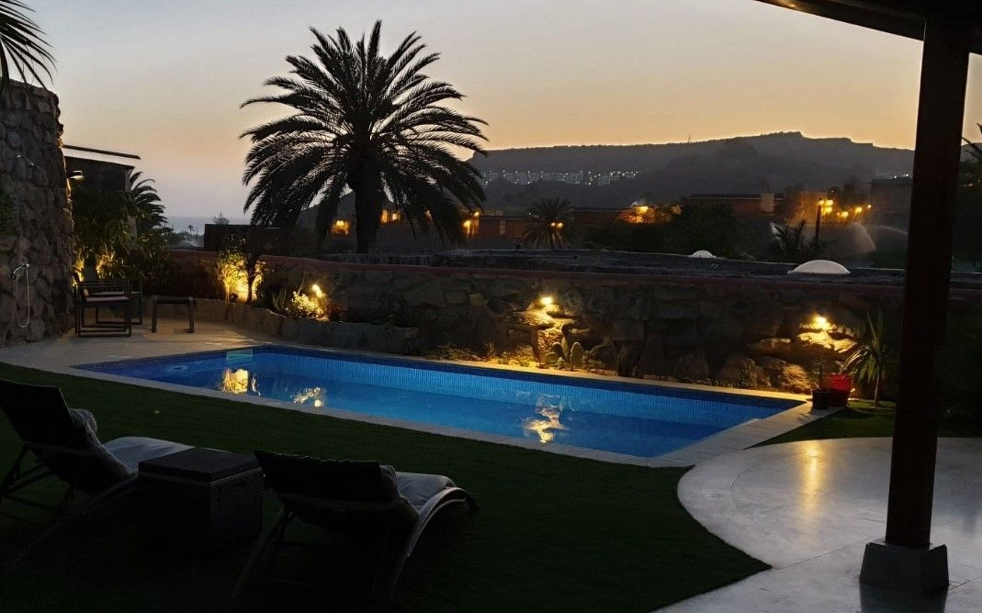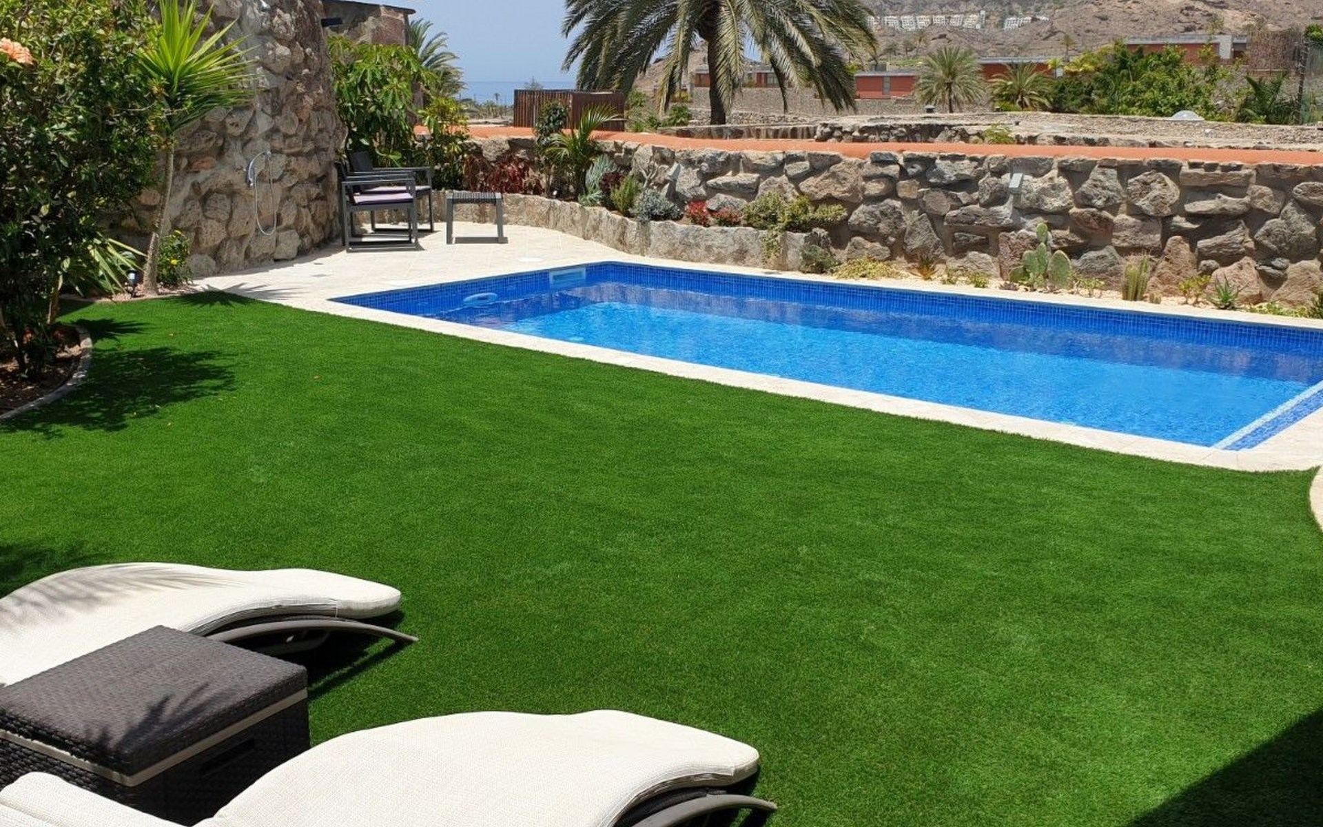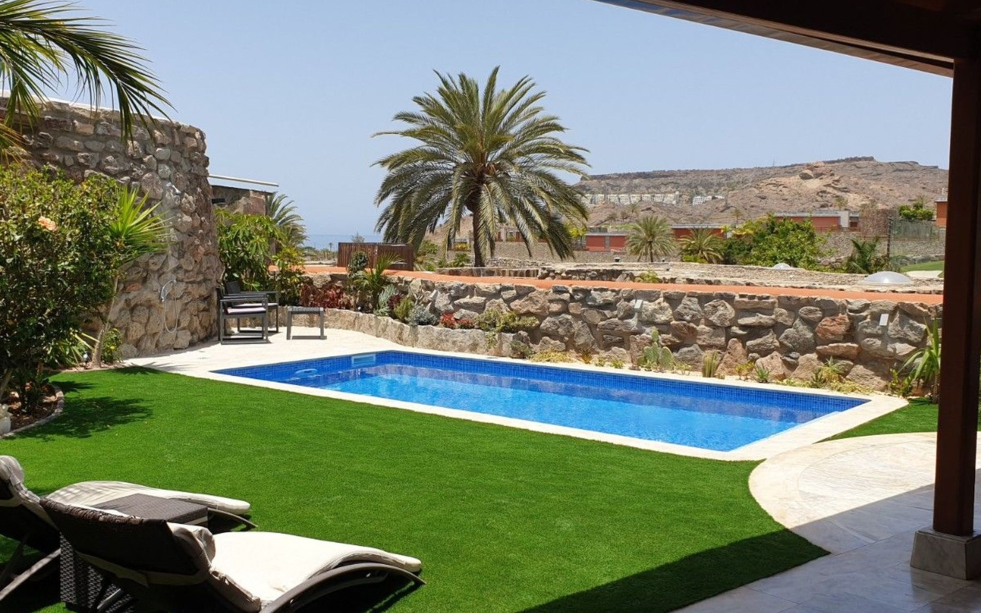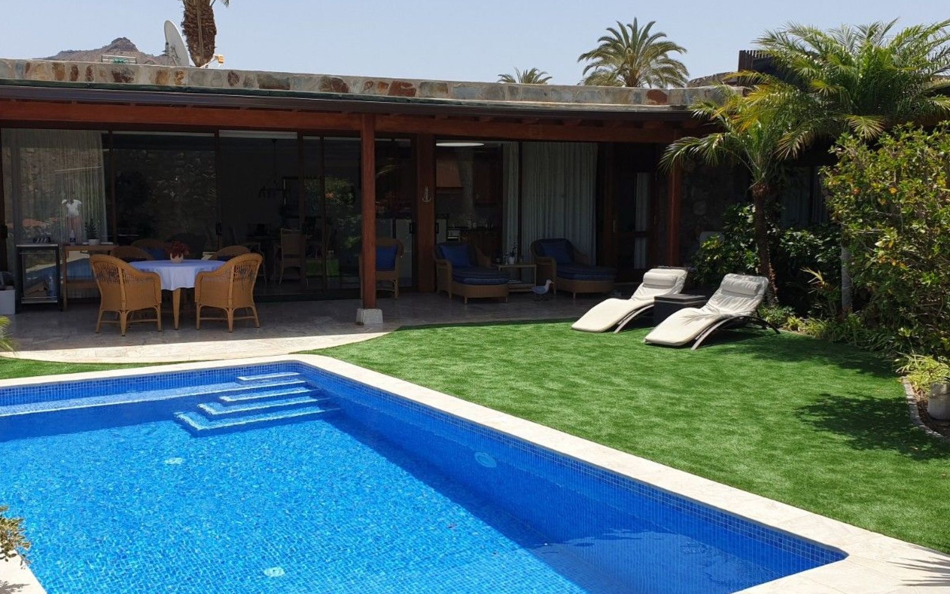 Discover splendour and luxury at its best in our luxury villa in the charming village of Tauro. Boasting an exceptionally sunny climate all year round, this prestigious residence offers the perfect escape for those looking to relax in an oasis of calm. Nestled in a secure development and boasting a private swimming pool, this villa promises privacy and serenity, while offering access to a large communal swimming pool equipped with a bar and restaurant, as well as a mini-market for your convenience.The interior of the house, entirely on one level, sets a standard of luxury and comfort with its spacious living room featuring a fully-equipped open-plan kitchen. Each of the three spacious bedrooms offers over 20 m² of personal space, equipped with televisions and air conditioning to ensure your maximum comfort. Two elegant bathrooms and individual WCs complete the interior offering, not forgetting the lovely sunny terrace, perfect for enjoying a moment of relaxation.Outside, the villa opens onto a world of private relaxation with its terrace equipped with top-of-the-range garden furniture, a gas barbecue and a charcoal barbecue for gourmet evenings under the stars. The private swimming pool invites you to cool off in complete privacy, while the parking area and individual fenced plot guarantee security and privacy away from prying eyes.The villa's surroundings offer the perfect balance between tranquillity and leisure, with the beach just 500 m away, accessible via a footpath that guarantees direct access to the sea. Surrounded by two golf courses, and not far from the picturesque port of Mogan, the villa is ideally located for lovers of sports and outdoor activities, offering close proximity to restaurants, supermarkets and a host of entertainment and leisure facilities in the centre, just 150 m away.Enjoy a dream holiday experience in this luxury villa, where sun, comfort and luxury meet to create the perfect year-round retreat. With its privileged location, top-of-the-range facilities and easy access to the finest sandy beaches, sports and leisure activities, this villa is undoubtedly an excellent choice for those looking to enjoy eternal spring in the world's best microclimate. It's the guarantee of an unforgettable stay, simply ALL HAPPINESS!