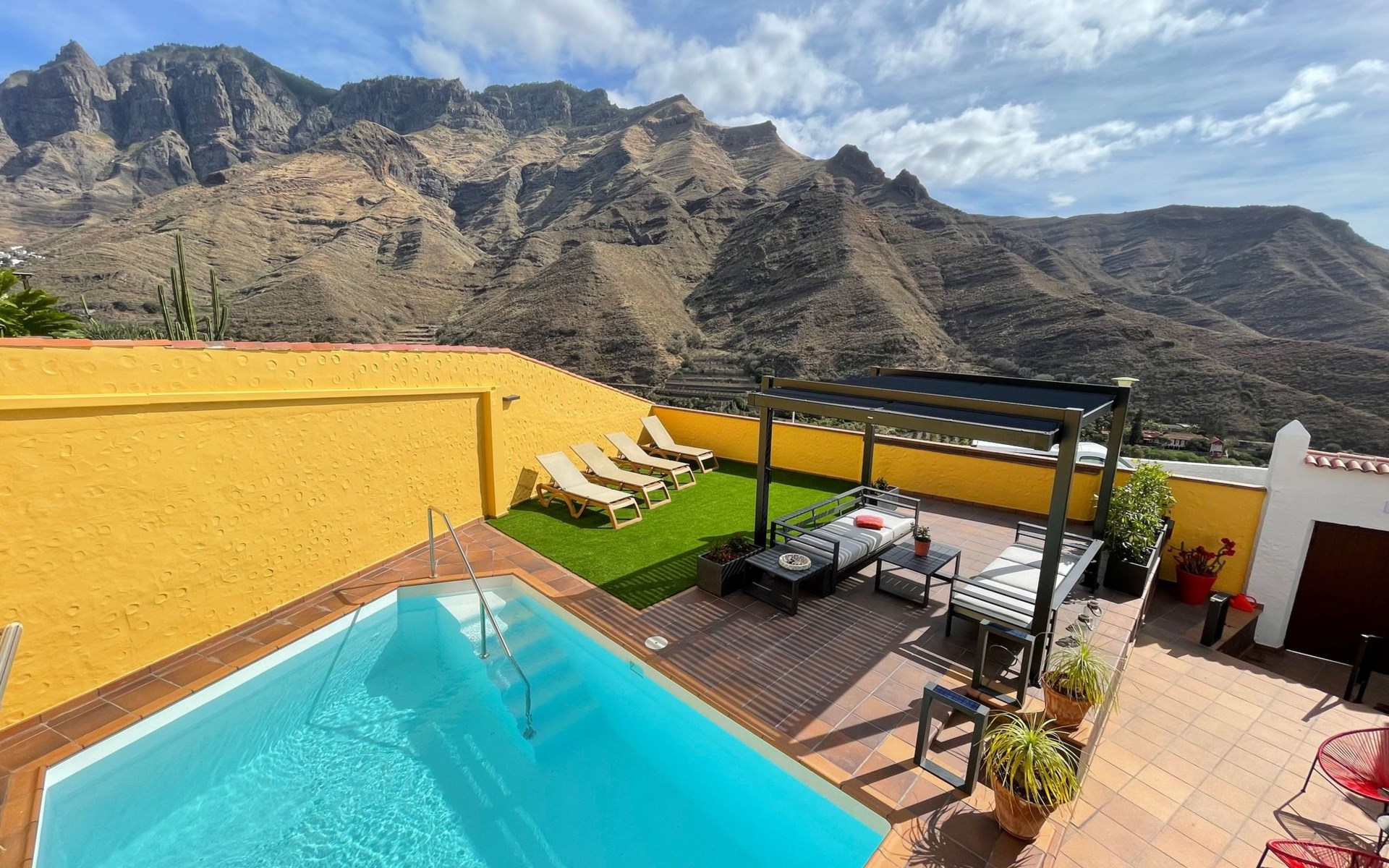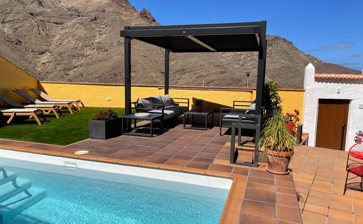 Discover the charm of Los Veroles, an exclusive property located in the Agaete Valley, in the village of Agaete. This unique location benefits from an exceptional microclimate that boosts its famous tropical crops, from coffee to mangoes, avocados and citrus fruits. Surrounded by the majestic Pinar de Tamadaba, a protected area famous for its indigenous flora such as the Canary Island pine, Los Veroles offers a perfect getaway with views of mountains that change colour with the seasons and the sea, where on clear days the silhouette of the island of Tenerife and its imposing volcano Teide stand out.Inside, Los Veroles has all the comfort and convenience necessary for an unforgettable stay. The house is distributed on a single floor, facilitating access to spaces such as two spacious bedrooms equipped with 1.50 m beds and a sofa bed for two people, ensuring a quality rest. It includes two complete bathrooms with hairdryer, towels, shampoo and shower gel. The kitchen is perfectly equipped to meet your culinary needs, and the living room, which features a TV and DVD player, includes a collection of films for the entertainment of adults and children. The property also offers free wifi, air conditioning with hot/cold system and spare towels and bed linen.Outdoors, Los Veroles reveals a true paradise that invites you to enjoy the exceptional climate of the island. The outdoor area has a swimming pool heated by solar panels, a solarium equipped with comfortable sunbeds, and a barbecue area. The garden, designed to offer privacy and security by means of high walls, offers different corners ideal for relaxing and unwinding.Nearby, just 5 km away, is Las Nieves beach and a natural rock pool. The local restaurants, 300 metres away, offer extraordinary dishes within walking distance. The urbanisation La Suerte, 3 km away, is characterised by its vibrant life between September and March, welcoming visitors from all over Europe. The surrounding area offers activities such as hiking, fishing, scuba diving and cultural visits such as the Cueva Pintada in Gáldar, guaranteeing entertainment for all tastes.Los Veroles is the ideal destination for those seeking a peaceful and secure retreat, without giving up the comforts of home. With a wide range of services designed for families with children, groups of friends, and recent compatibility with health regulations, it promises a safe and enriching stay. Equipped to meet every need, from cots and highchairs for children to toys, a printer and books in several languages, this property ensures a unique and unforgettable experience. ESFCTU00003500100070223500000000000000VV-35-1-000