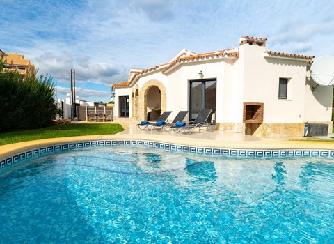 Grote en comfortabele villa in Denia, Costa Blanca, Spanje met privé zwembad voor 4 personen. De vakantievilla ligt in een residentiële omgeving en op 4 km van het strand van La Marineta Casiana.