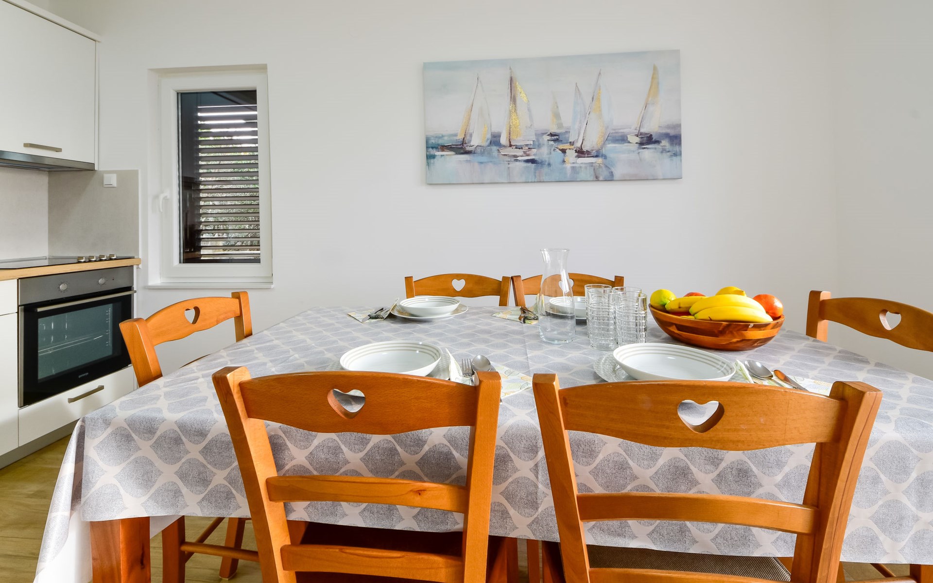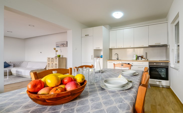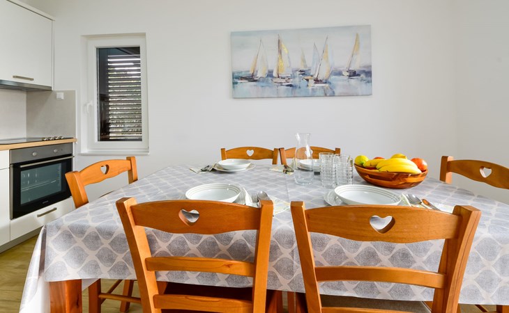 Huis met 2 woningen "Sanja", gerenoveerd in 2023. 1.3 km van het centrum van Novi Vinodolski, 8 km van het centrum van Selce, 12 km van het centrum van Crikvenica, zonnige, verhoogde ligging, 300 m van zee, 300 m van het strand, aan een doodlopende weg. In het huis: internetaansluiting. Openbare parkeerplaatsen in de straat. Winkel 400 m, supermarkt 1.3 km, restaurant 500 m, bushalte 1.4 km, stenenstrand 400 m, rotsstrand, strandbad 300 m. Jachthaven 500 m.