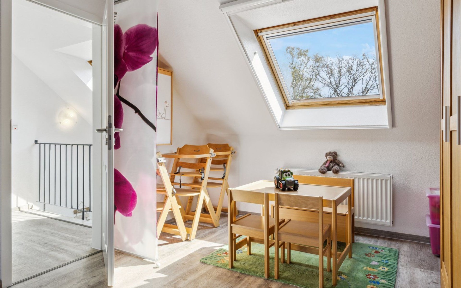 Especially family-friendly: Two high chairs, two travel beds, changing table, diaper bin, stair gates at the top and bottom, as well as numerous toys, books, and art supplies are available. The large terrace is fully fenced, so both two- and four-legged friends can feel equally safe. Dogs are heartily welcome!