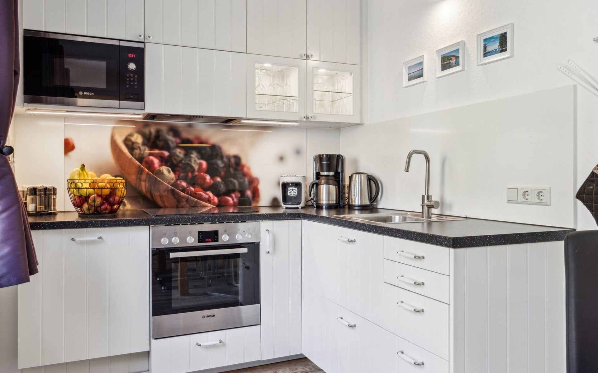 Our newly furnished holiday home impresses with high-quality yet cozy furnishings. The bright living area with an open, fully equipped kitchen and a separate dining area invites you to relax together. The house is equipped with, among other things, Wi-Fi, a large HD-SAT-SMART-TV, Blu-Ray/DVD player, and a lovingly arranged play corner for children.