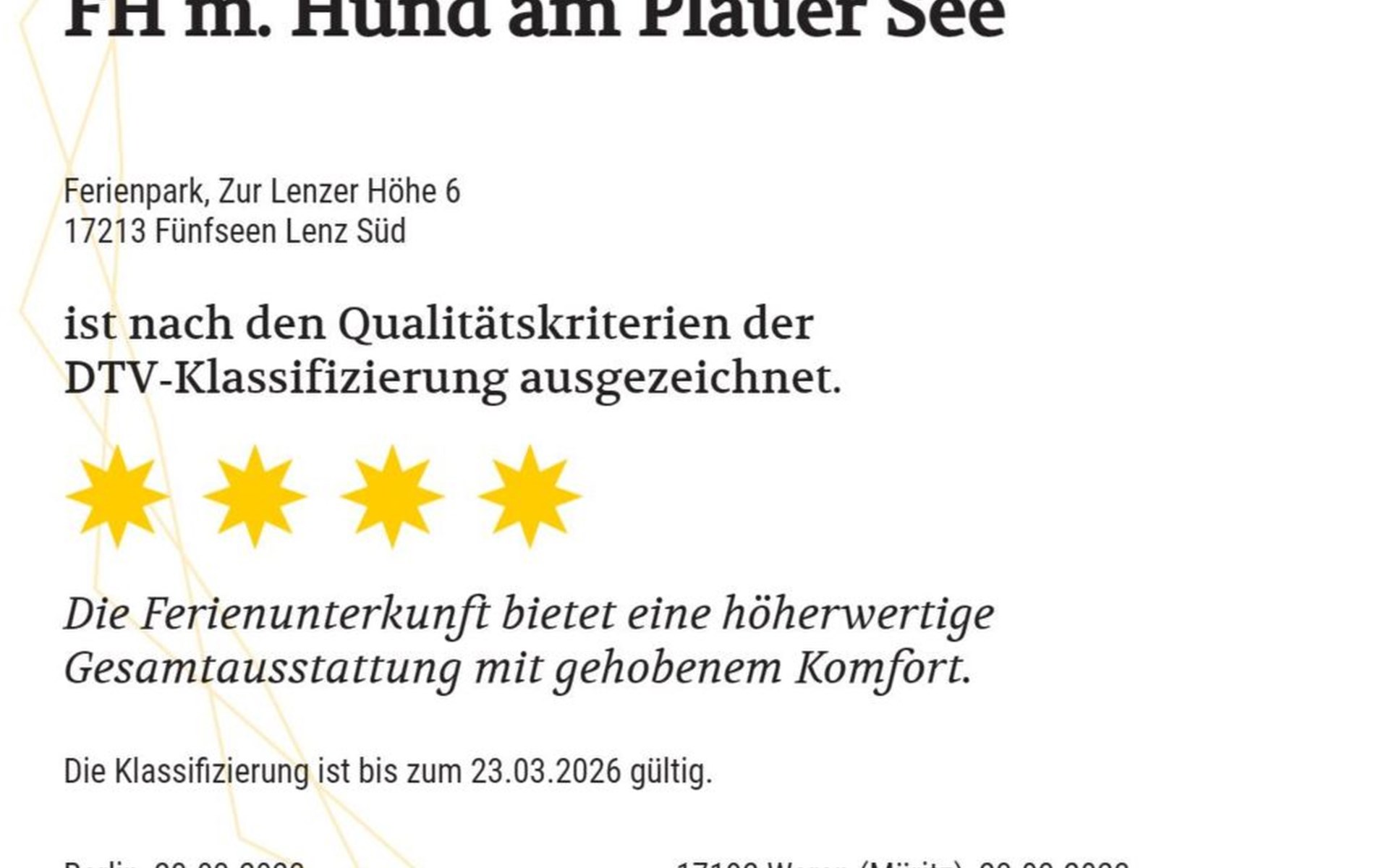 Only about 200 meters from Plauer See and a roughly two-minute walk to the beautiful swimming area, our lovingly furnished 4-star holiday home awaits you in a very quietly situated holiday park – ideal for those seeking relaxation, families, and dog owners.