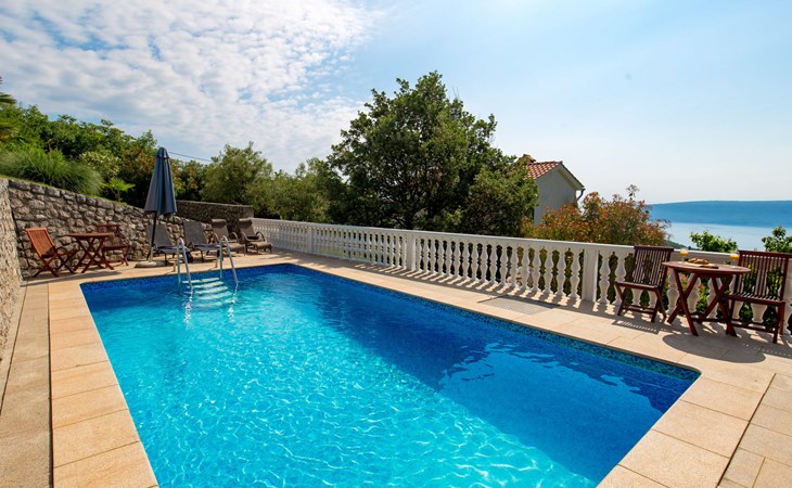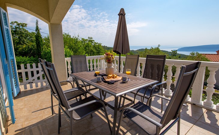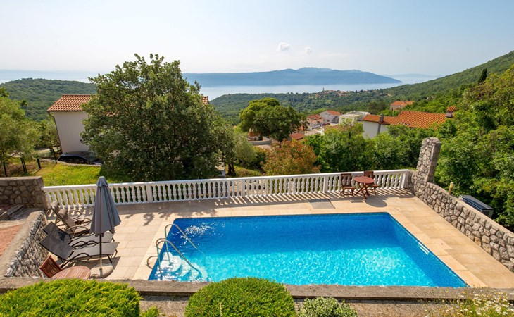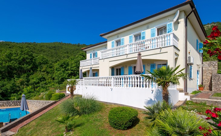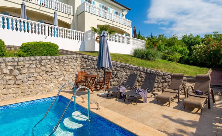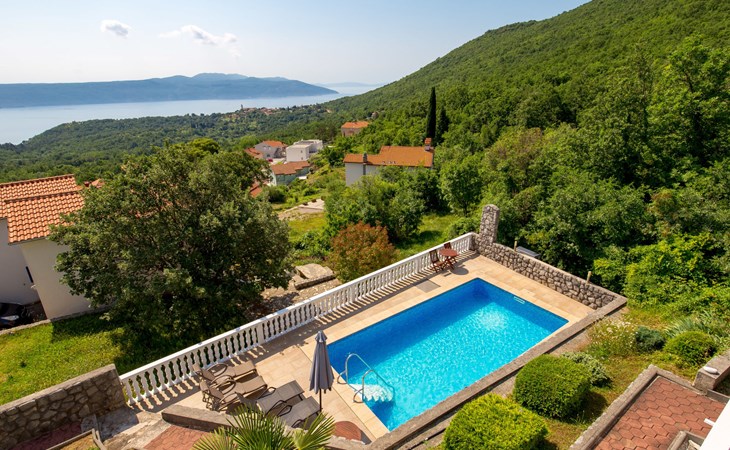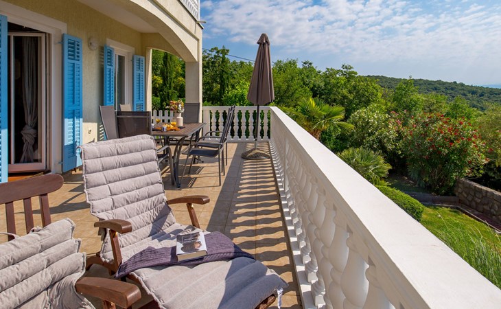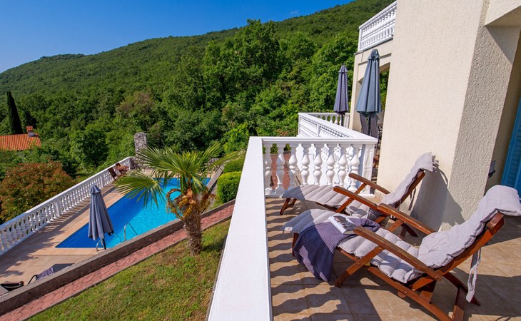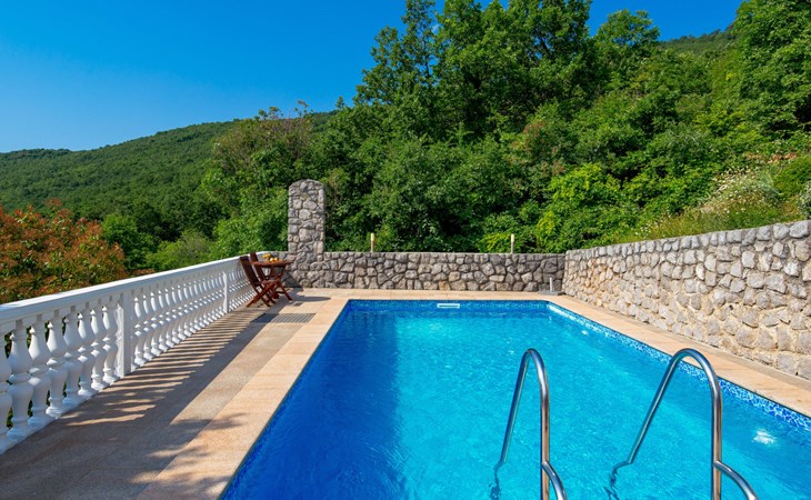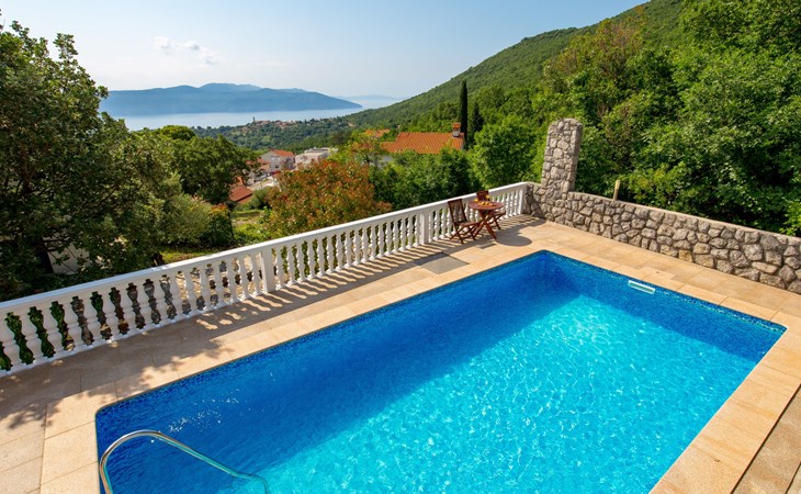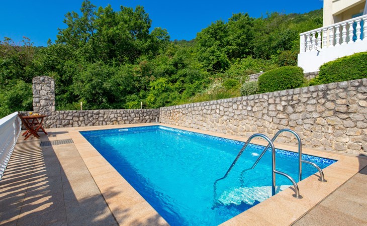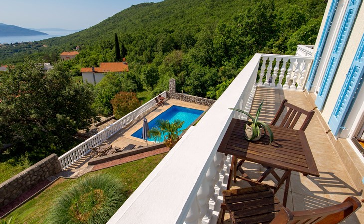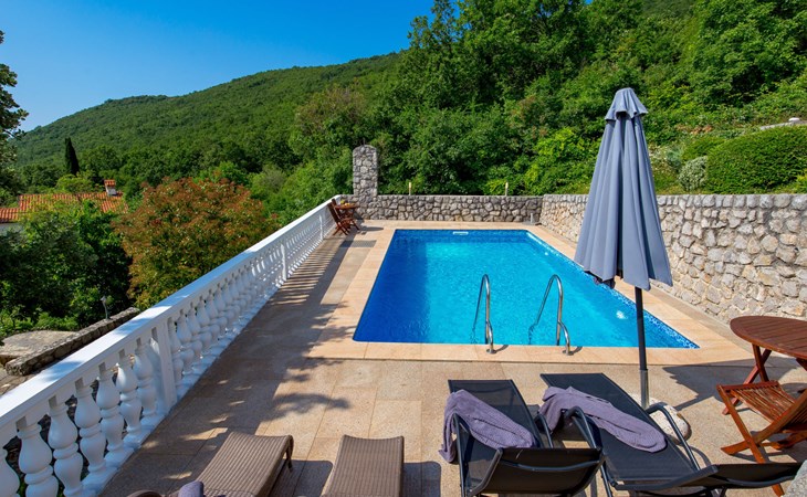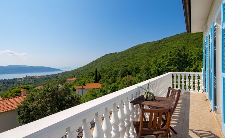 Twee onder één kap woning "Albertina", van 2 verdiepingen. In het gehucht Martina, 2 km van het centrum van Brseč, 8 km van het centrum van Moščenićka Draga, 3.5 km van zee, 3.5 km van het strand. Voor medegebruik: terrein 900 m2 met gazon en planten, openluchtzwembad hoekig (8 x 4 m, 150 cm diepte, seizoensgebonden beschikbaarheid: 01.Mei. - 31.Okt.). Buitendouche, terras, onderhoud zwembad door de eigenaar/tuinman. In het huis: internetaansluiting. 400 m lange steile toegangsweg tot aan het huis. Parkeerplaats op het terrein. Winkel 2 km, restaurant 2 km, bushalte 300 m, kiezelstrand 3.5 km. Groepen jongeren zijn niet toegestaan.