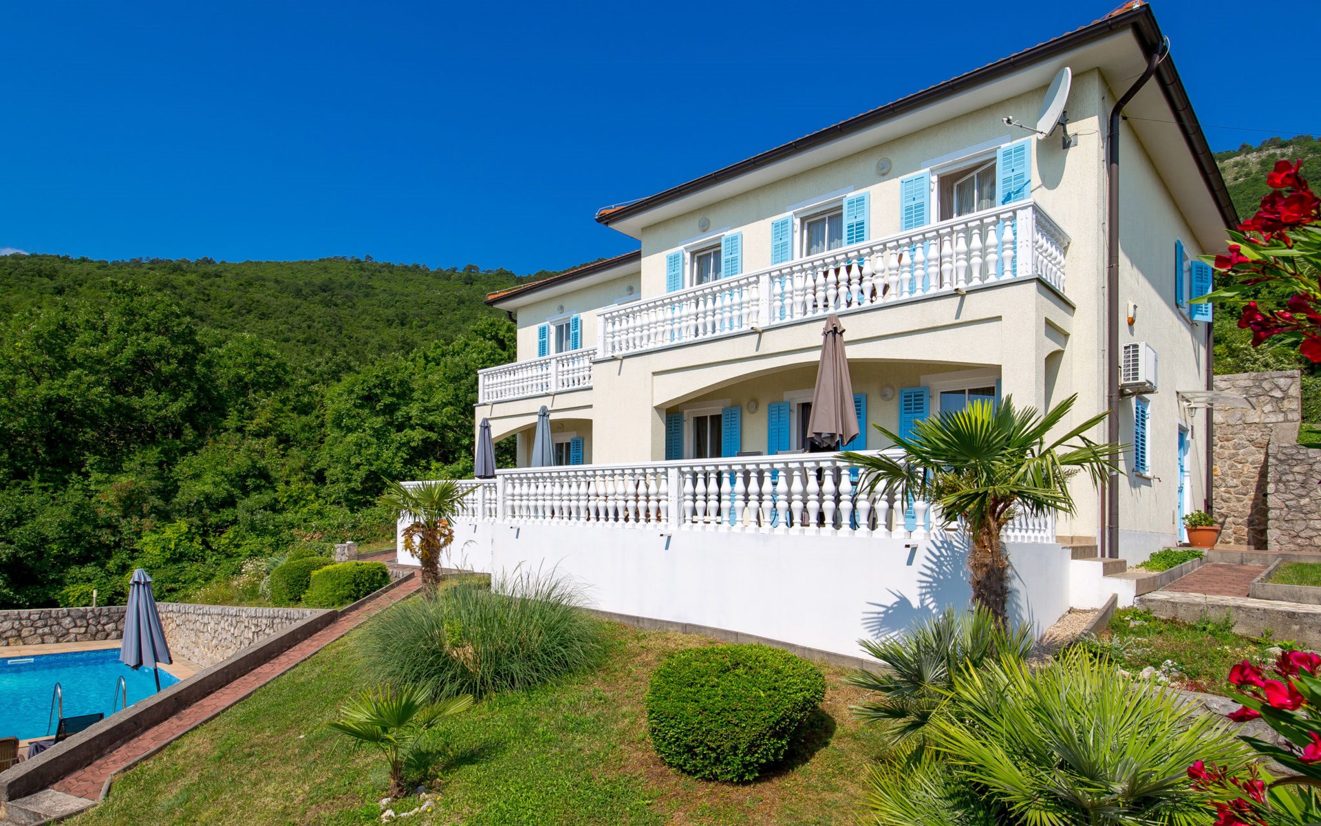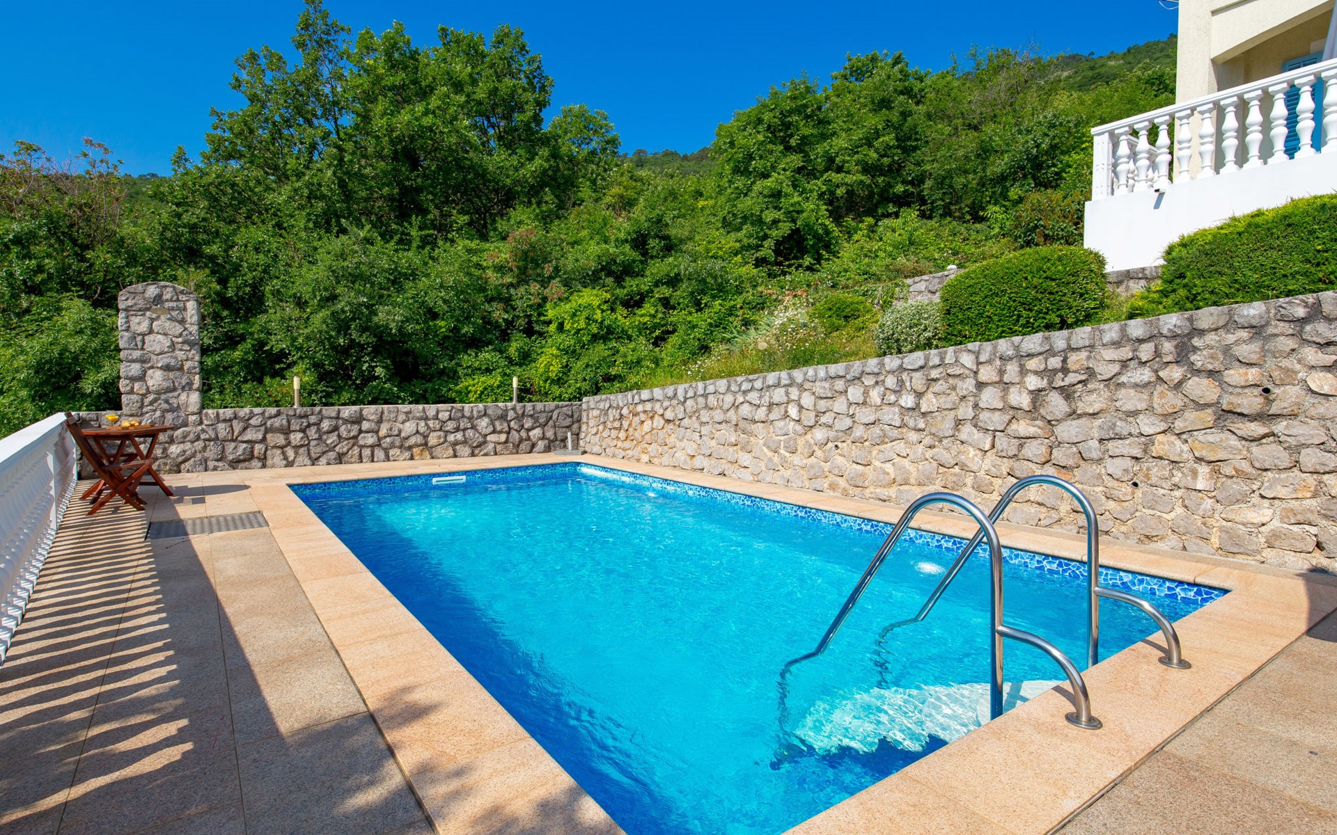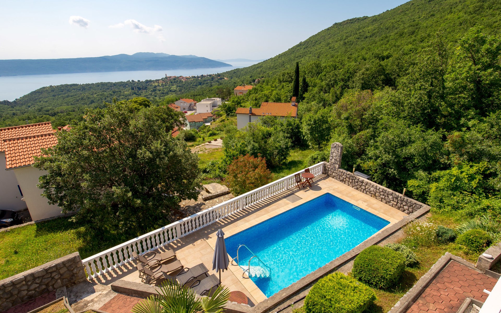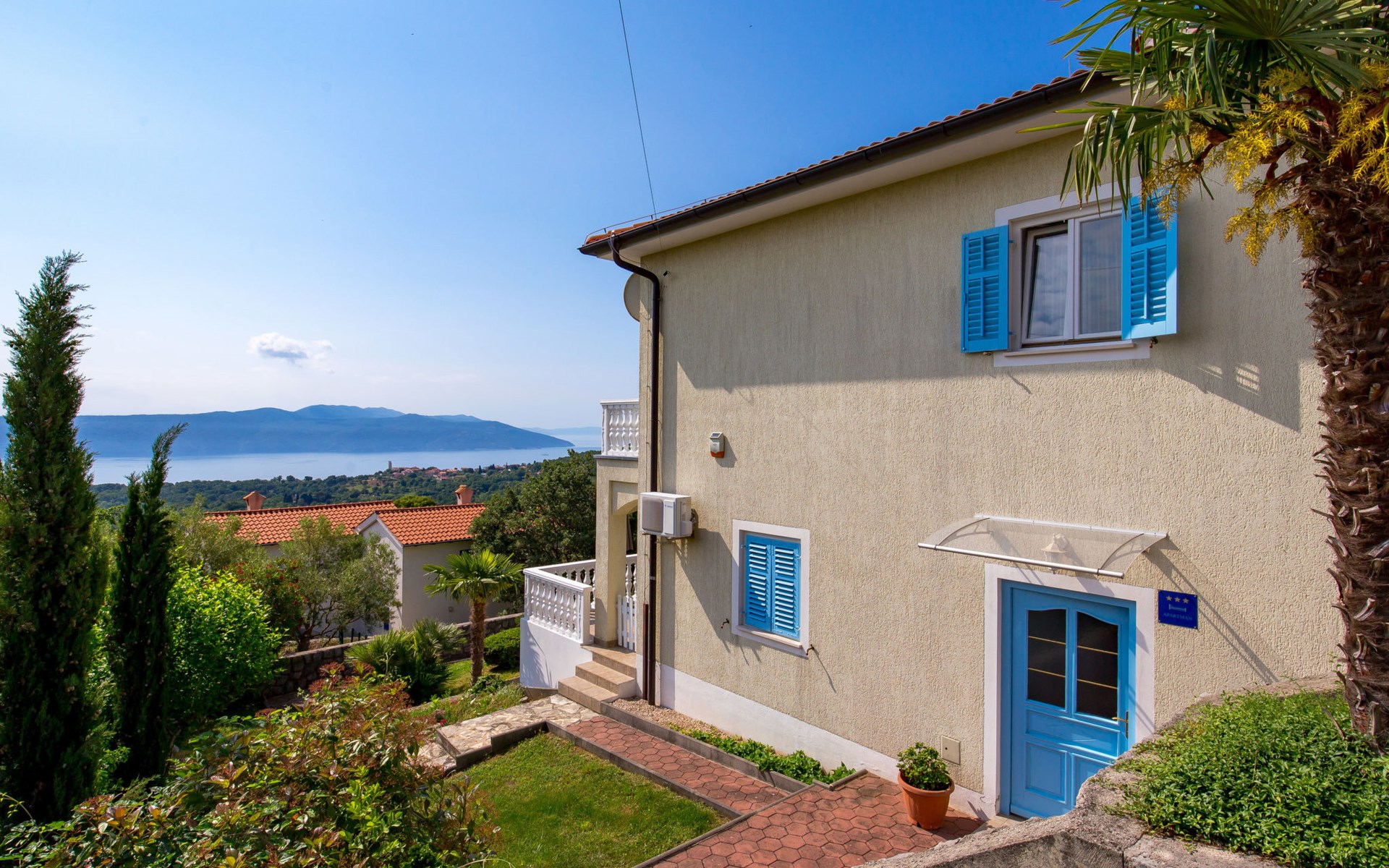 Twee onder één kap woning "Albertina", van 2 verdiepingen. In het gehucht Martina, 2 km van het centrum van Brseč, 8 km van het centrum van Moščenićka Draga, 3.5 km van zee, 3.5 km van het strand. Voor medegebruik: terrein 900 m2 met gazon en planten, openluchtzwembad hoekig (8 x 4 m, 150 cm diepte, seizoensgebonden beschikbaarheid: 01.Mei. - 31.Okt.). Buitendouche, terras, onderhoud zwembad door de eigenaar/tuinman. In het huis: internetaansluiting. 400 m lange steile toegangsweg tot aan het huis. Parkeerplaats op het terrein. Winkel 2 km, restaurant 2 km, bushalte 300 m, kiezelstrand 3.5 km. Groepen jongeren zijn niet toegestaan.