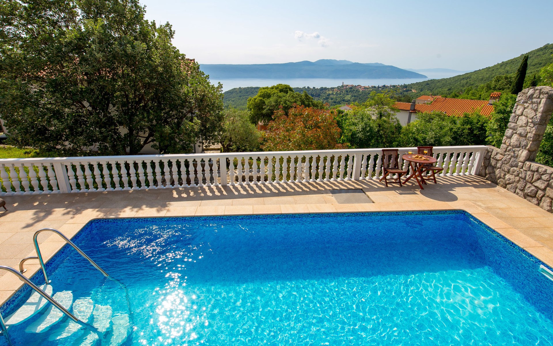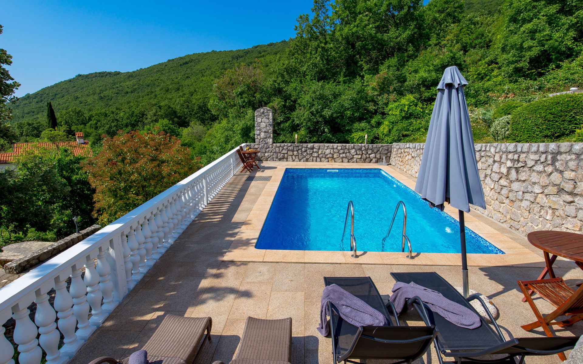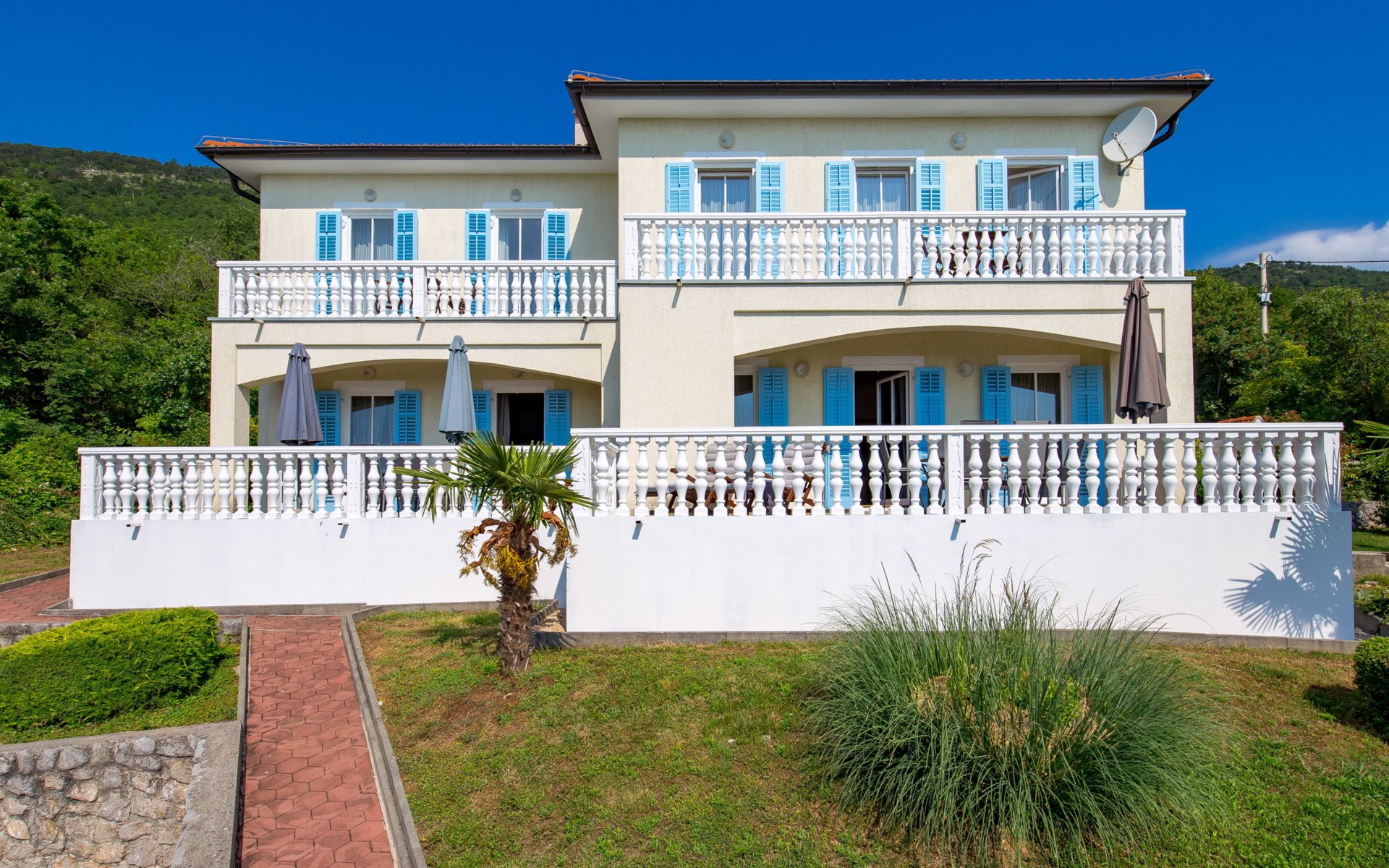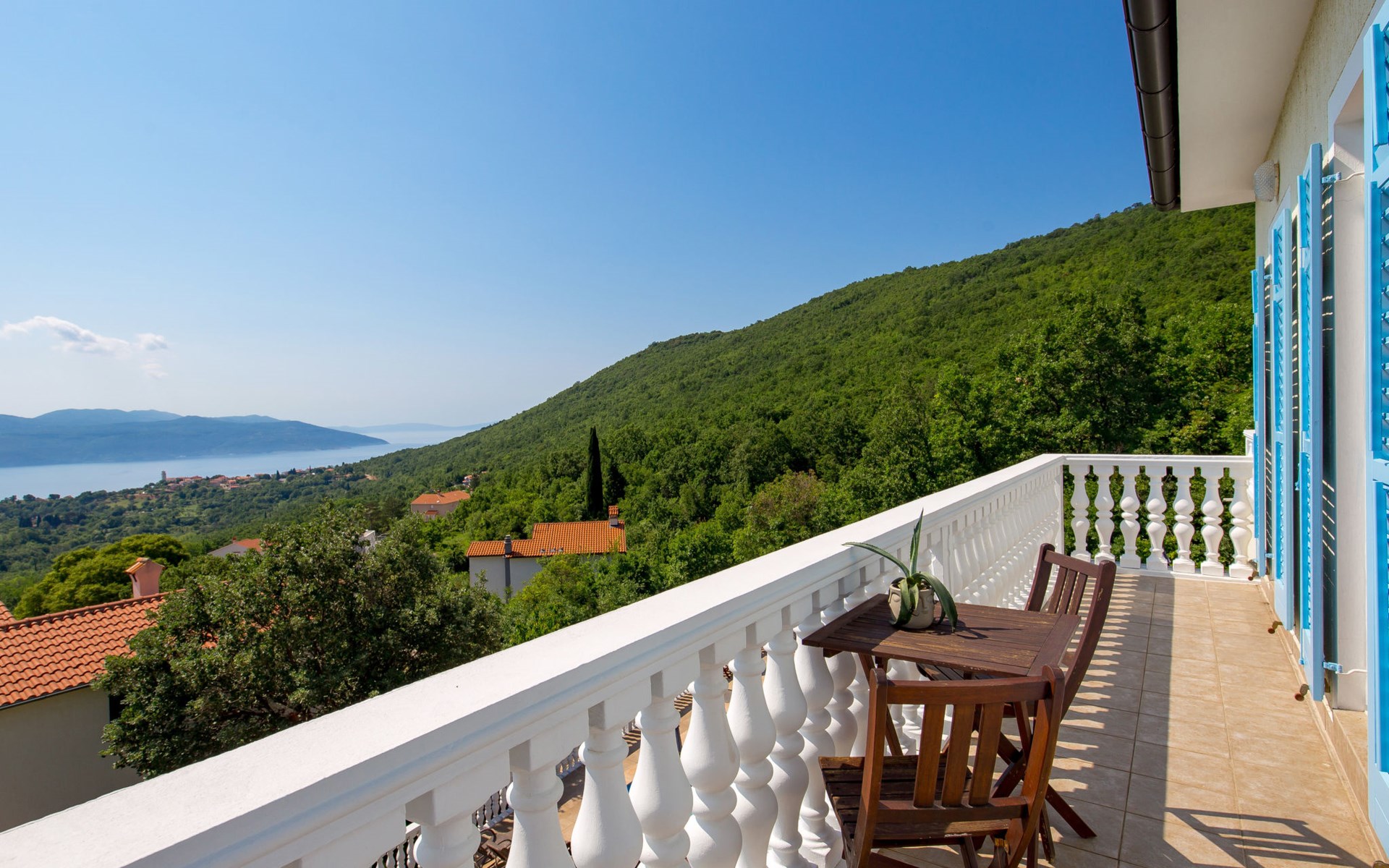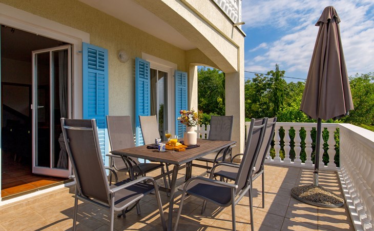 Twee onder één kap woning "Albertina", van 2 verdiepingen. In het gehucht Martina, 2 km van het centrum van Brseč, 8 km van het centrum van Moščenićka Draga, 3.5 km van zee, 3.5 km van het strand. Voor medegebruik: terrein 900 m2 met gazon en planten, openluchtzwembad hoekig (8 x 4 m, 150 cm diepte, seizoensgebonden beschikbaarheid: 01.Mei. - 31.Okt.). Buitendouche, terras, onderhoud zwembad door de eigenaar/tuinman. In het huis: internetaansluiting. 400 m lange steile toegangsweg tot aan het huis. Parkeerplaats op het terrein. Winkel 2 km, restaurant 2 km, bushalte 300 m, kiezelstrand 3.5 km. Groepen jongeren zijn niet toegestaan.