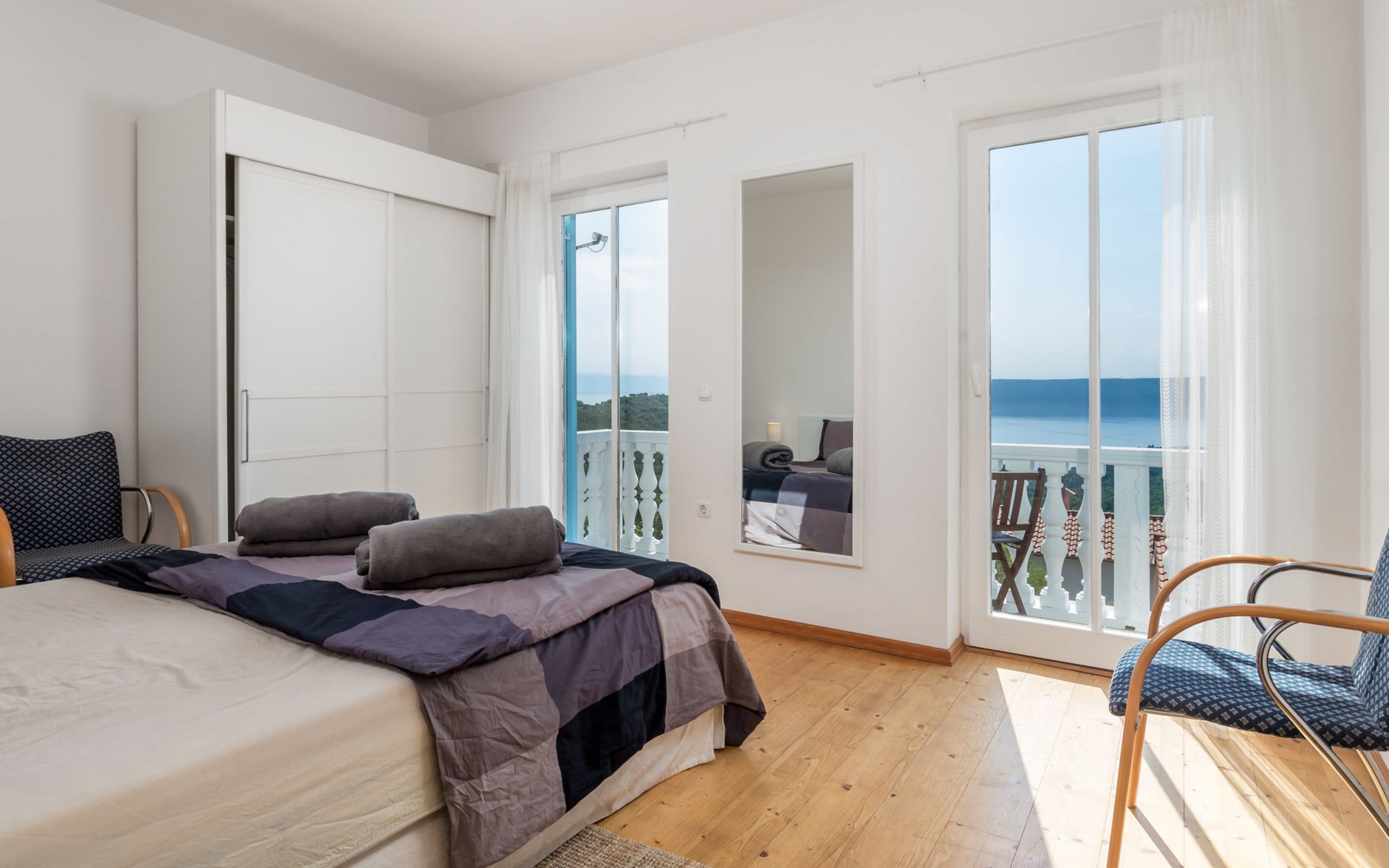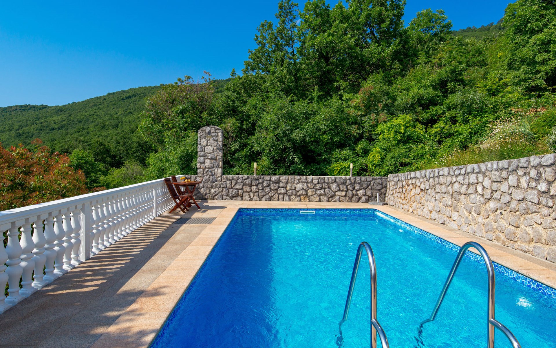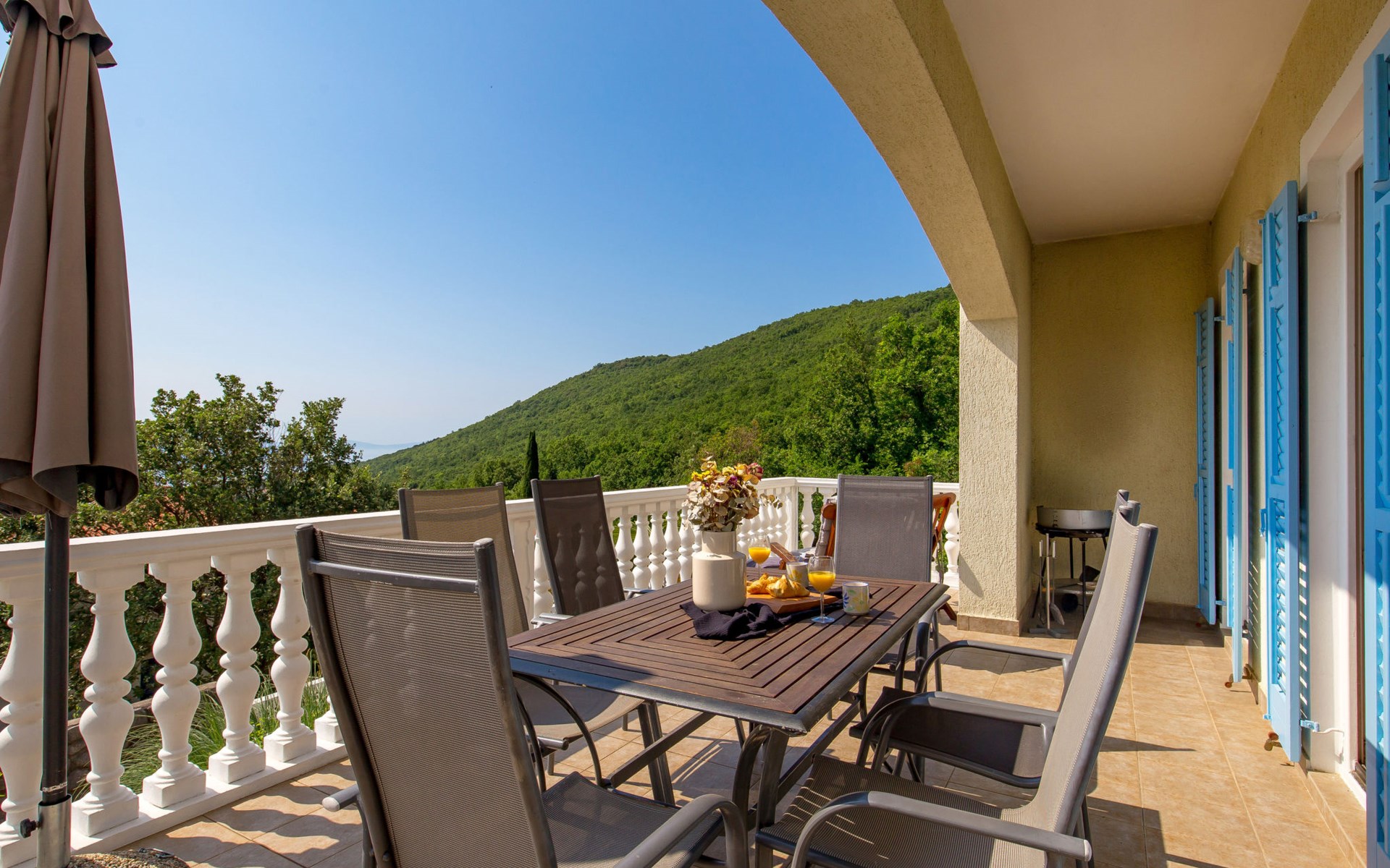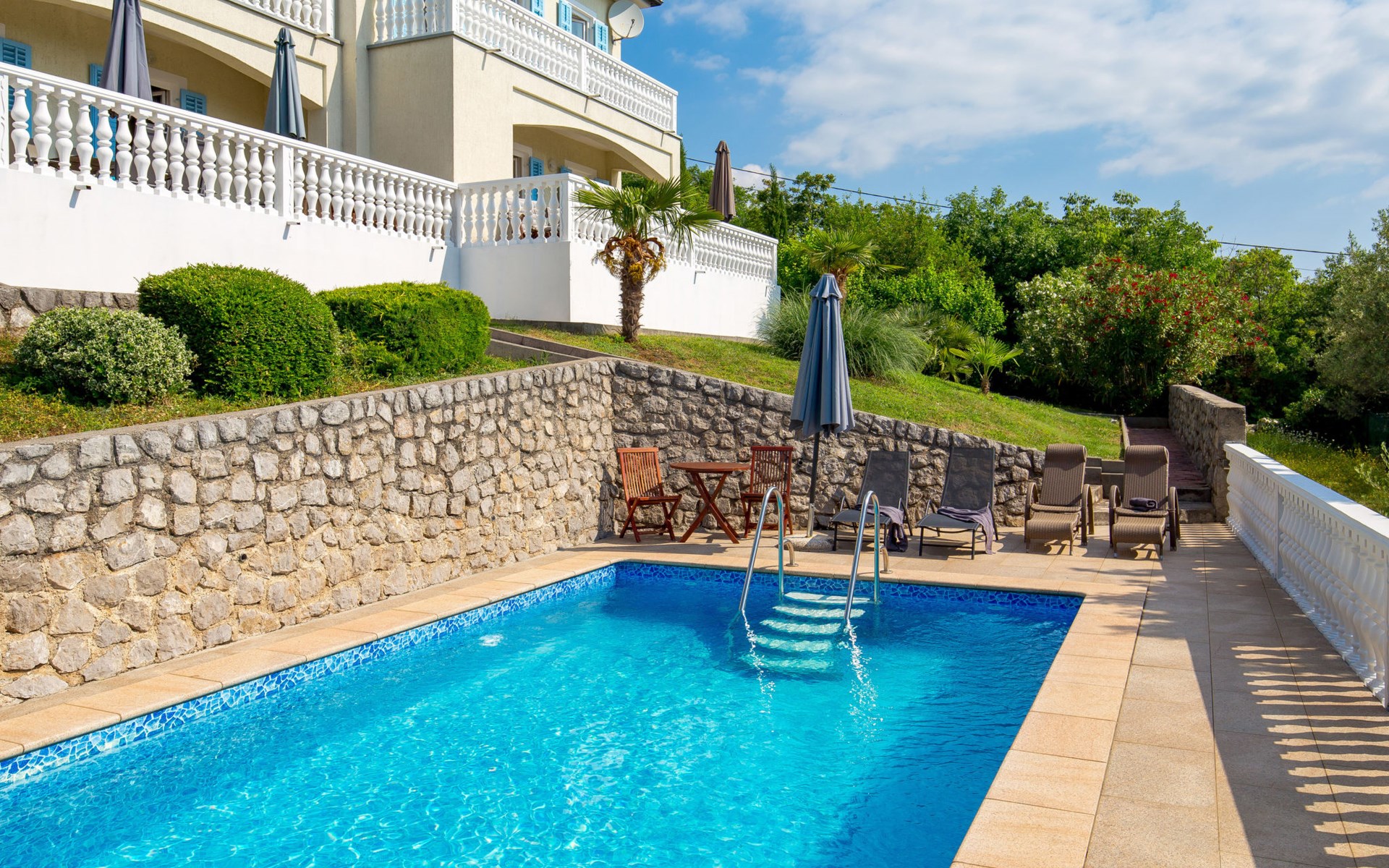 Twee onder één kap woning "Albertina", van 2 verdiepingen. In het gehucht Martina, 2 km van het centrum van Brseč, 8 km van het centrum van Moščenićka Draga, 3.5 km van zee, 3.5 km van het strand. Voor medegebruik: terrein 900 m2 met gazon en planten, openluchtzwembad hoekig (8 x 4 m, 150 cm diepte, seizoensgebonden beschikbaarheid: 01.Mei. - 31.Okt.). Buitendouche, terras, onderhoud zwembad door de eigenaar/tuinman. In het huis: internetaansluiting. 400 m lange steile toegangsweg tot aan het huis. Parkeerplaats op het terrein. Winkel 2 km, restaurant 2 km, bushalte 300 m, kiezelstrand 3.5 km. Groepen jongeren zijn niet toegestaan.