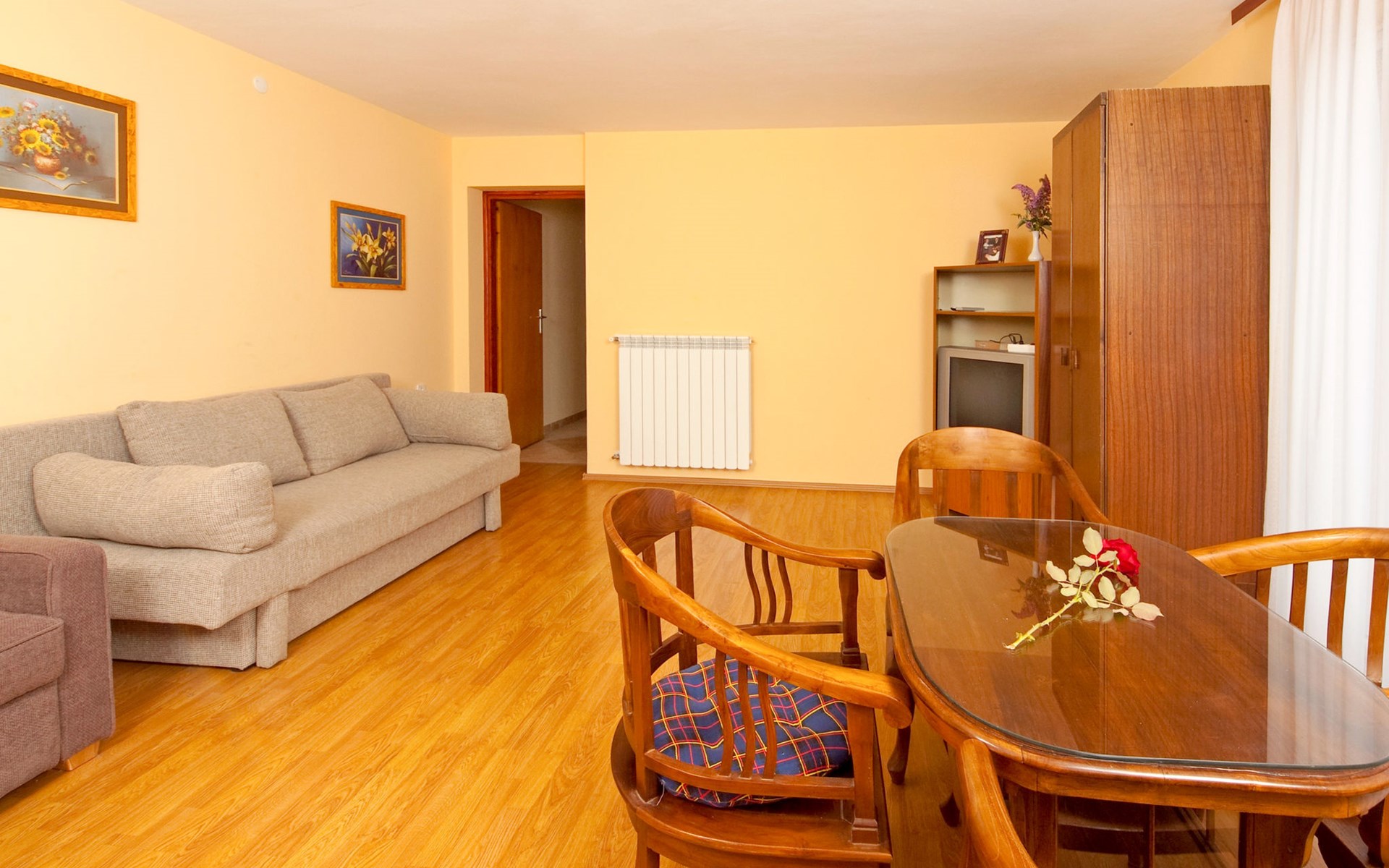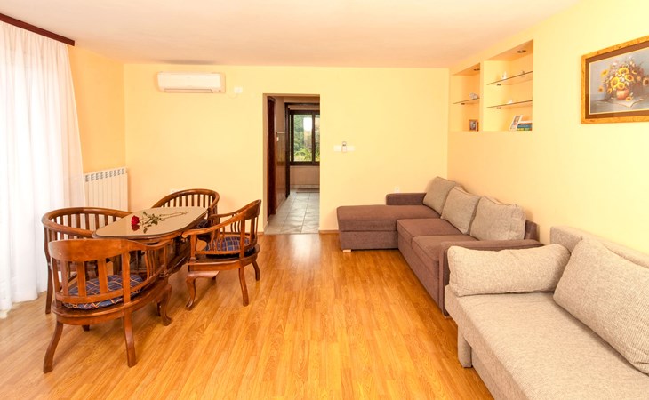Appartementencomplex "Princip". 2 km van het centrum van Labin, 2 km van het centrum van Rabac, rustige, zonnige ligging tegen een helling, 2 km van zee, 2 km van het strand. Voor medegebruik: terrein 3.000 m2 met bomen, openluchtzwembad (6 x 3 m, 170 cm diepte, seizoensgebonden beschikbaarheid: 04.Apr. - 06.Nov.) met trap. Buitendouche, terras, tuinmeubelen (glijbaan). In het huis: internetaansluiting, wasmachine. Toegangsweg tot aan het huis (100 m onverharde weg). Parkeerplaats. Supermarkt 2 km, restaurant 1 km, bushalte 2 km, kiezelstrand 2 km, rotsstrand 2 km. De eigenaar woont in hetzelfde huis.